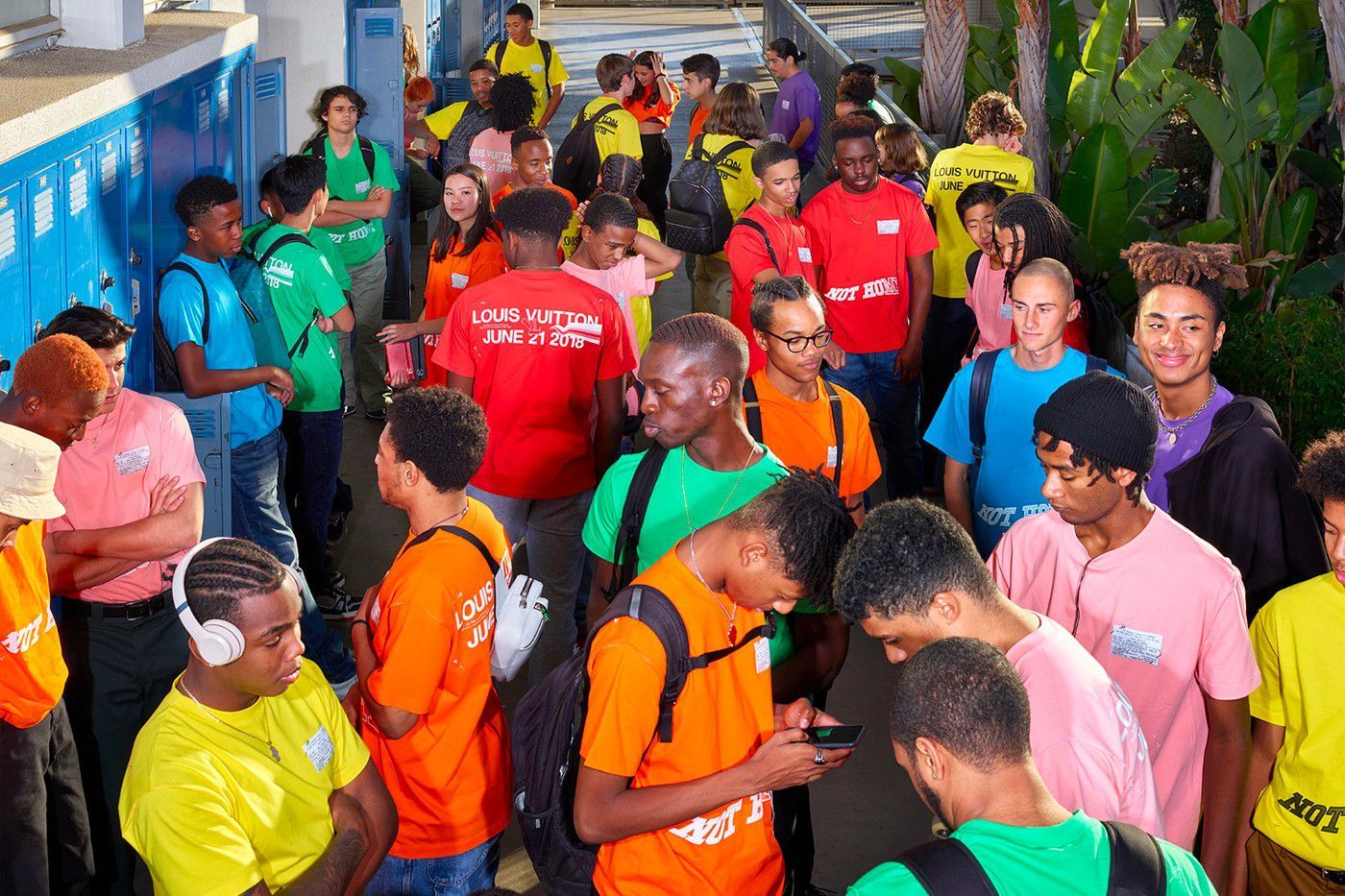 Virgil Abloh’s appointment to creative director for Louis Vuitton was a clear message that LV is shifting its demographic focus to include a younger audience. The at times very streetwear inspired pieces and sneakers of the new Louis Vuitton collection have proven this fact whilst showing the brands ability to evolve with the times. In LV’s third campaign for its Virgil Abloh designed Spring/Summer 2019 collection, this focus is cemented even further. Aptly named “THE PIVOTAL YEARS” the campaign is a part of the on-going study of youth culture that sees high school students as the protagonist in various everyday school situation whilst decked out in monochromatic Louis Vuitton T’s. The T's reference the merch that participants got at the presentation of Virgil's inaugural collection this summer in Paris, June 21st, making them look almost like a uniform, adorned with LV accessories and the new SS19 kicks.