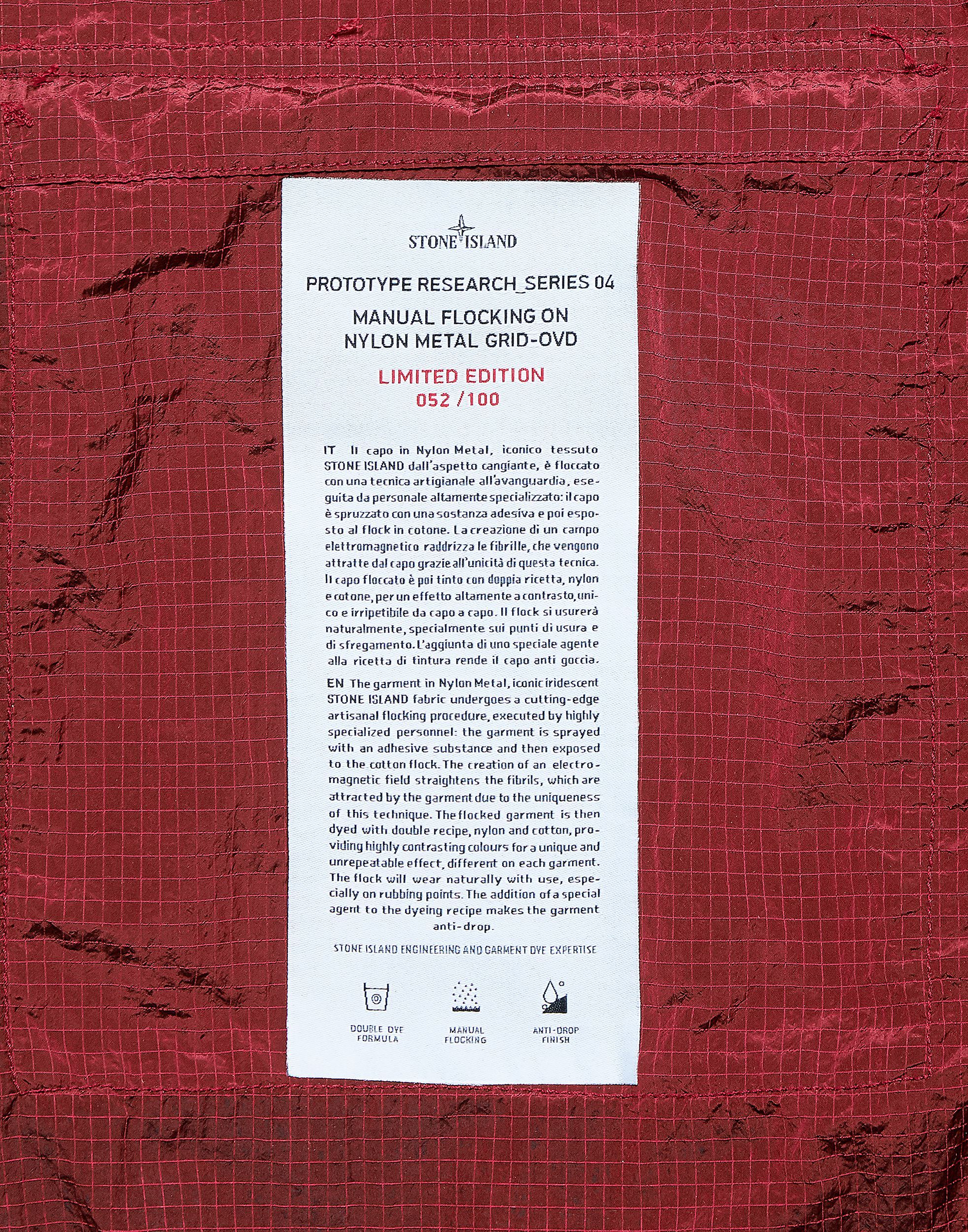After the presentation at Milan Design Week, where the latest manifestation of Stone Island's Prototype Research series was unveiled. Today sees the details of the strictly limited edition release of the presented Manual Flocking on Nylon Metal Grid jacket.