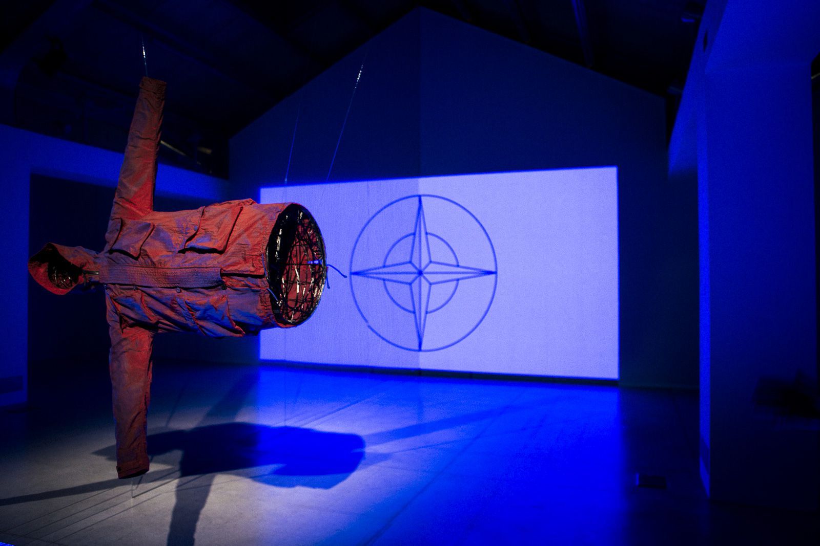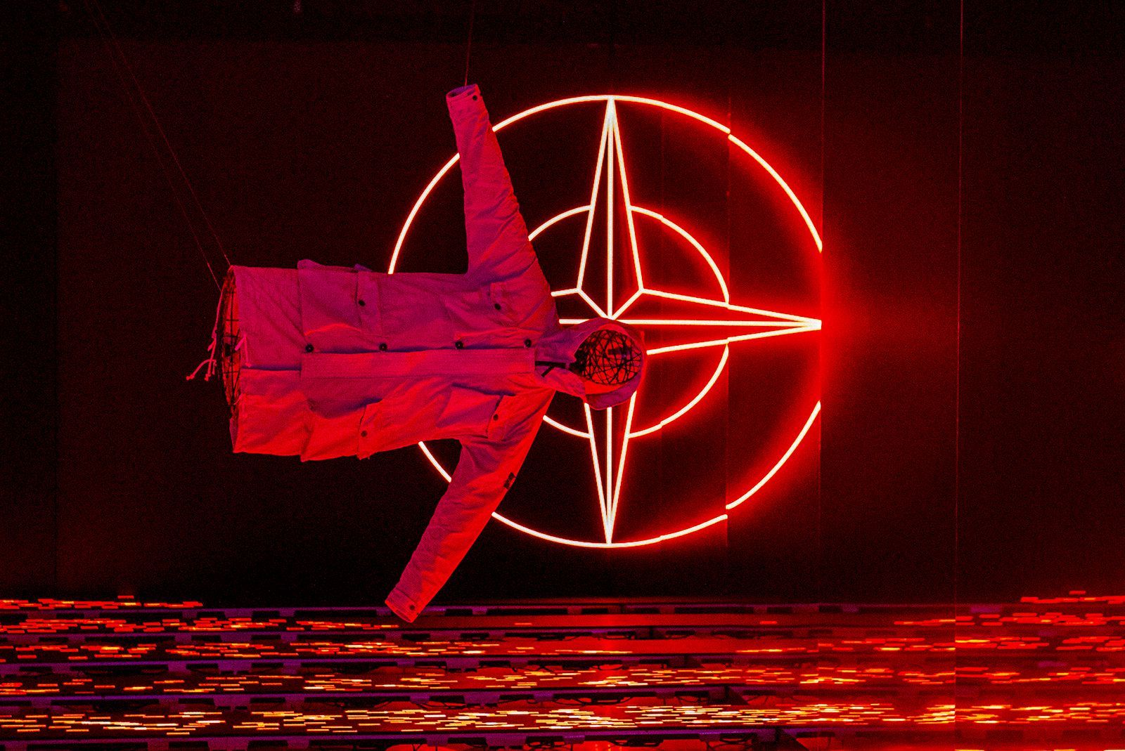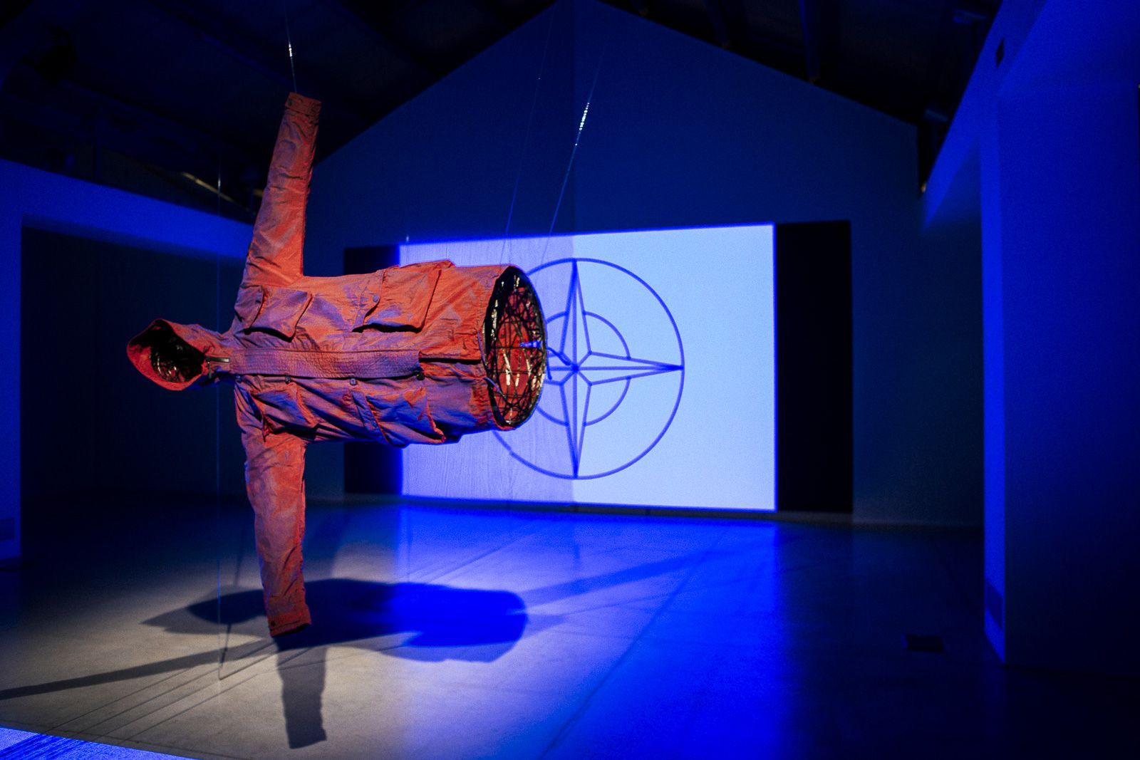The presentation at via Savona took the form of an art installation, designed by Ken-Tonio Yamamoto and Nina Heydorn, where the pre-dyed white piece hung on one side of the room with the finished product hanging on the other. Running underneath were rows of LED visuals that would fade between the colors of the prototype jacket that was suspended above. Occasionally the lights and sounds would crescendo up into a frenzy of stroboscopic colors as if to visualize the flocking that occurs within the magnetic field, in a very well executed manifestation of both sight and sound.