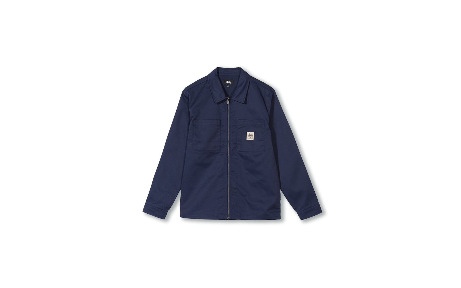 Stüssy has made this full zip work shirt that is really beautiful. Excellent materials, two front pockets and the classic logo on the left pocket. Available in blue and gray.