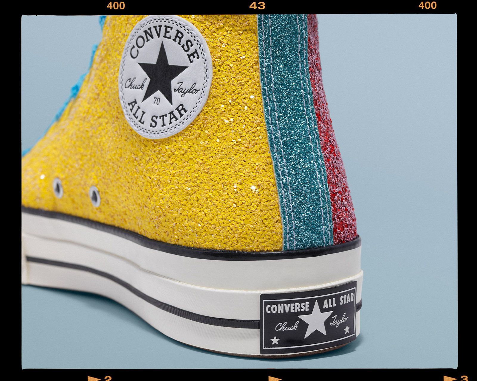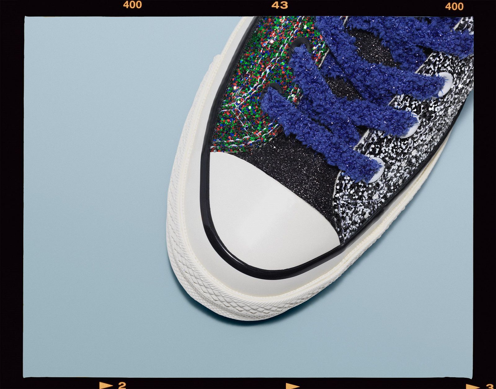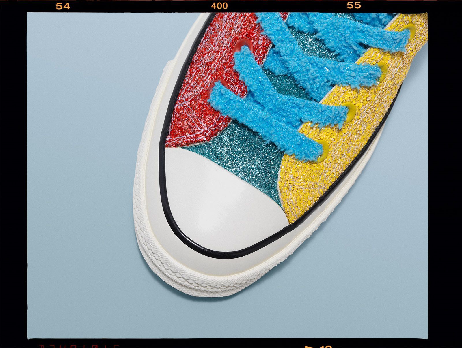 For the summer season, the two brands have chosen to go back to their origins, reinterpreting Glitter Gutter, the capsule collection that was the beginning of their partnership in 2017. The new version includes a Chuck Taylor '70 available in four three-panel colorways, a mix of blue, green, yellow, red, pink and orange shiny combined with two sets of laces, standard and furry chenille. The 2017 number printed on the tab completes the look.