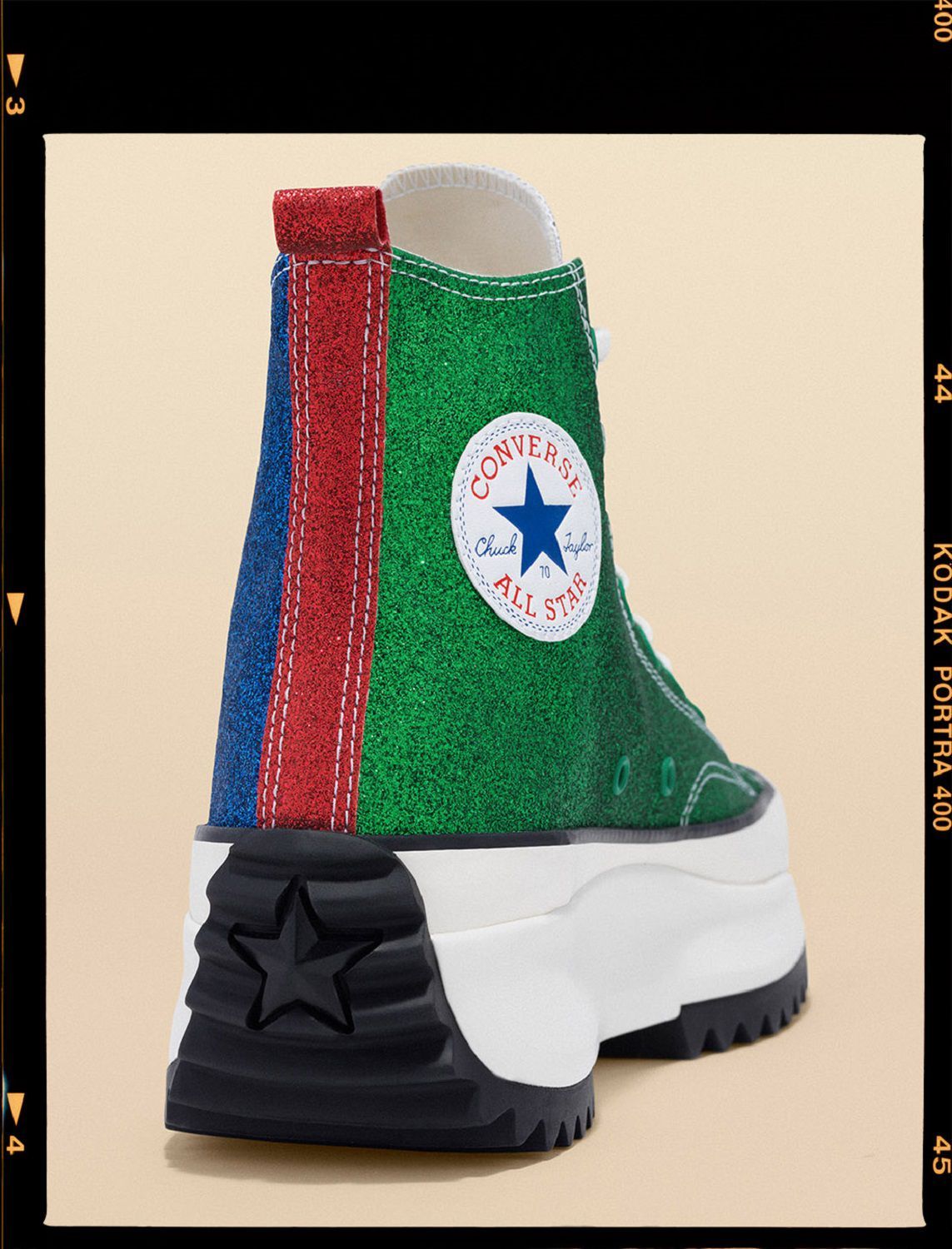 Converse x JW Anderson Run Star Hike + Chuck 70s Glitter will be available worldwide on converse.com and in selected retailers on May 9.