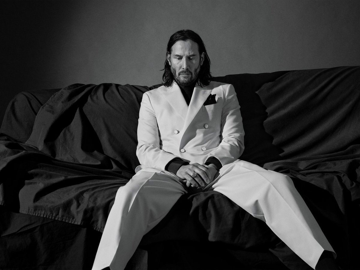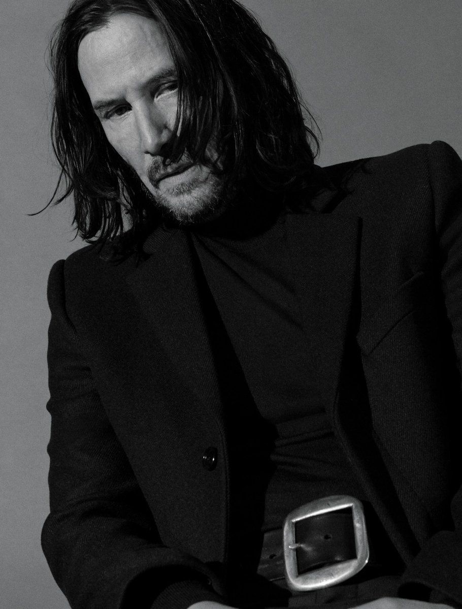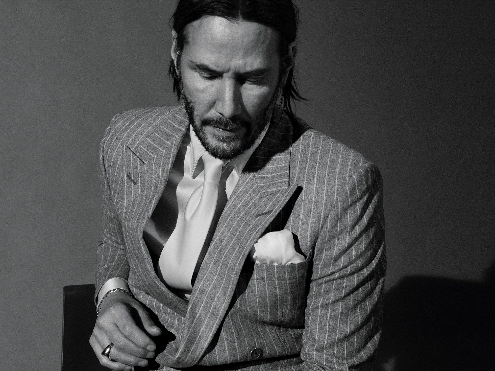 A few weeks ago, I was scrolling on Instagram when I stumbled upon a series of images posted by American magazine GQ which starred a revenant Keanu Reeves as I've never seen him before. Black tailored coat, striped suit complete with waistcoat, white shirt, dark sunglasses and long hair. And again, with a black turtleneck, a white Louis Vuitton suit, The Row black pants and leather loafers by Tom Ford. A new Keanu.