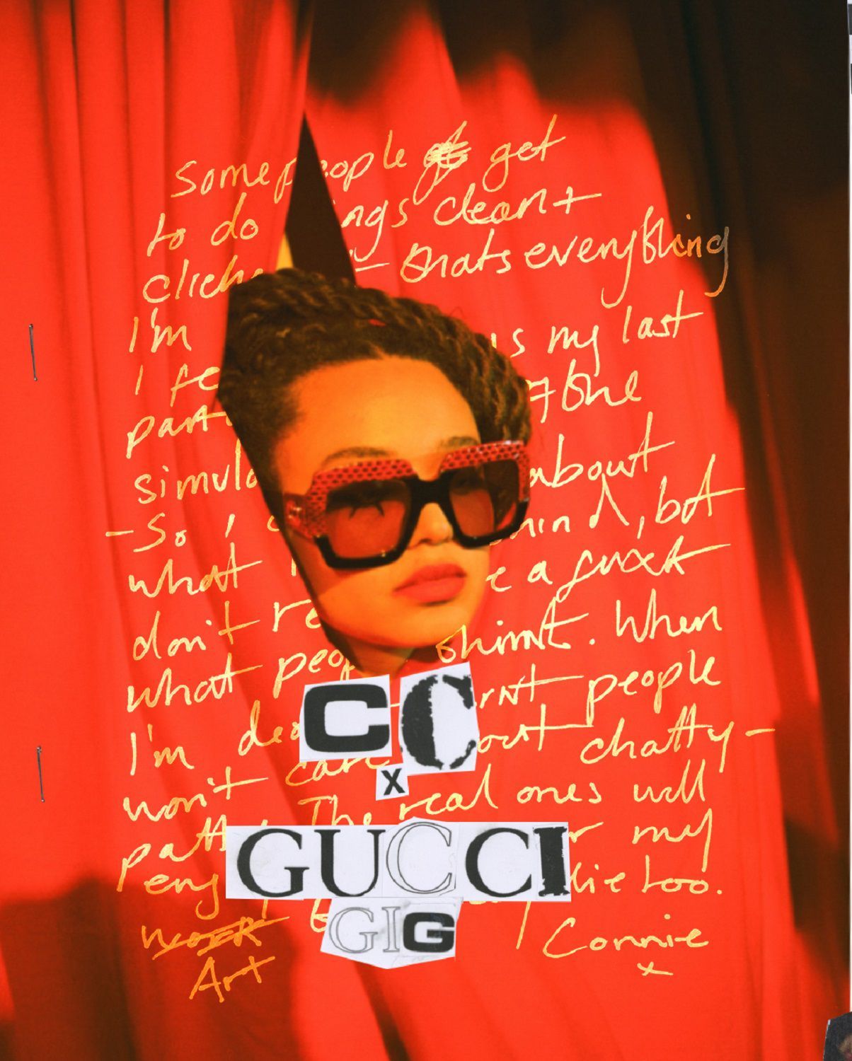 Contributions range from photography to illustration and video, from reportage to fan art. In each, the protagonists wear the brand's new eyewear that features a rock'n'roll spirit, oversized square shapes decorated with beautiful pearly acetate, rich crystal cobblestones and multicoloured leather details. The same strong attitude is shared by the streetwear models in the aviator style. All works will be displayed at a Gucci App gallery and a series of episodes with the creative talents participating in the project will be presented on Gucci Podcast.