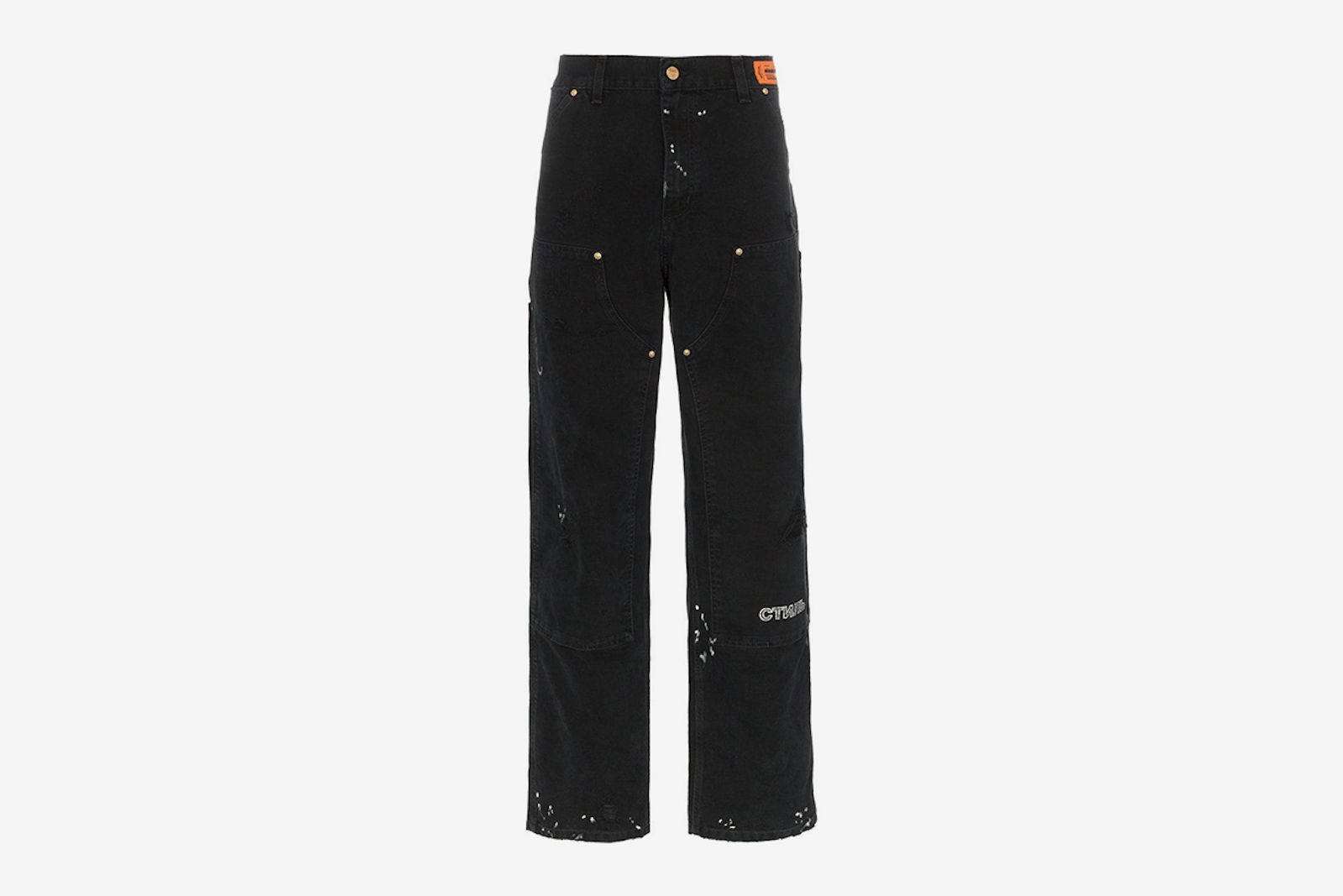 As already mentioned, streetwear has been influenced by this style, Heron Preston, for example, made this pant in collaboration with Carhartt. High waist, big pockets, metal buttons and print with the paint effect.