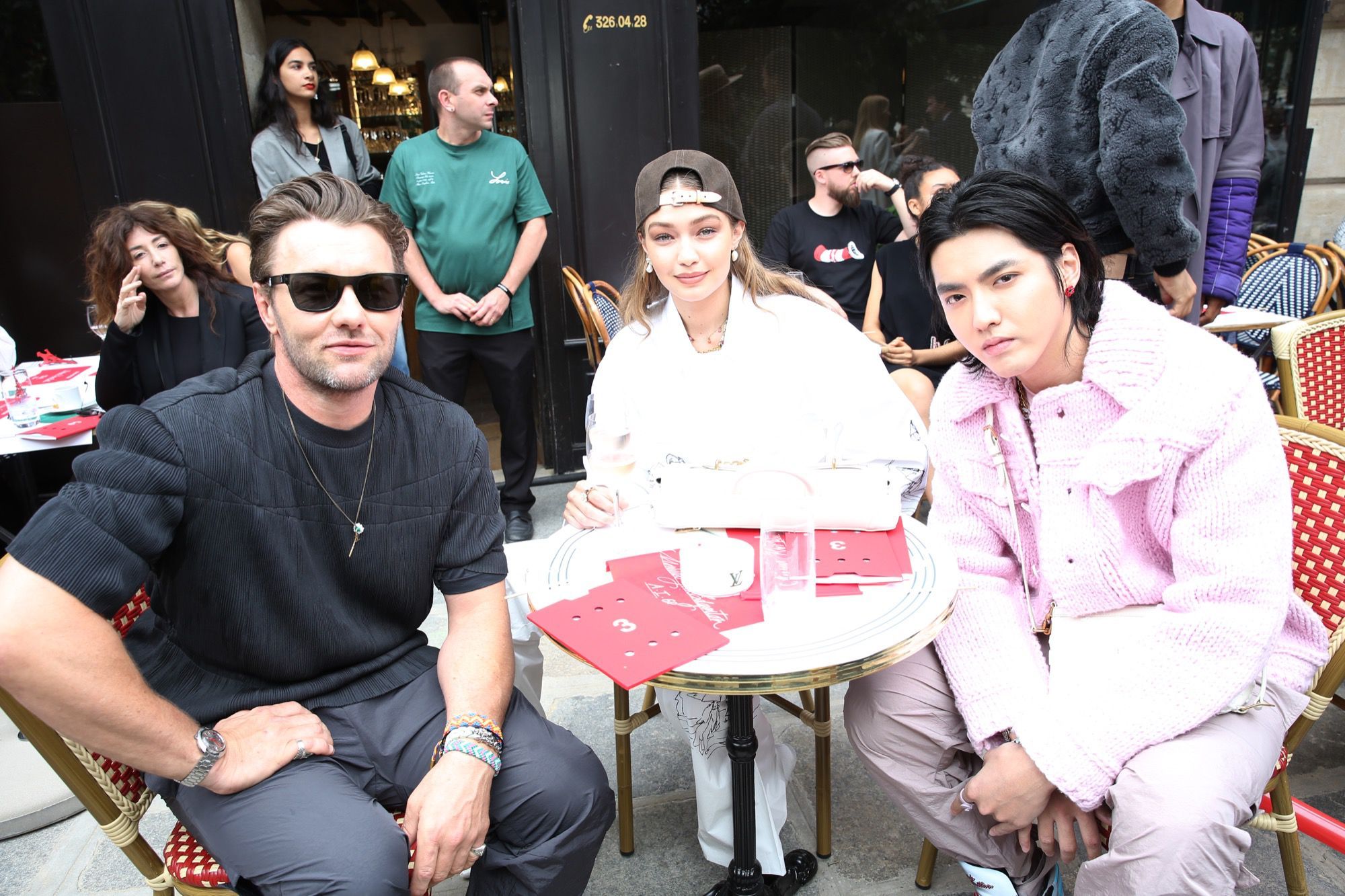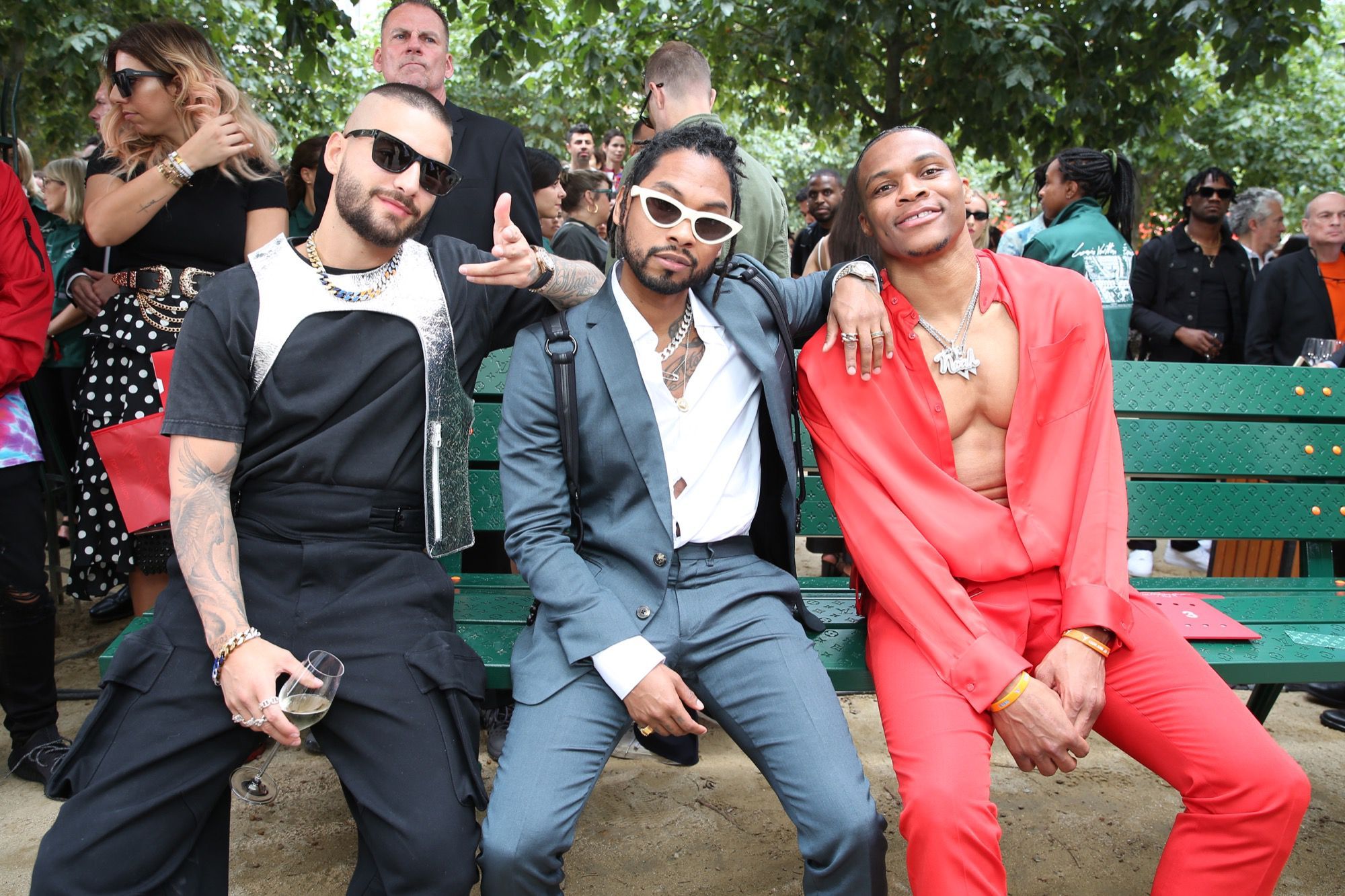 In the front row applauding Vuitton's new collection there were Frank Ocean, Gigi Hadid, Skepta, Miguel, Swae Lee, Russell Westbrook, J Balvin, Karrueche Tran, Cam Newton, Lewis Hamilton, Joel Edgerton, Kris Wu, and Ben Harper, Maluma, Victor Cruz, Dan Carter, Gennadiy Golovkin, Gong Yoo, Shuhei Nomura, Nick Chou.