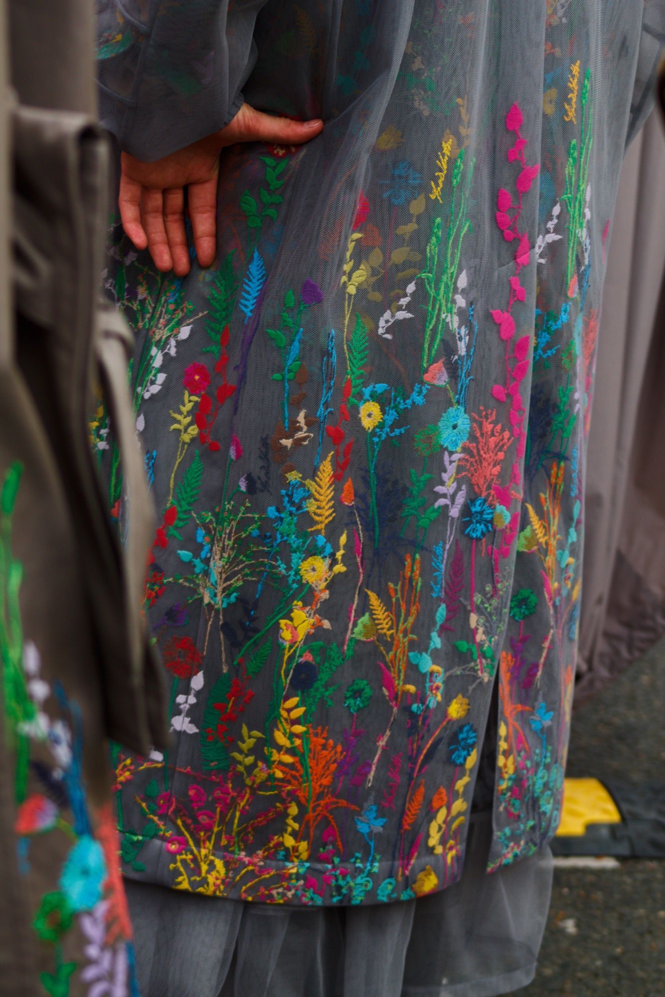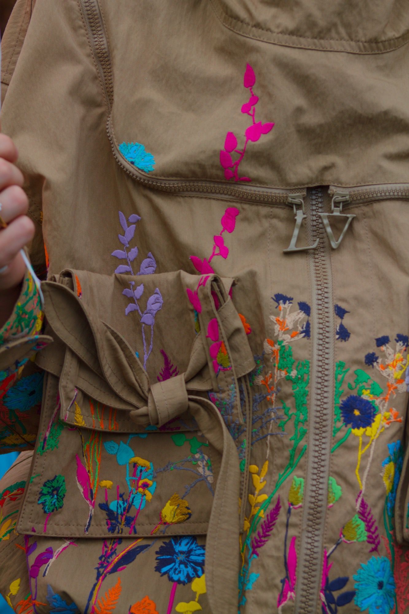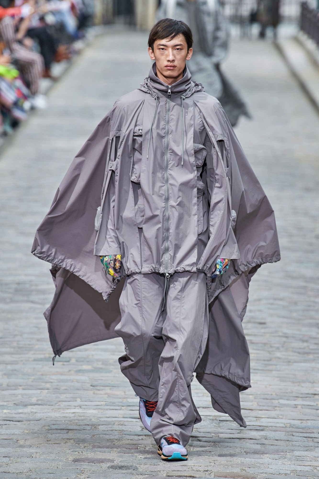 The result is a combination of street style and high tailoring cuts that mix quilted hoodies, shorts, loose suits, denim pants and vests, trench coats, long shirts like djellaba, huge floating pants, oversized jackets. All declined in beautiful pastel shades next to accents of more intense colour. Everywhere flowers appear in a bucolic, cool and almost romantic mood.