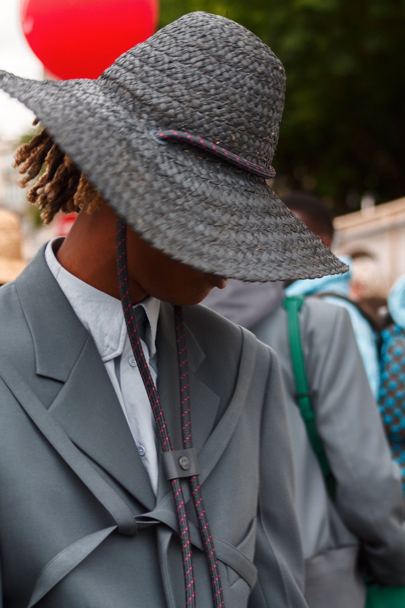 Paris. The historic Dauphine Square on Pont Neuf is turned into an idyllic version of Louis Vuitton's French capital made of lovely cafés and restaurants, benches decorated with LV monograms, ice cream and crepes carts, kiosks, inflatable castles, kites and balloons. All in shades of emerald green and red. It is a village festival that celebrates the work of Virgil Abloh.