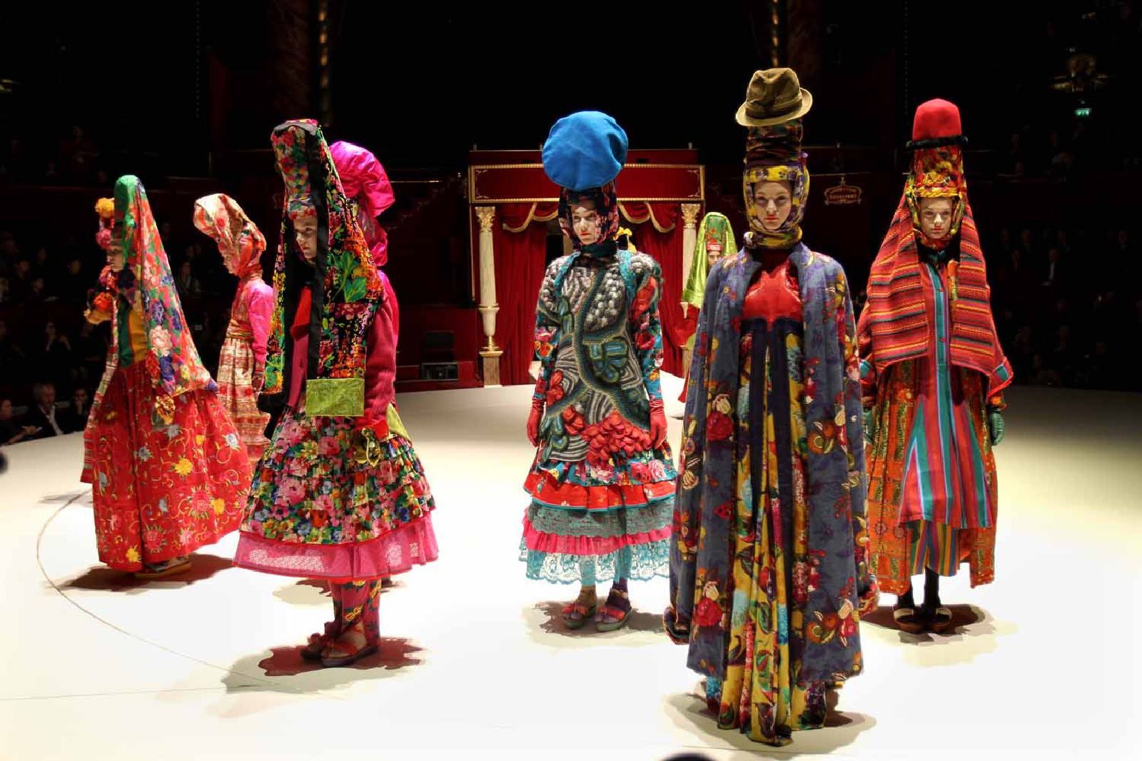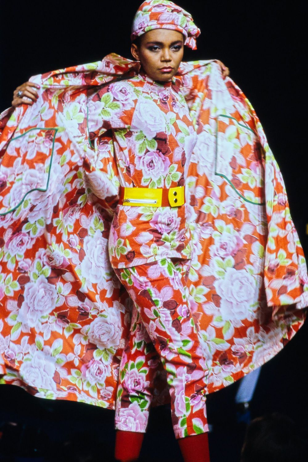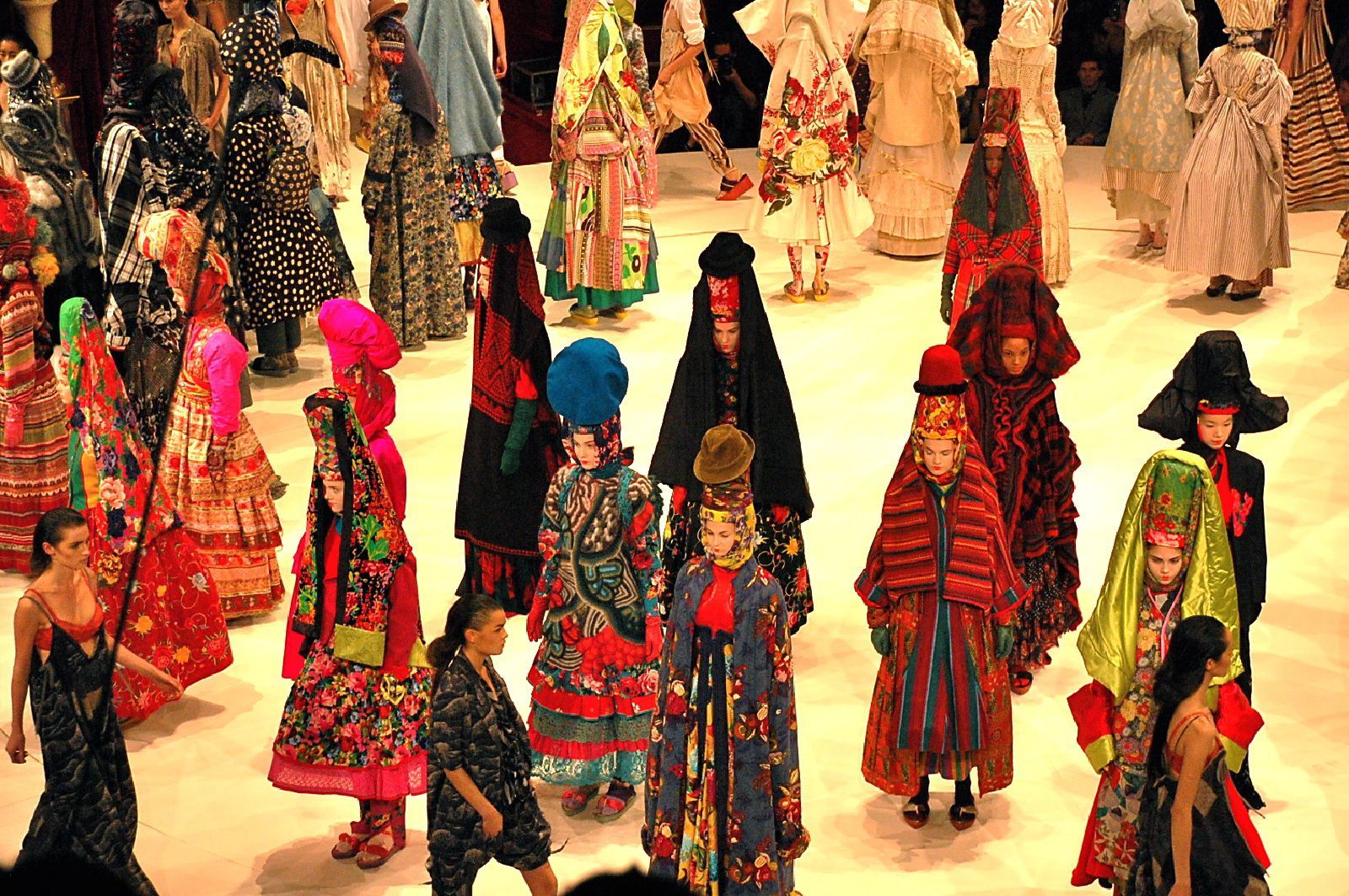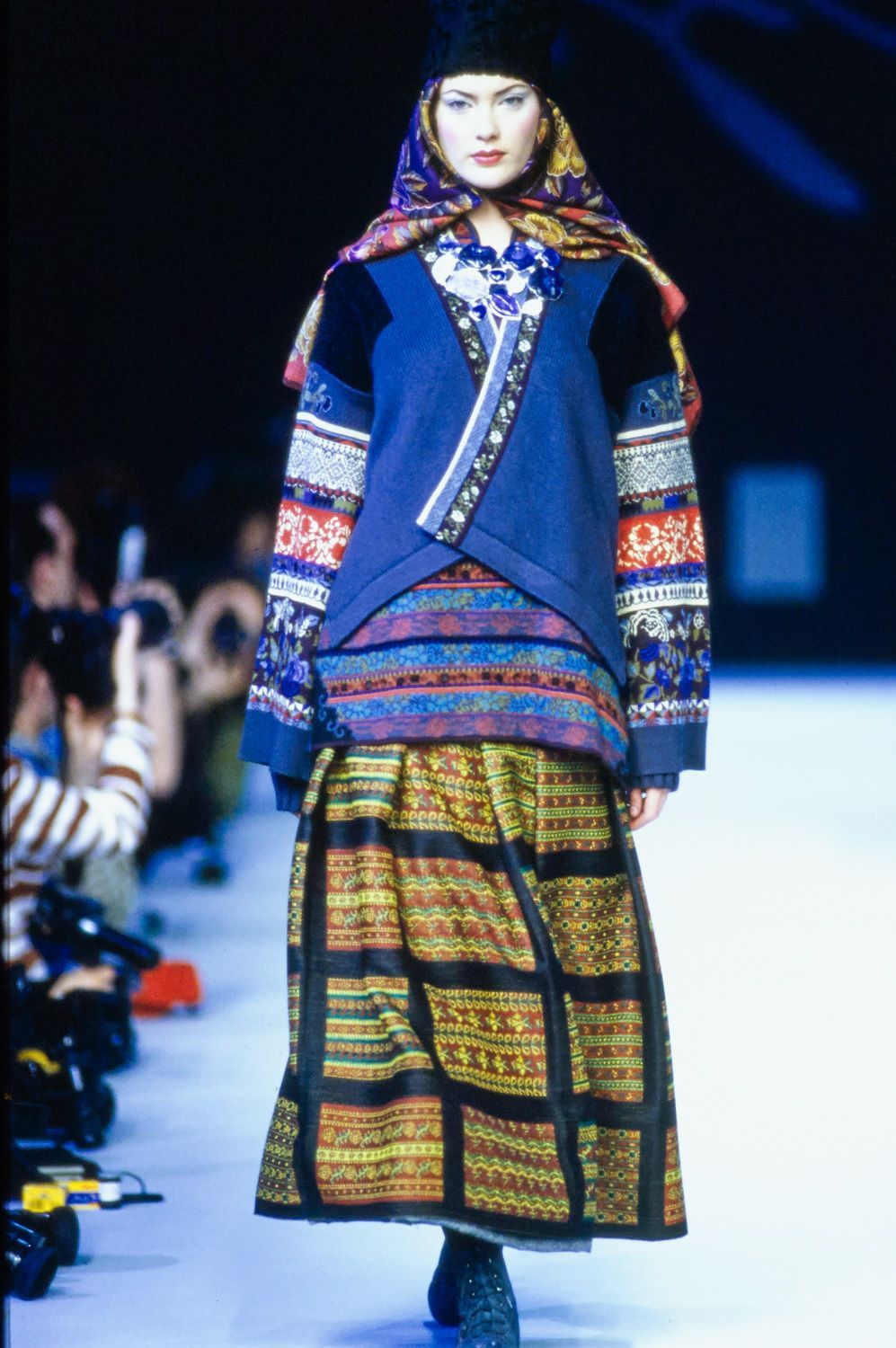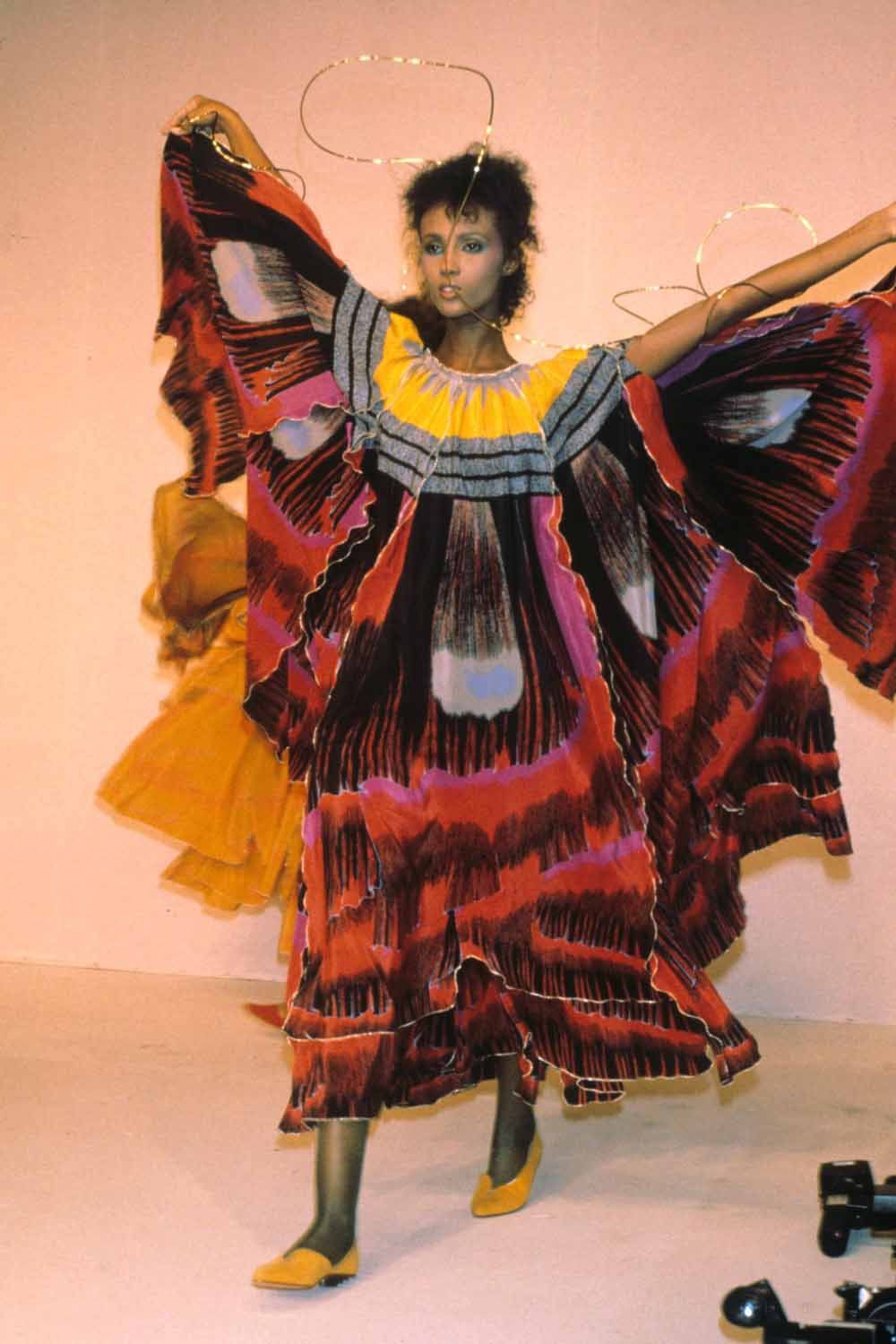 It's one of the famous quotes from the designer, famous for his irreverent play of twisting codes, in a blaze of ethnic and colorful looks, mixes & matches, and unusual elements such as ribbons hidden behind the clothes to tighten around the body. Its bold and particular graphics, colors and patchwork of fabrics have been the most important factor of his success. Also important is the introduction of cotton, a fabric rarely used in high fashion at the time, which allowed Takada to play with larger proportions and silhouettes such as poetic blouses with puffed sleeves, pleated harem trousers, fluid kimonos.