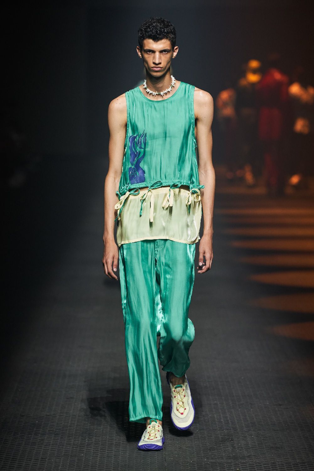 The show is an evocative under the sea fairy tale, populated by wonderful creatures and creations that tell the story of the designer couple's decade as creative directors of Kenzo, as underlined by the dancers on the catwalk (choreographed by Léo Lerus) who wore some of the most iconic looks they created in 2012, combined with traditional Okobo sandals. A surprising guest closes the farewell collection: Solange Knowles who, accompanied by a brass band, sang I'm a Witness, the closing track of her latest album When I get home.