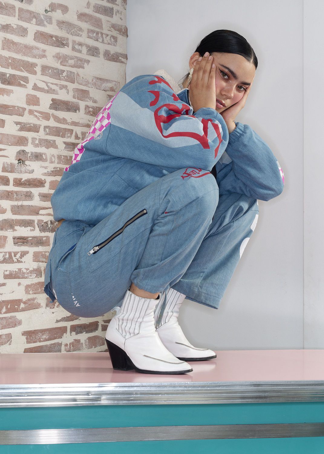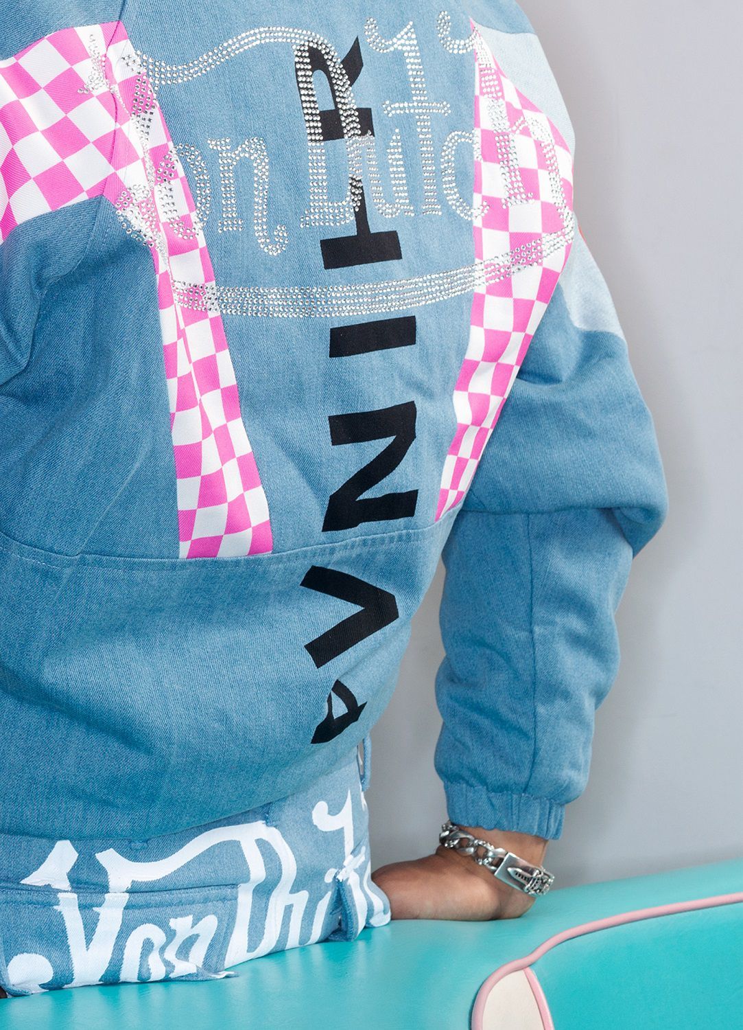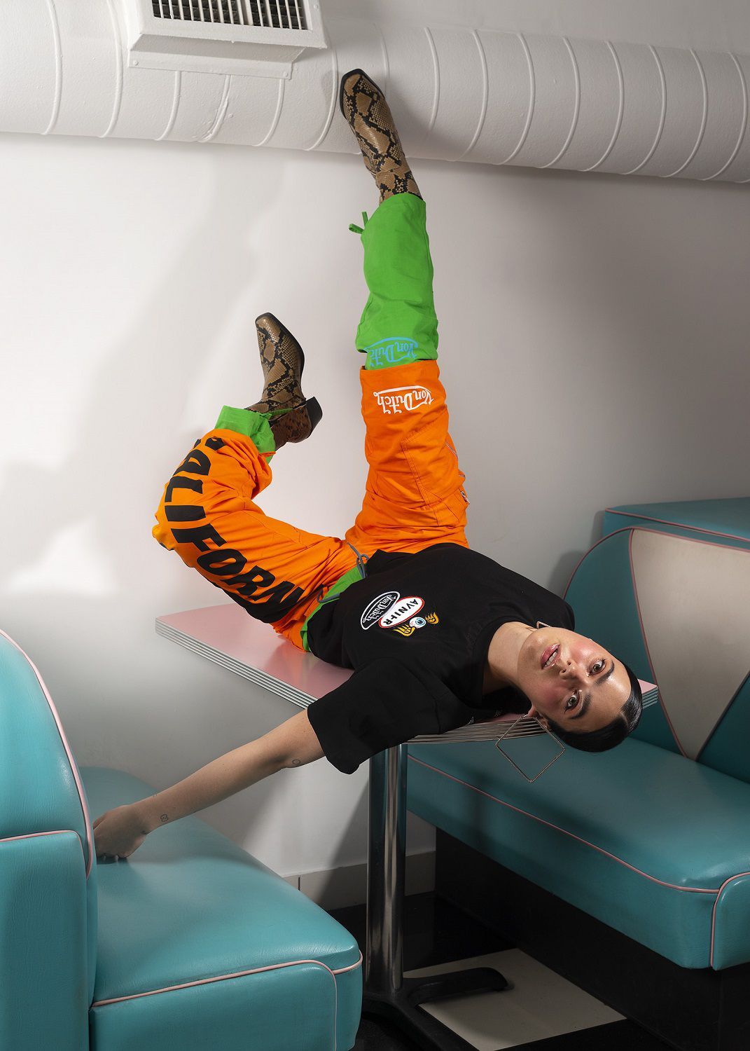 The result of the collaboration is a "Style Supermarket", where unrelated ideas spontaneously merge to create a series of garments that perfectly adapt to the fragmentation of contemporary society. Brightly coloured cargo pants (pink, orange, green and turquoise), sequin denim, T-shirts with the Von Dutch logo and the must-have trucker-style hats characteristic of the Dutch brand are the genderless elements that, mixed together, give life to a series of captivating looks, designed to celebrate the pop culture of the early 2000s, when "tabloids dominated the world".