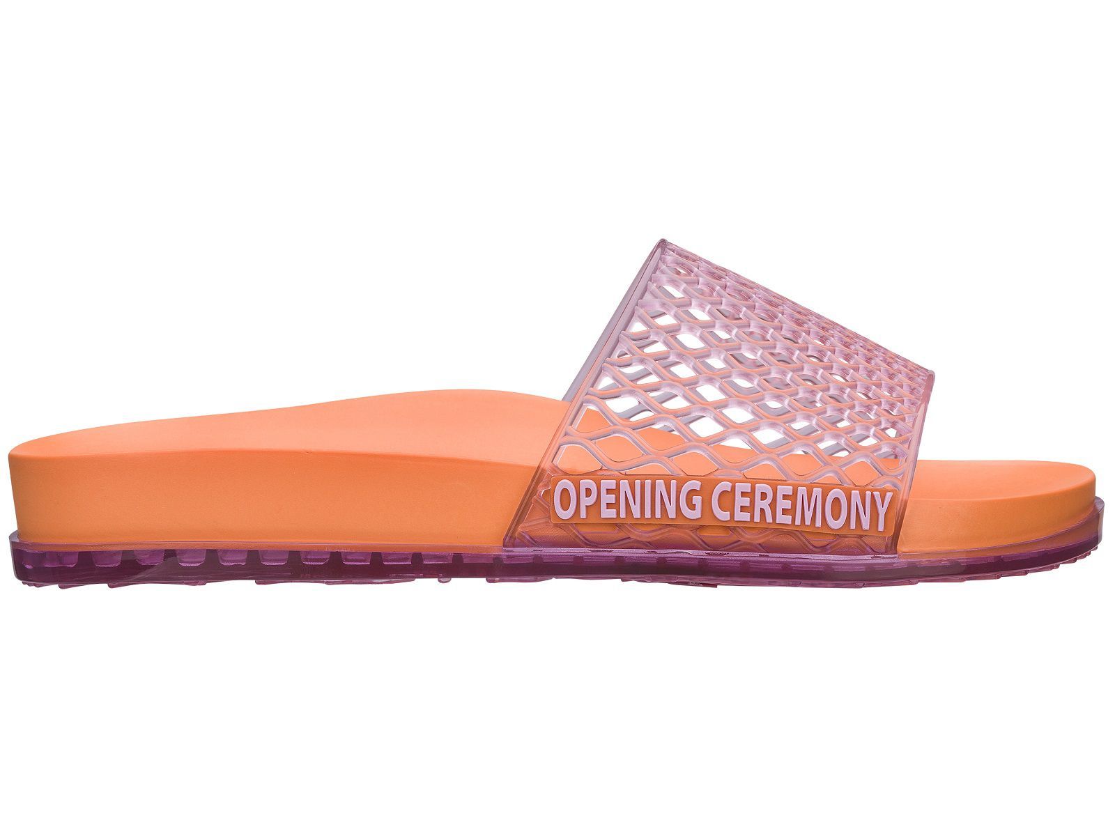 With this spirit, the Brazilian company has chosen to work with Opening Ceremony for a special proposal presented exclusively at 10 Corso Como, the Milanese concept store created by Carla Sozzani. The label, founded by Carol Lim and Humberto Leon in 2002, draws inspiration from the Melissa archive to rework some of the most iconic silhouettes and revive them with a new unexpected and material touch. Thus the scented PVC Melflex (the vegan raw material that made the shoe brand famous) and the fishing net are combined with an ultra-feminine silhouette and a palette of fresh and vibrant summer colors, creating three new models of footwear: Flipp, a revisitation of slides, Ladii, a low and square heeled sabot and Hatch, a classic and feminine flat sandal.