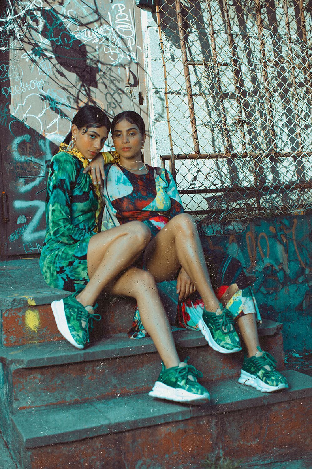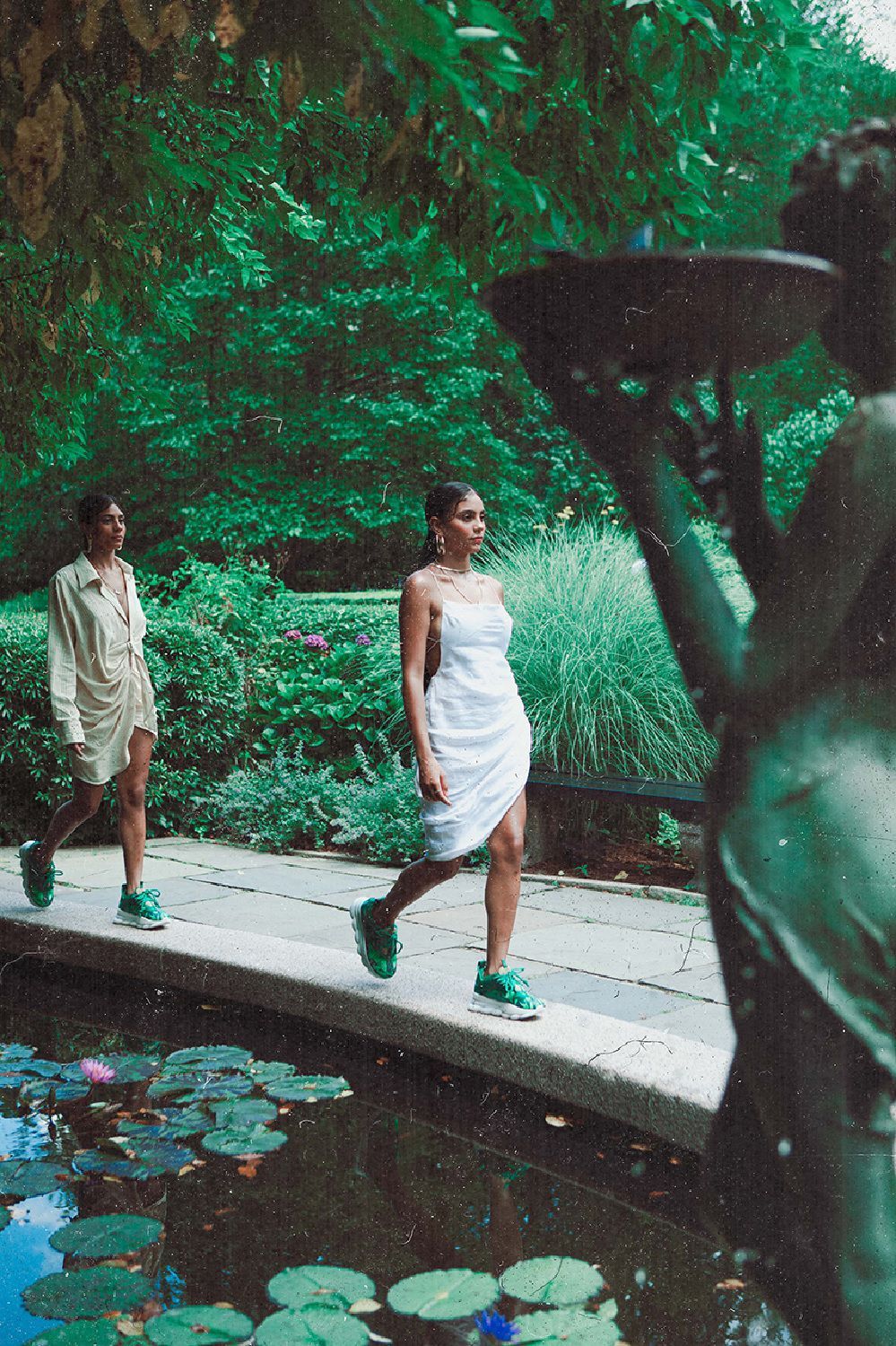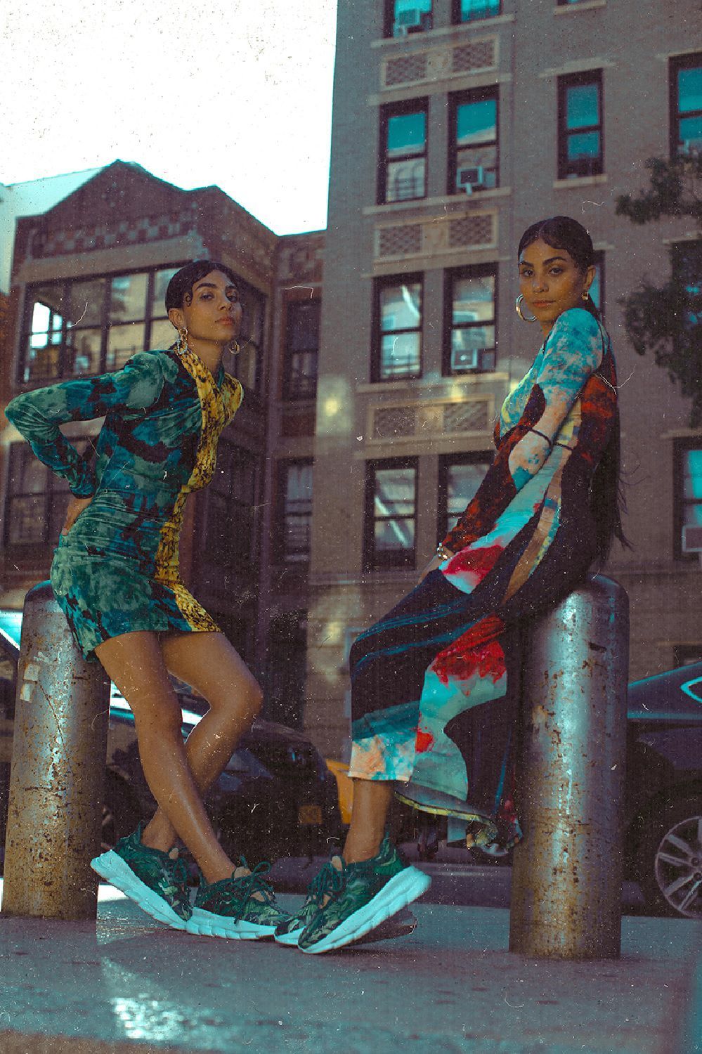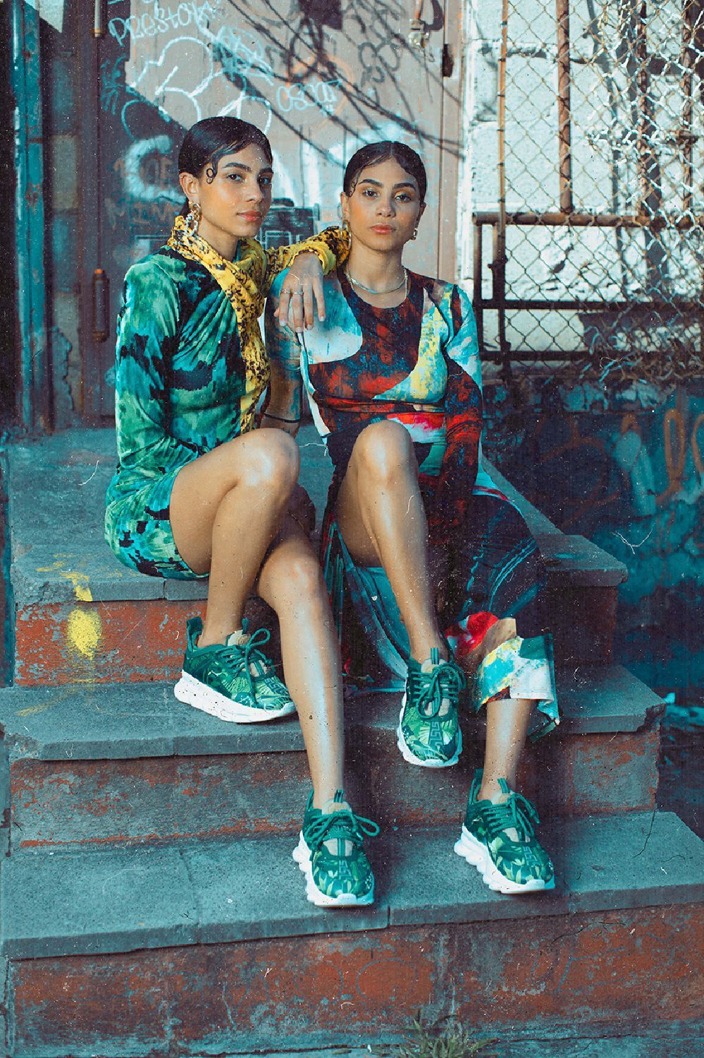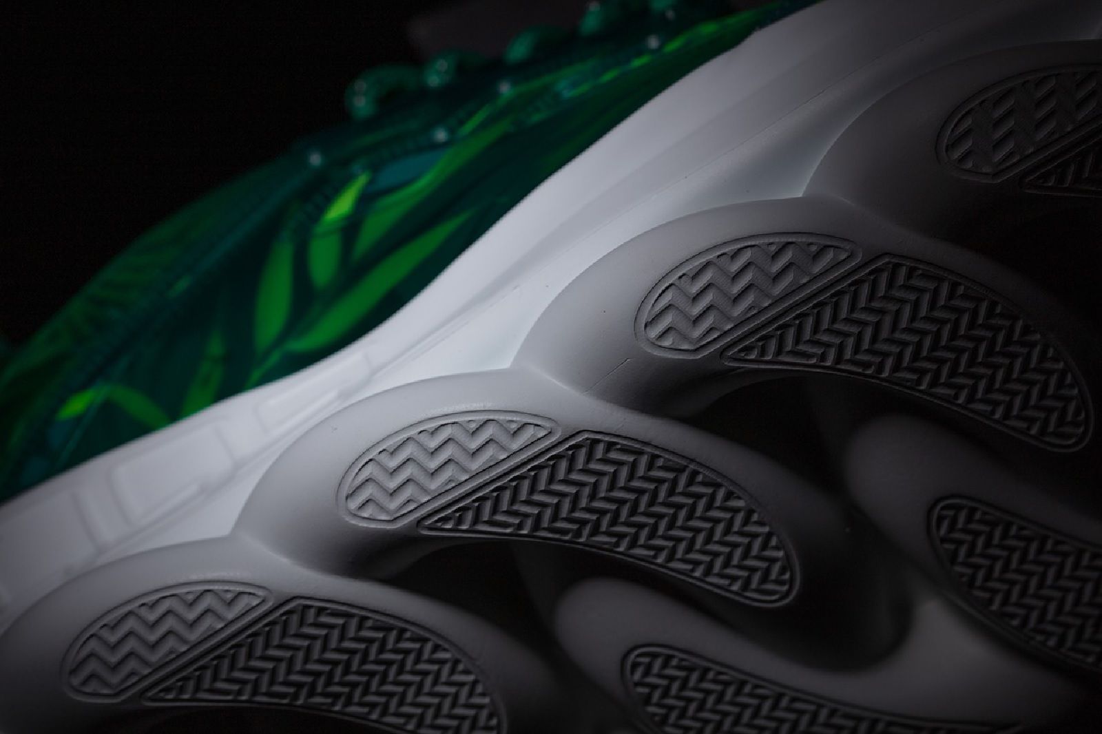Concepts joins forces with Versace to create a new version of the sneaker Chain Reaction. The streetwear retailer looks back on Maison's history and finds inspiration in of its most iconic dress: the emerald green Jungle-dress in silk chiffon worn by Jennifer Lopez at the 2000 Grammy Awards.