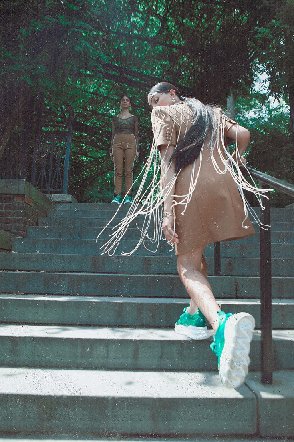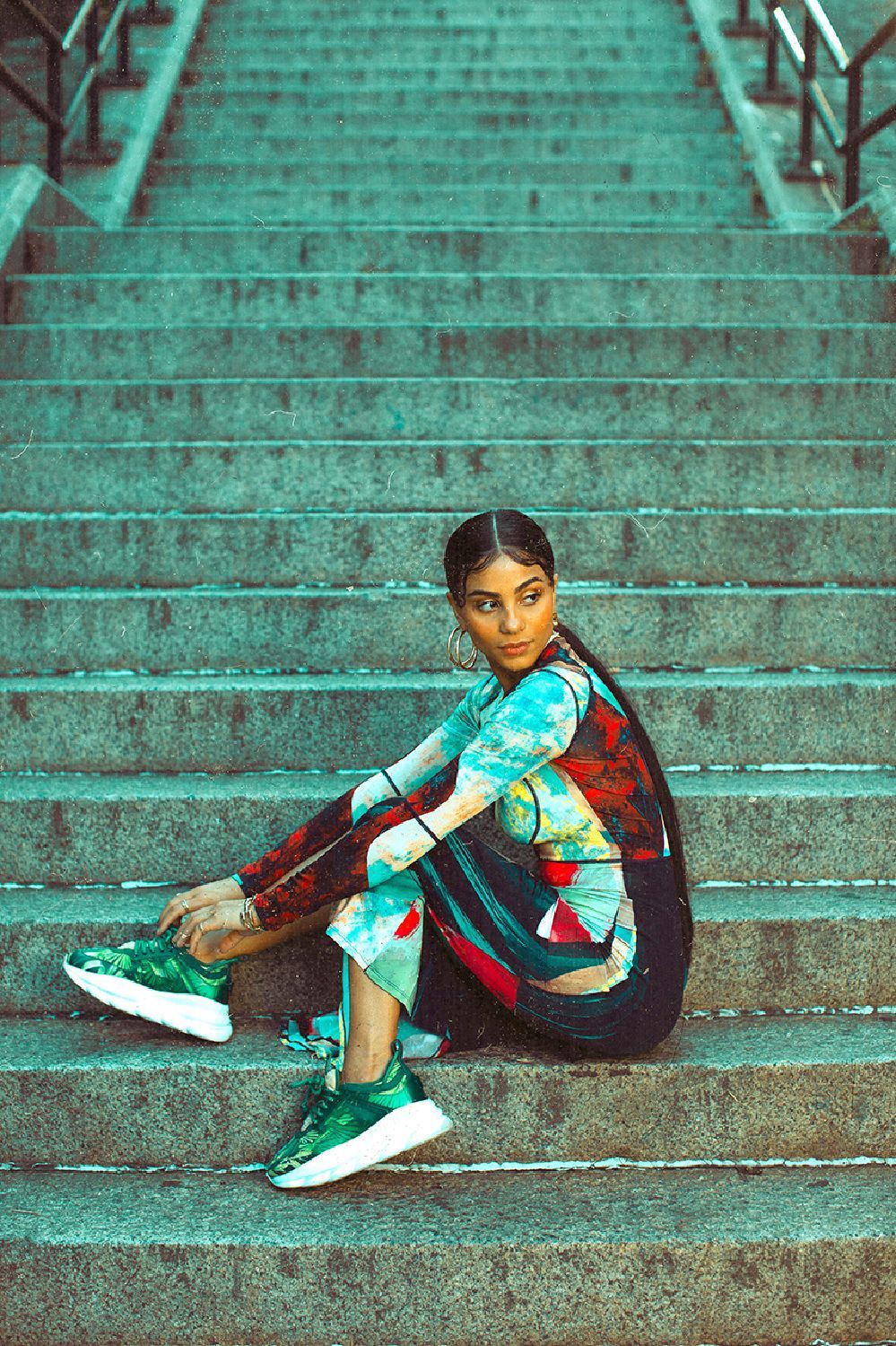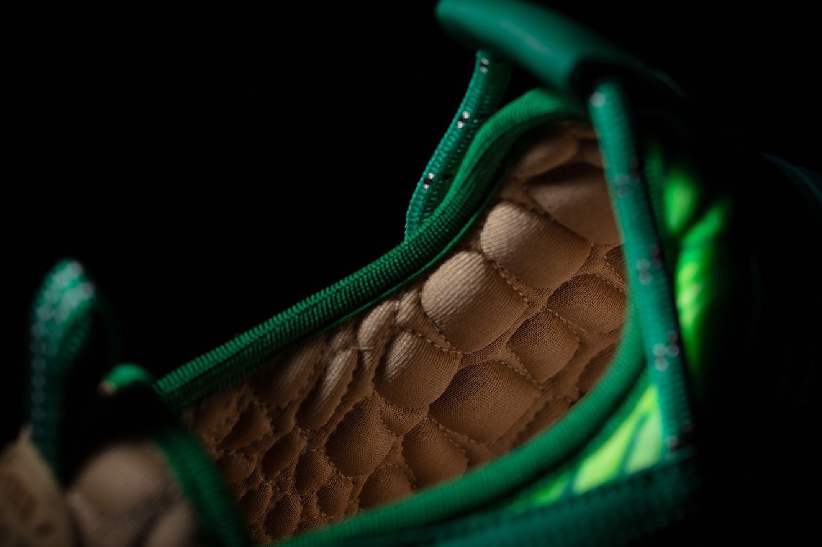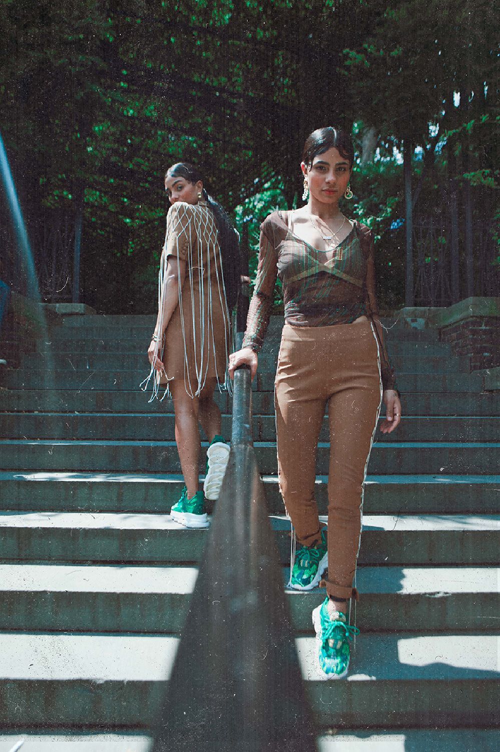 Concepts joins forces with Versace to create a new version of the sneaker Chain Reaction. The streetwear retailer looks back on Maison's history and finds inspiration in of its most iconic dress: the emerald green Jungle-dress in silk chiffon worn by Jennifer Lopez at the 2000 Grammy Awards.