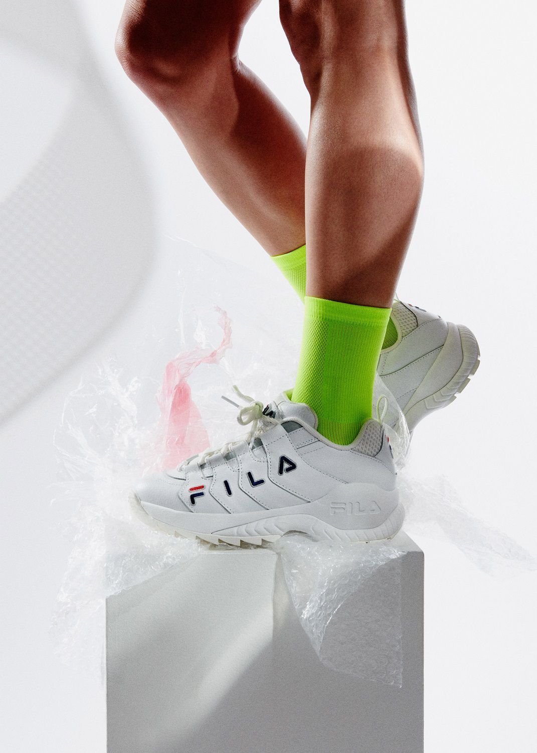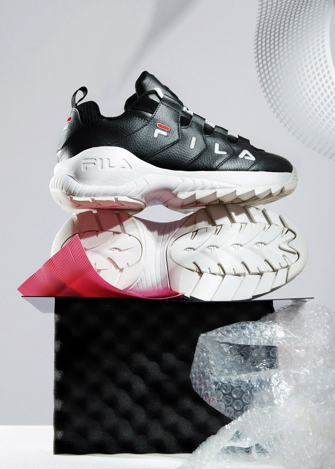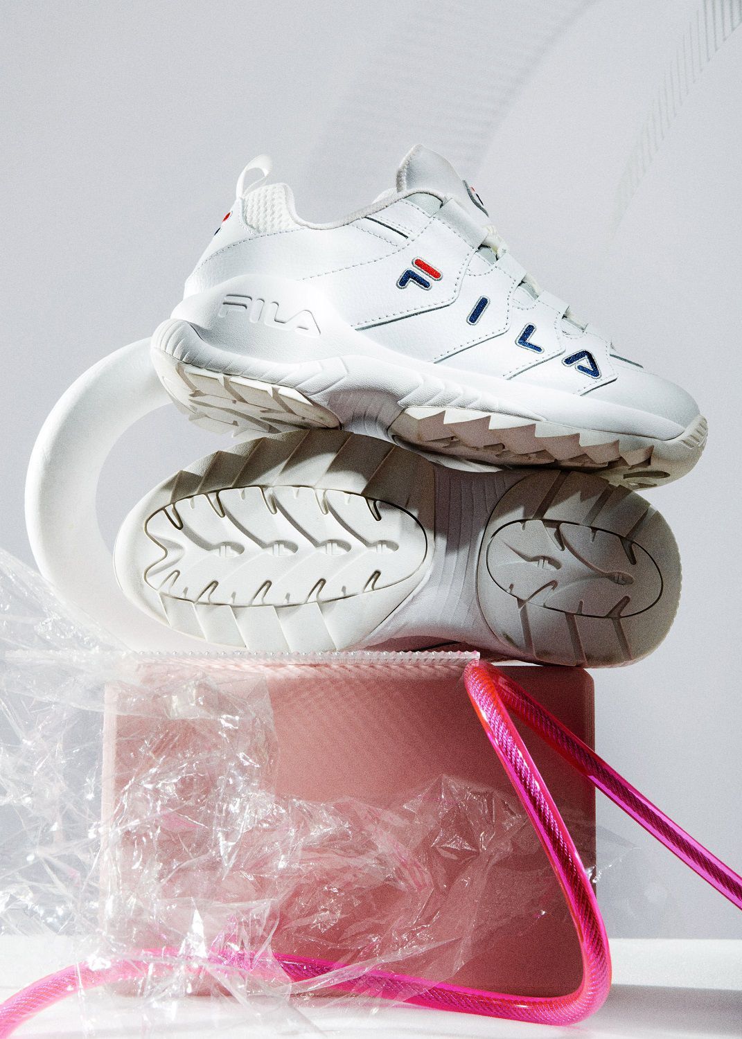 Once again, the brand focuses on a chunky sneaker with a 90's mood, able to combine the sporting heritage of FILA with premium quality materials and the latest trends in streetwear. The new shoe features a leather upper with mesh inserts; logo applied on the tongue, heel and side of the model; maxi sole and two pairs of strings inside the package.