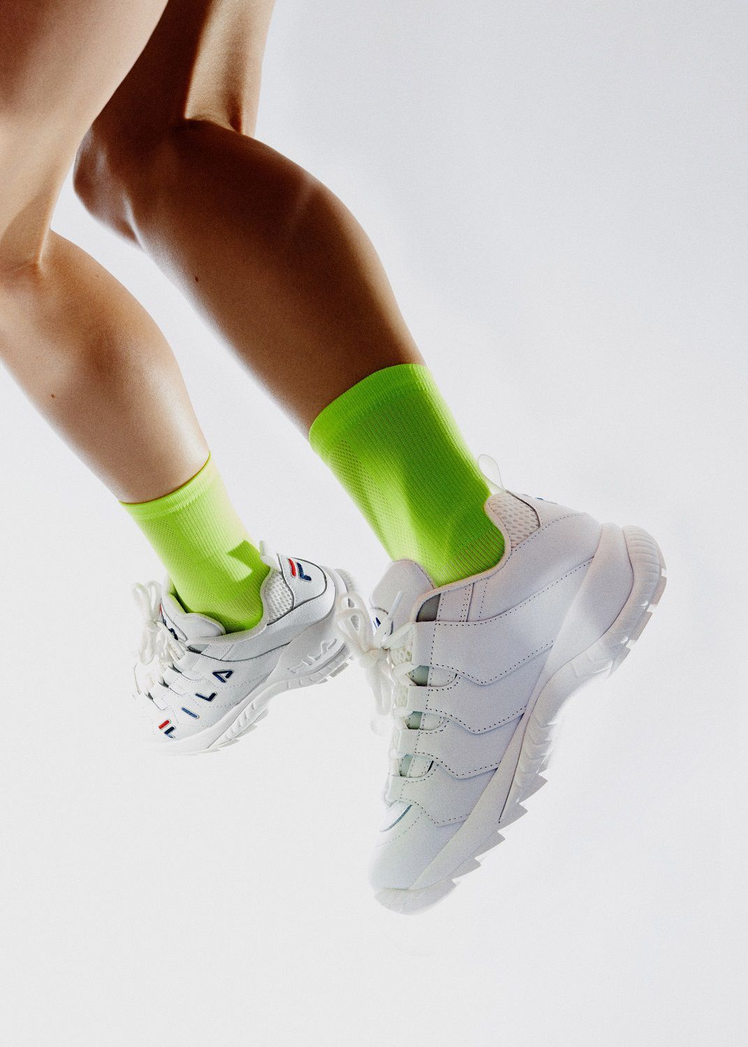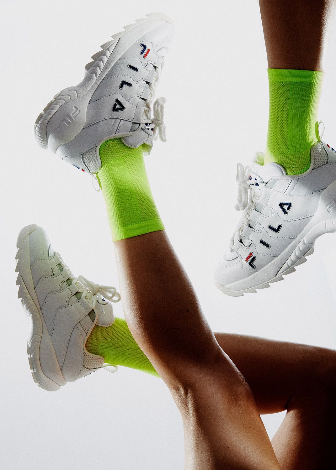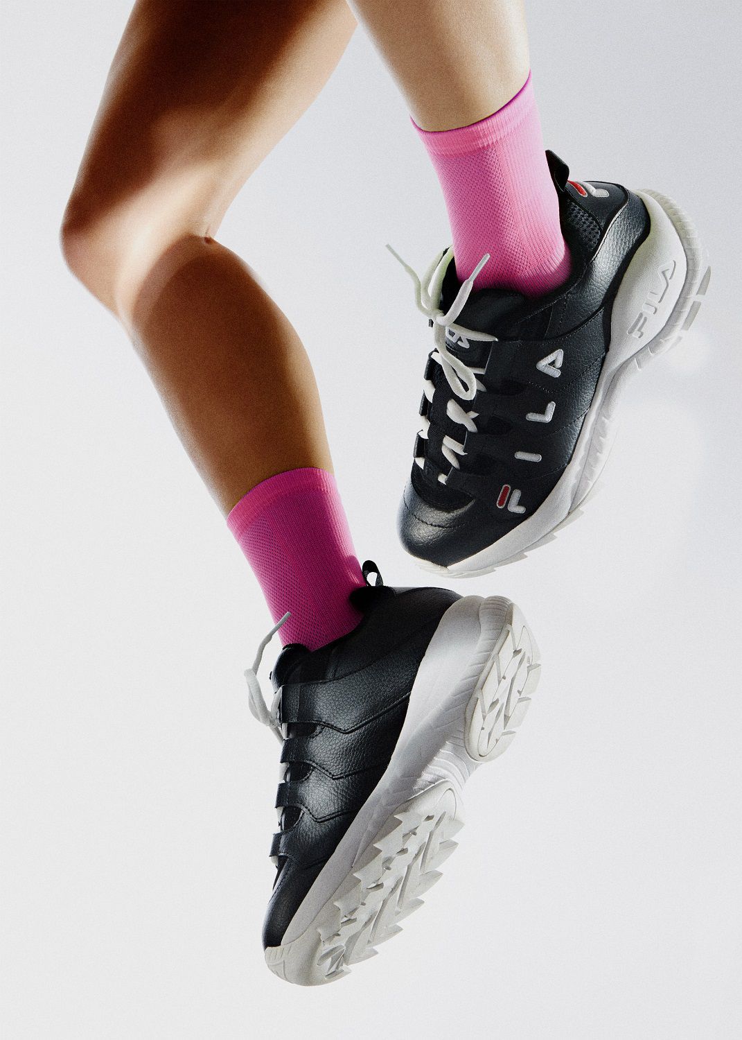 Once again, the brand focuses on a chunky sneaker with a 90's mood, able to combine the sporting heritage of FILA with premium quality materials and the latest trends in streetwear. The new shoe features a leather upper with mesh inserts; logo applied on the tongue, heel and side of the model; maxi sole and two pairs of strings inside the package.