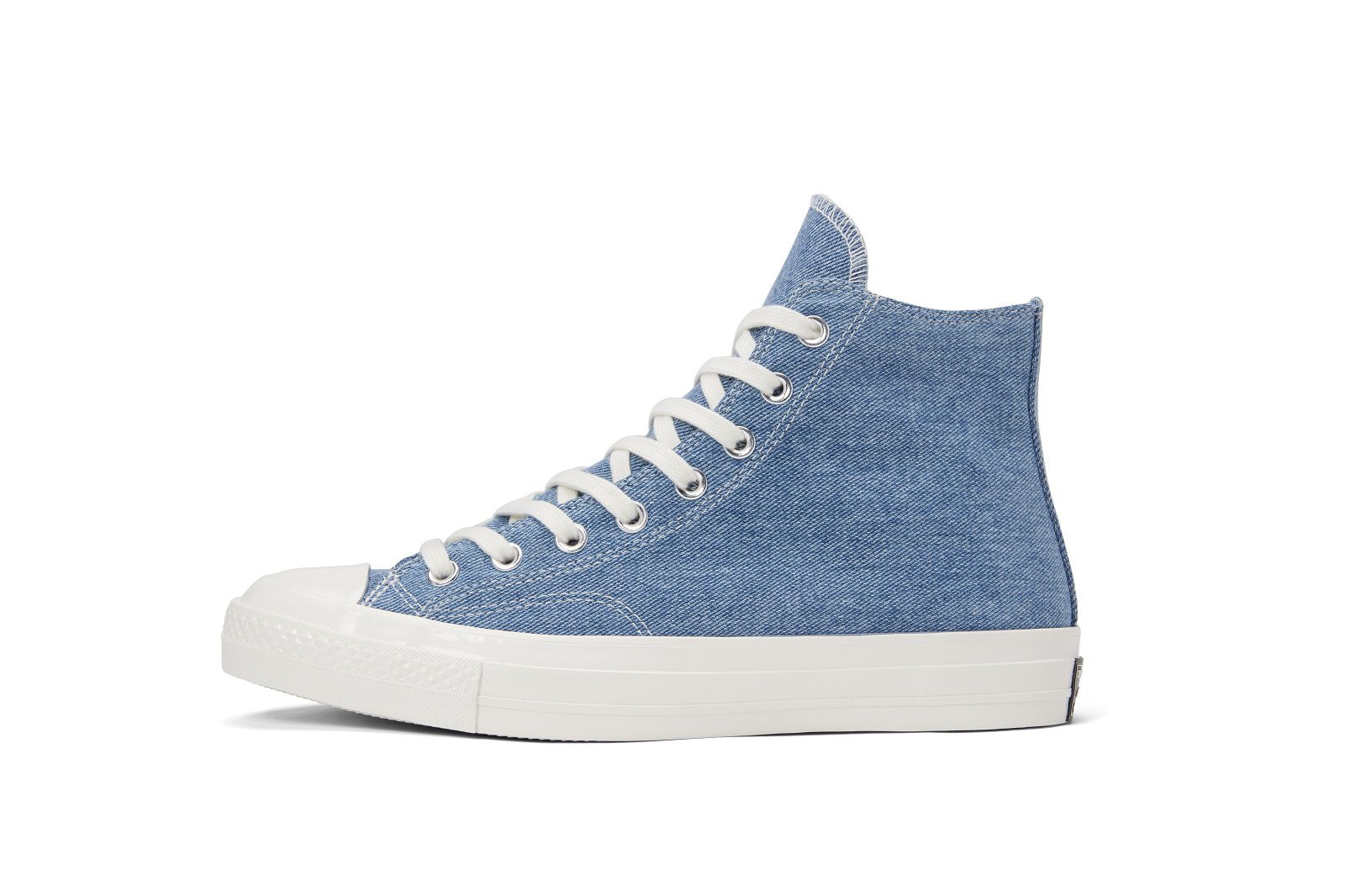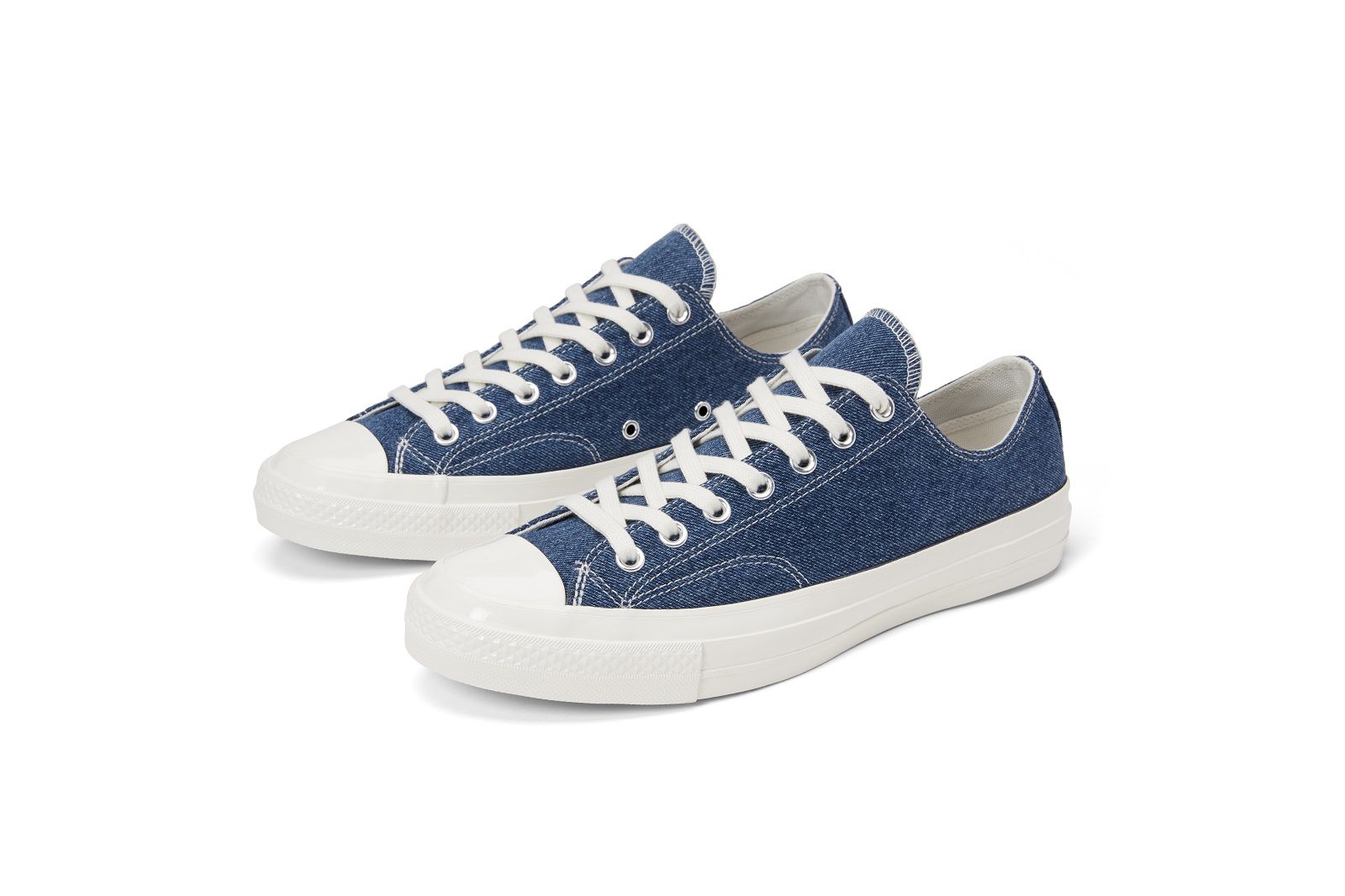 Renew is Converse's first collection of sustainable sneakers, created from 100% recycled materials. The project started four years ago, when Brandon Avery, head of the brand's innovation lab, made a micro-production of Chuck Taylor using old clothing and other special items belonging to staff members. The success of this small experiment has turned into a real program that aims to develop new, innovative and more sustainable ways to create Converse products. Following the presentation of last July of Renew Canvas, a series of sneakers featuring an upper made of rPET (polyethylene terephthalate), recycled polyester from used plastic bottles, the US company is ready to launch Converse Renew Denim. In this second chapter of the eco-friendly project, the iconic Chuck 70 meets denim.