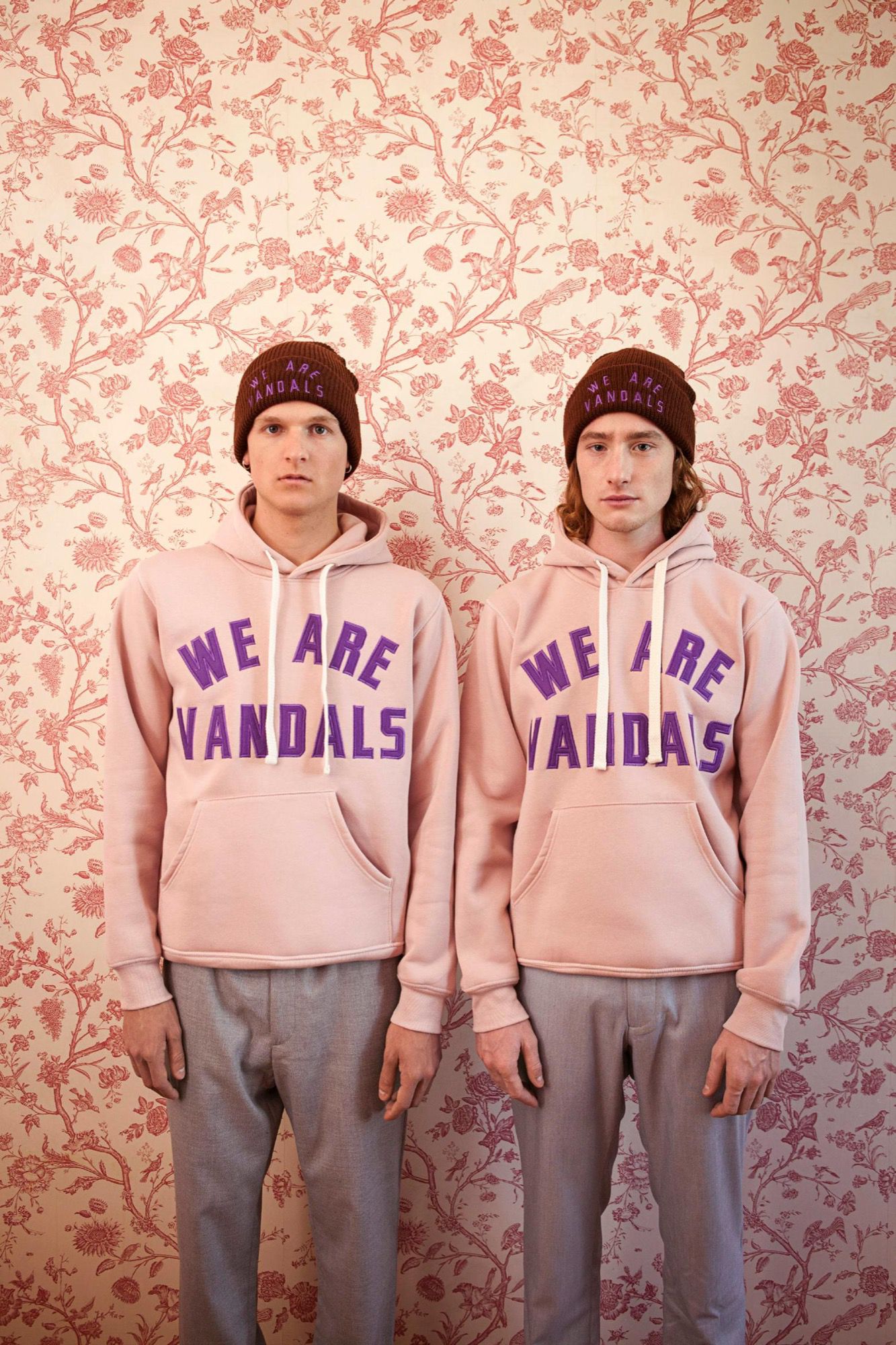In the FW19 collection, the claim that enriches many items is once again We Are Vandals, proof of that rebel and over the top character that is part of the DNA of the brand. The collection features hoodies, crewnecks, T-shirts, shorts, beanies, scarves, socks, all ranging from white to black with a series of burgundy and pink tones. Pas De Mer adds a new spin on classic corduroy and denim jackets thanks to unexpected cuts and silhouettes. In the lookbook shot by Lisa Carletta, the collection comes to life in a funny shooting that highlights the ironic but nevertheless cool nature of Pas De Mer.