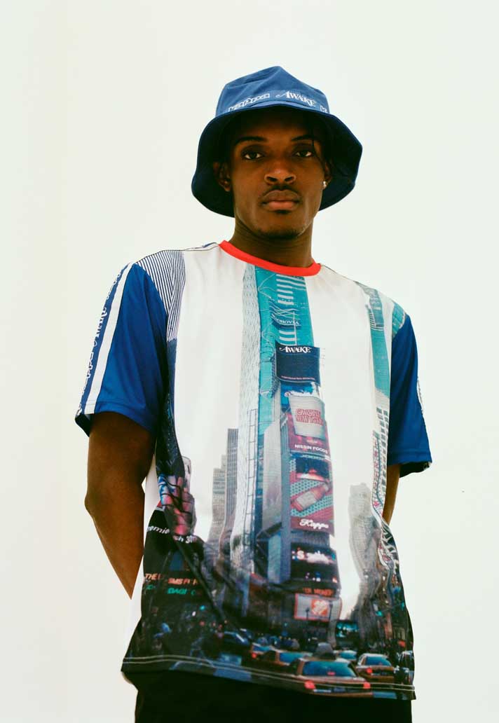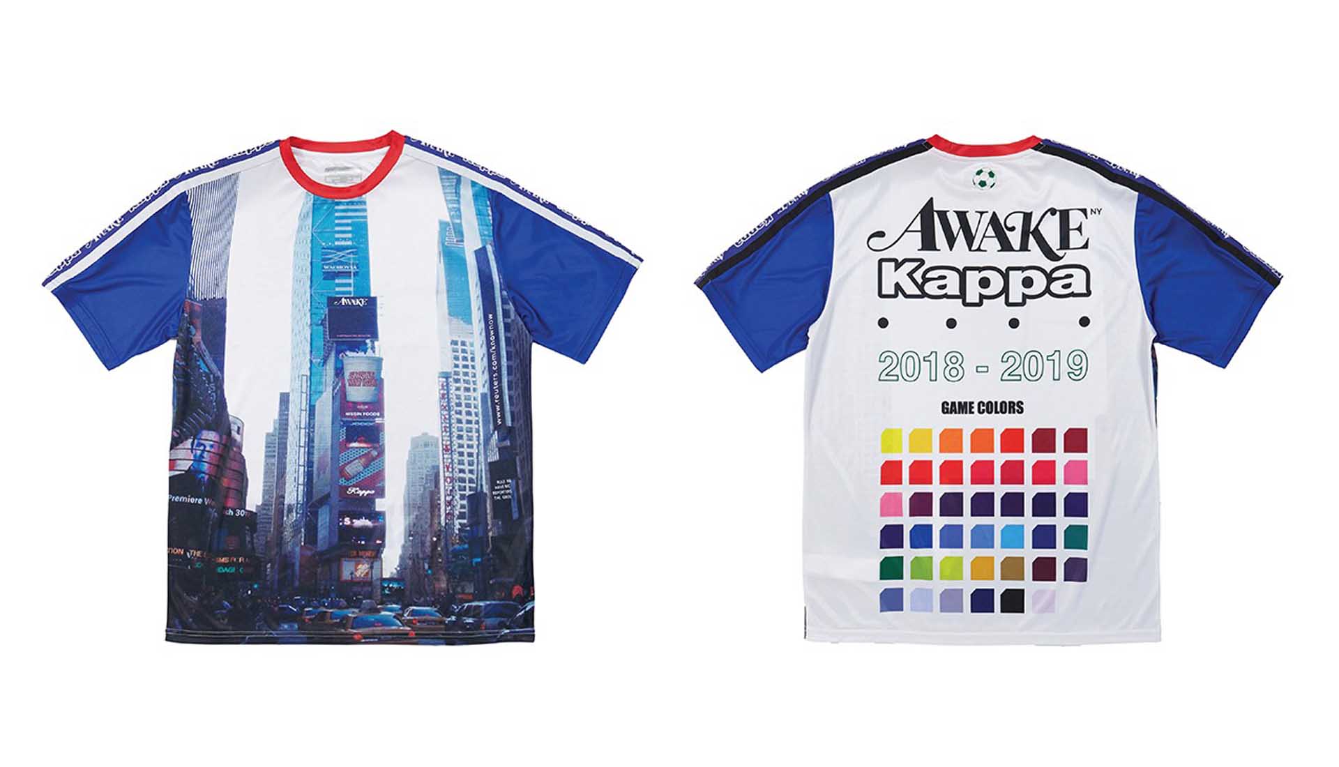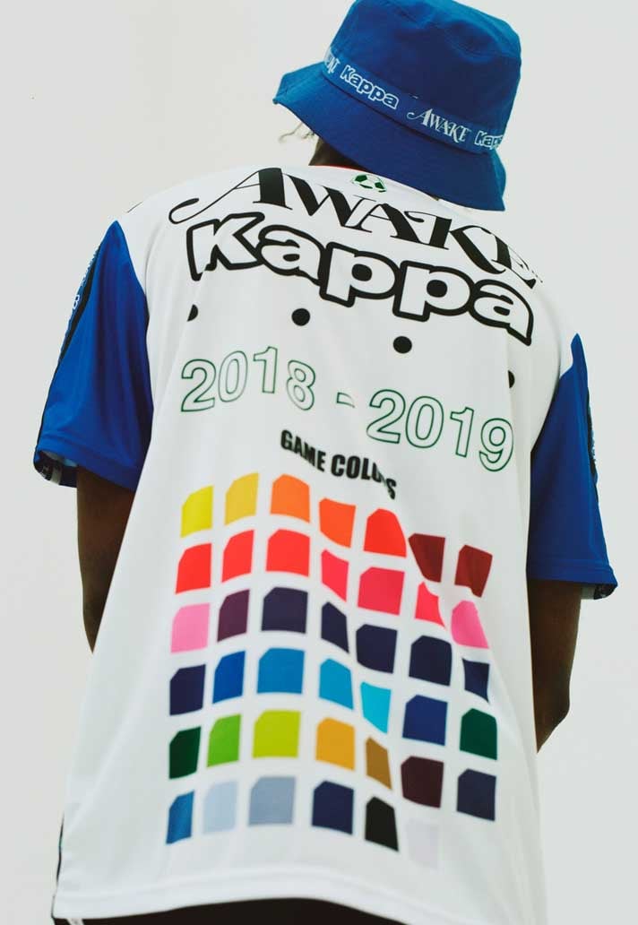 What makes the union of the two brands even stronger is the visual combination of their respective logos, in continuous alternation in the bands that characterize each item of the collection. The line includes some typical '90s garments, which have become distinctive features of entire subcultures (especially Chavs and Casuals - in football -, iconographically linked to brands such as Kappa): from traksuits to stadium jackets, to the iconic bucket hat (with the circular band that perfectly highlights the alternation of the double logo). And then, of course, a purely sport garment such as the football jersey, a prerogative of Kappa, declined towards the New York roots of Awake, made clear and distinguishable by the frontal print represented Time Square.
