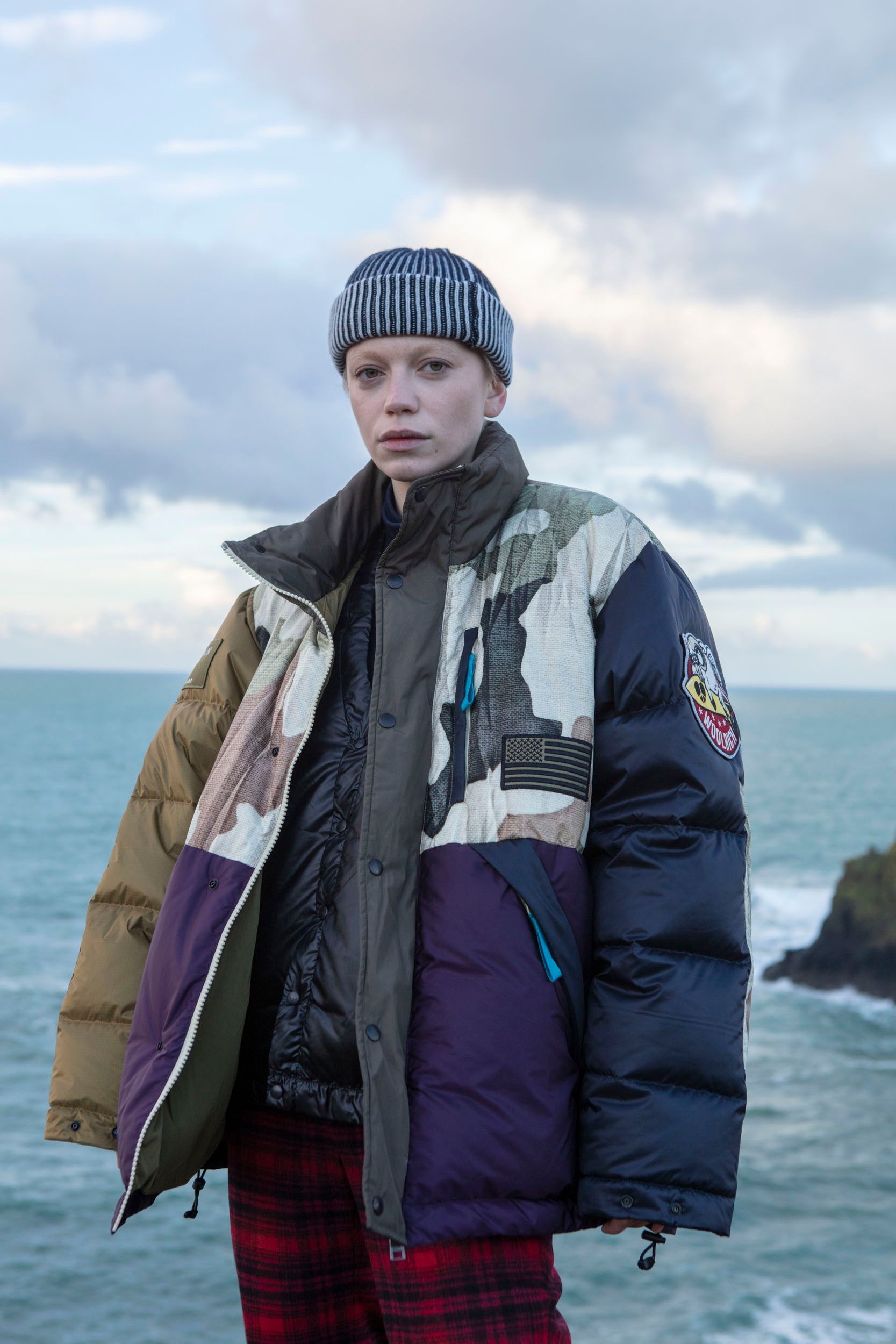 The dialogue with Woolrich's nature becomes complete in this collection, from the Pennsylvania woods to the English coasts. The sea plays a leading role in this project, the fabrics of the garments are an act of ecologic activism of the brand, made with plastic collected from the Spanish coasts and transformed into recycled Polyester, which is combined with cotton grown without pesticides.