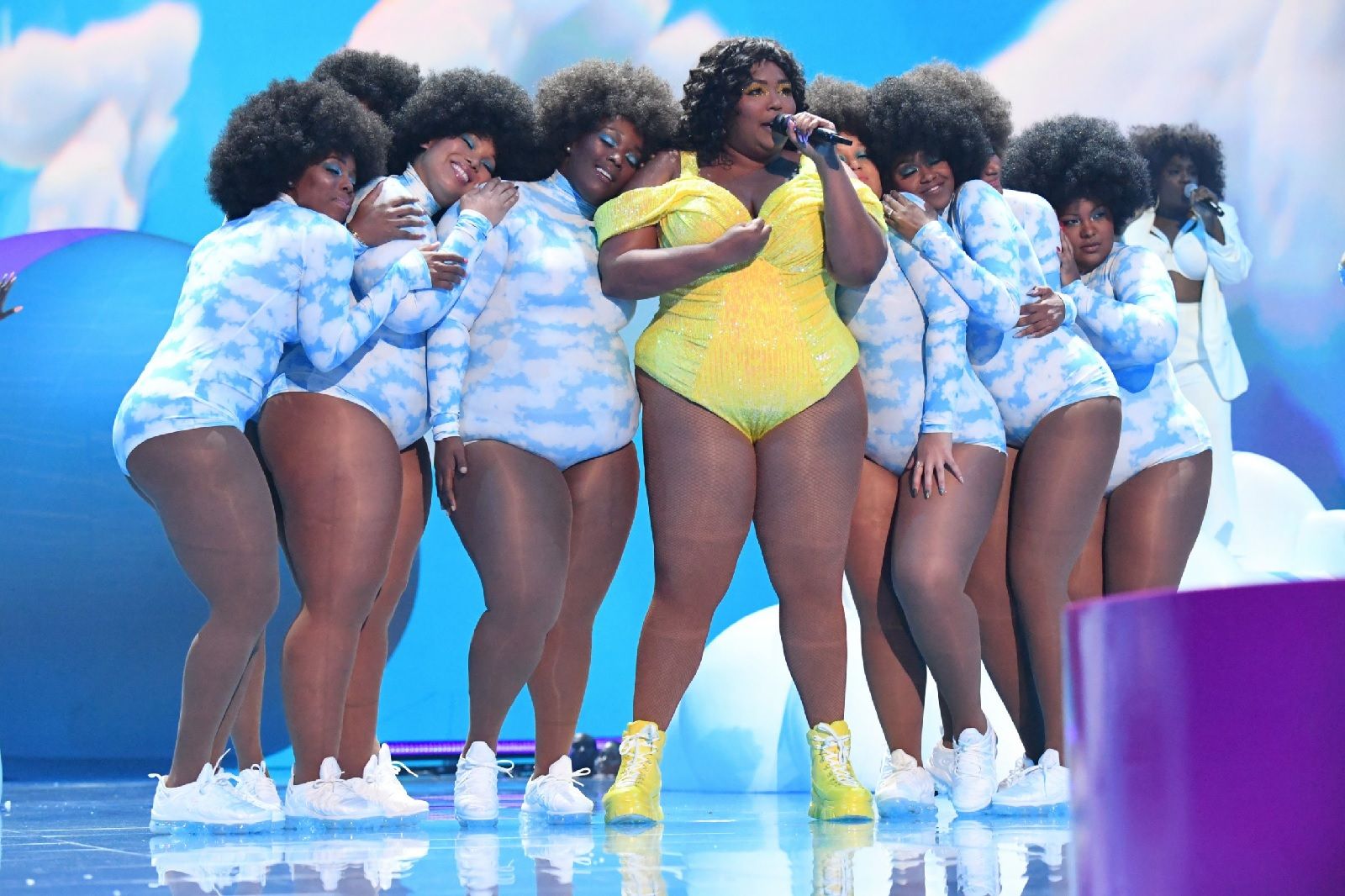Lizzo is definitely one of the people of the year, for her music, but also for her outfits. Among the most iconic there' s the sparkling yellow swimsuit worn at MTV VMAs, so cool to spark a 717% increase in social media mentions, while all things yellow generated over 10,000 views on Lyst. If you want to be perfect Lizzo, match your yellow swimsuit with sneakers and eye shadow of the same color.