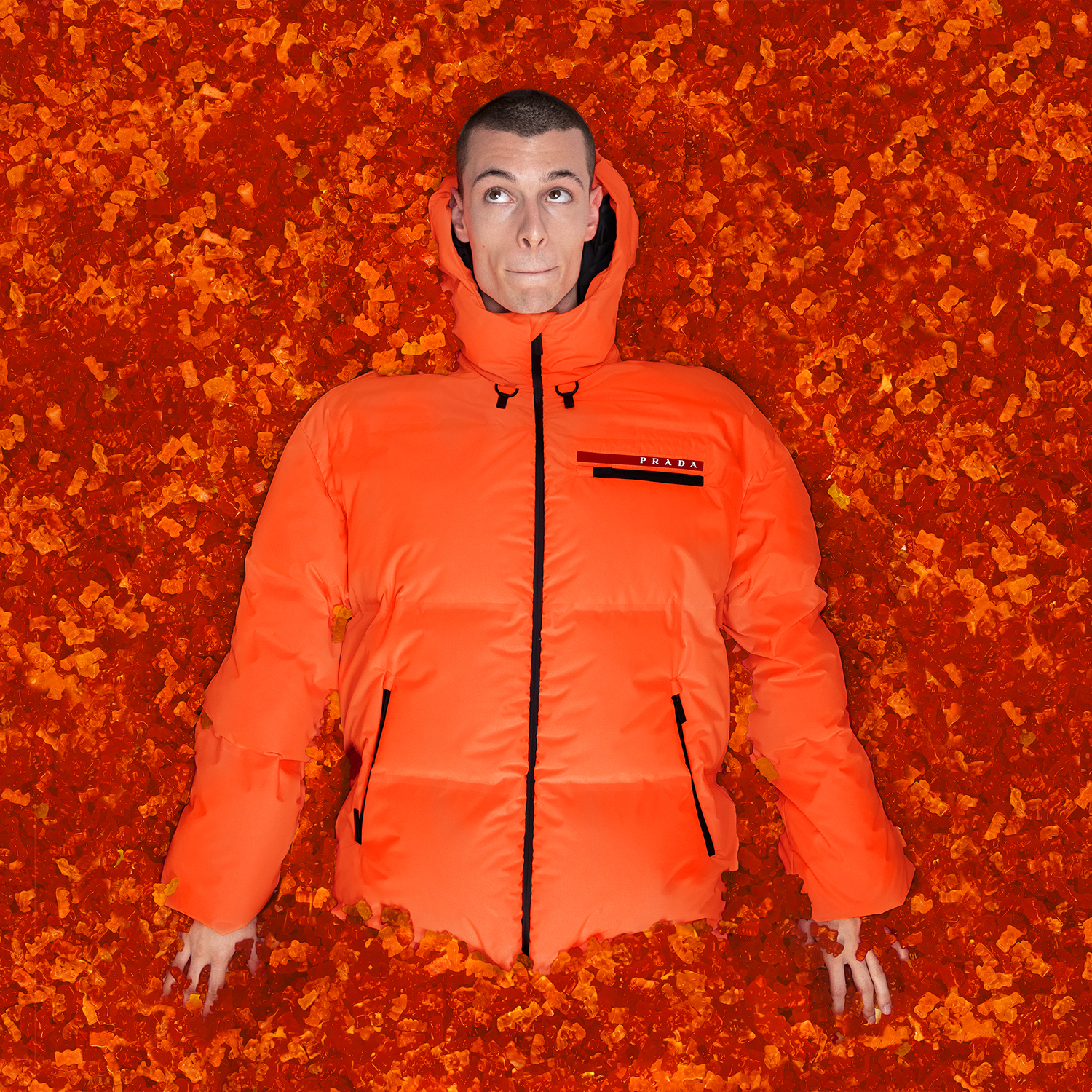 Pulled into a vortex of sweets, we slip in a dimension inhabited by Prada puffer jackets, Moncler quilted jackets and Fendi windbreakers.