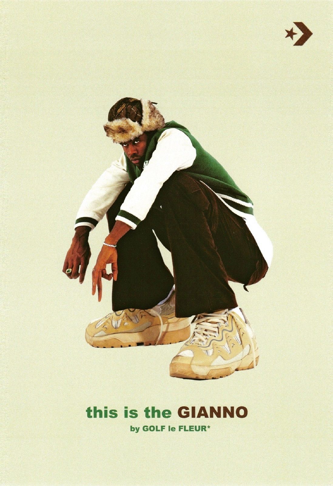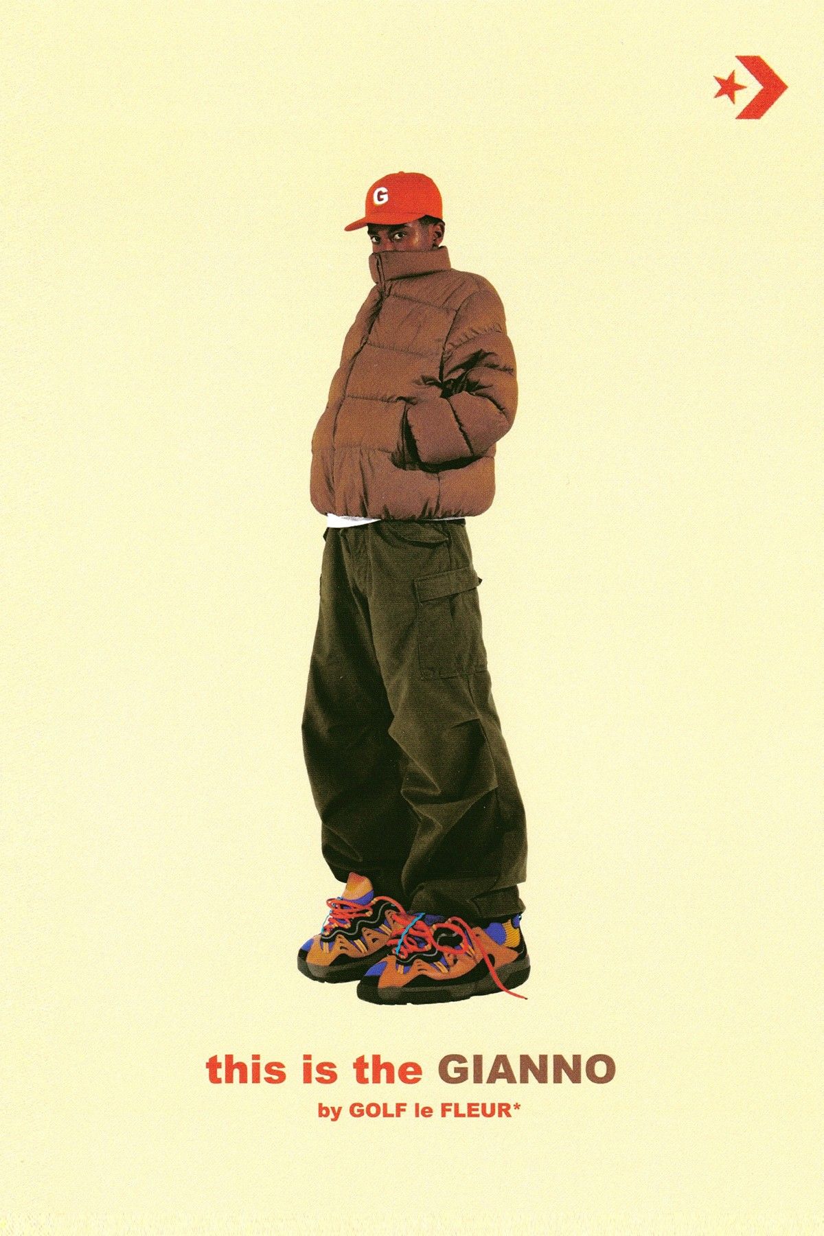 GOLF le FLEUR *, Tyler the Creator's brand, is one of the most interesting young streetwear brands around. With its aesthetics made of pastel colors, vintage inspirations and soft silhouettes, Golf has found its own niche in the market and has become a perfect counterpart to music-originated streetwear with a contemporary flavor of brands such as Yeezy and Fenty. Since its inception, the brand has collaborated with Converse on more than one occasion but the last of these collabs, the one that led to the creation of GOLF, the FLEUR * x Converse "Gianno", due out today, is perhaps the most showy departure from the classic Chuck 70 and One Star models created so far.
