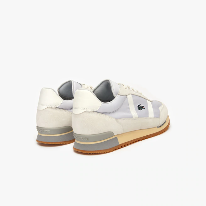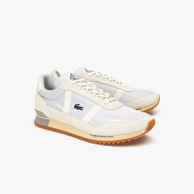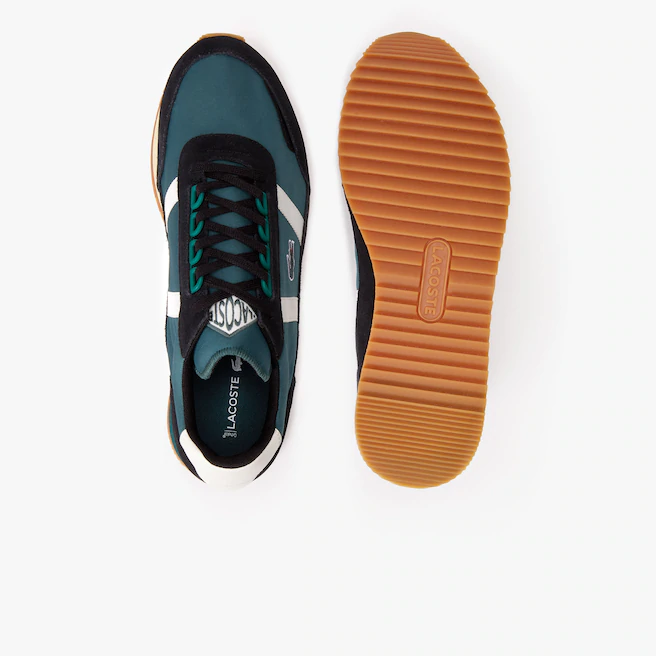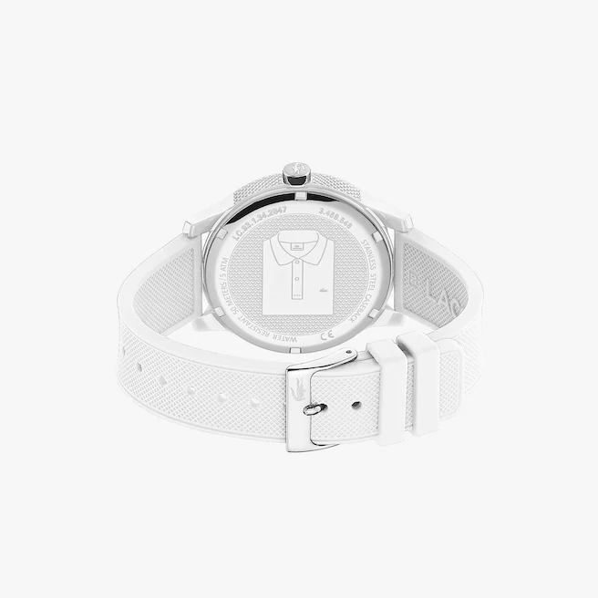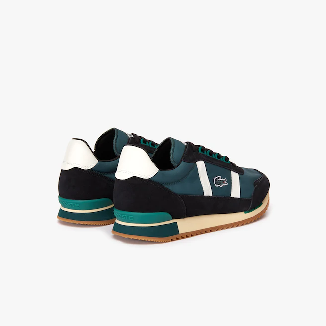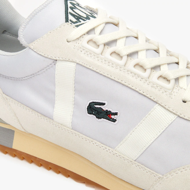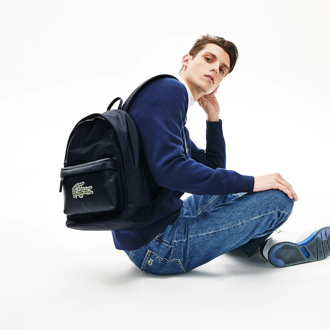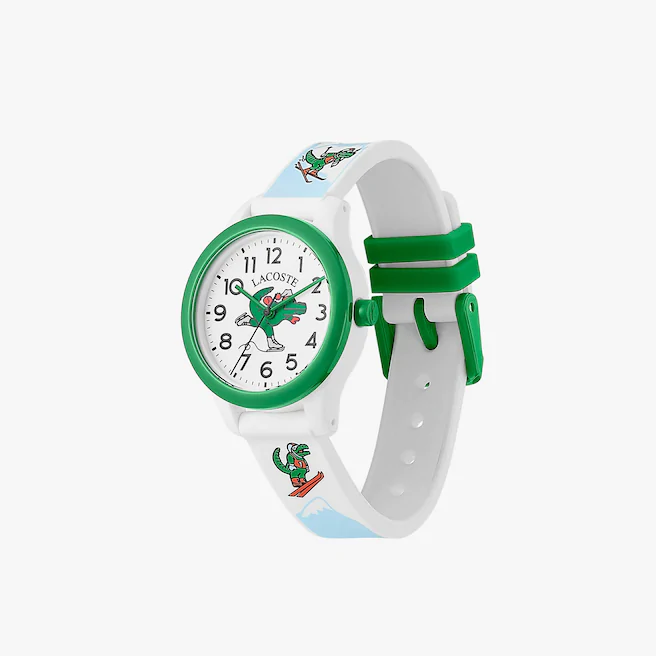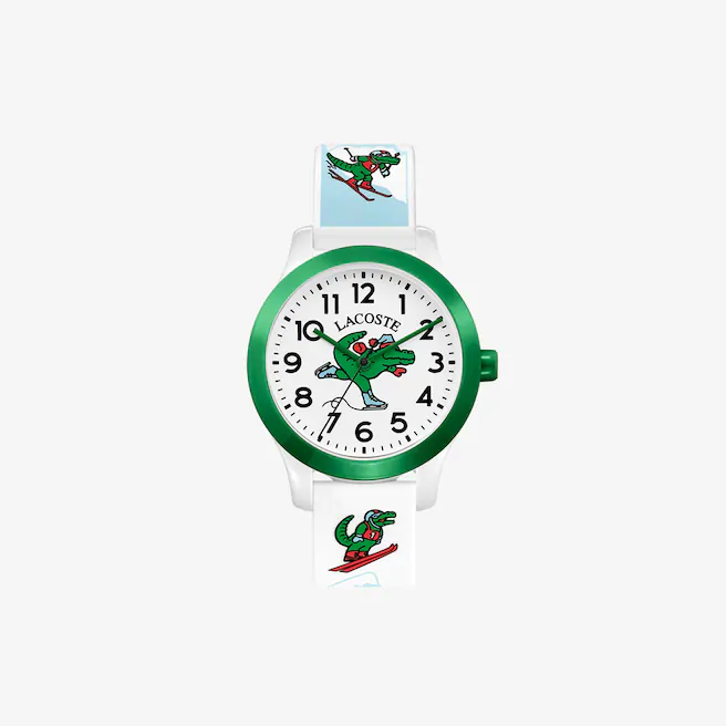 Accessories make up a large part of the collection. There's a black grainy leather bag with a chain shoulder strap and a blue synthetic backpack with a leather pocket that houses the composite logo of the "Croco Magic" and an embossed leather purse decorated with the traditional logo in seven different colorways. There are two watches, one for white silicone man/woman with the collection logo on the dial and one for children with the crocodile skiing and skating. The Partner Retro Sneaker closes the collection in the two green and grey colorways, with suede inserts, plastic eyelets and a rubber sole that gives the entire silhouette a vintage look.