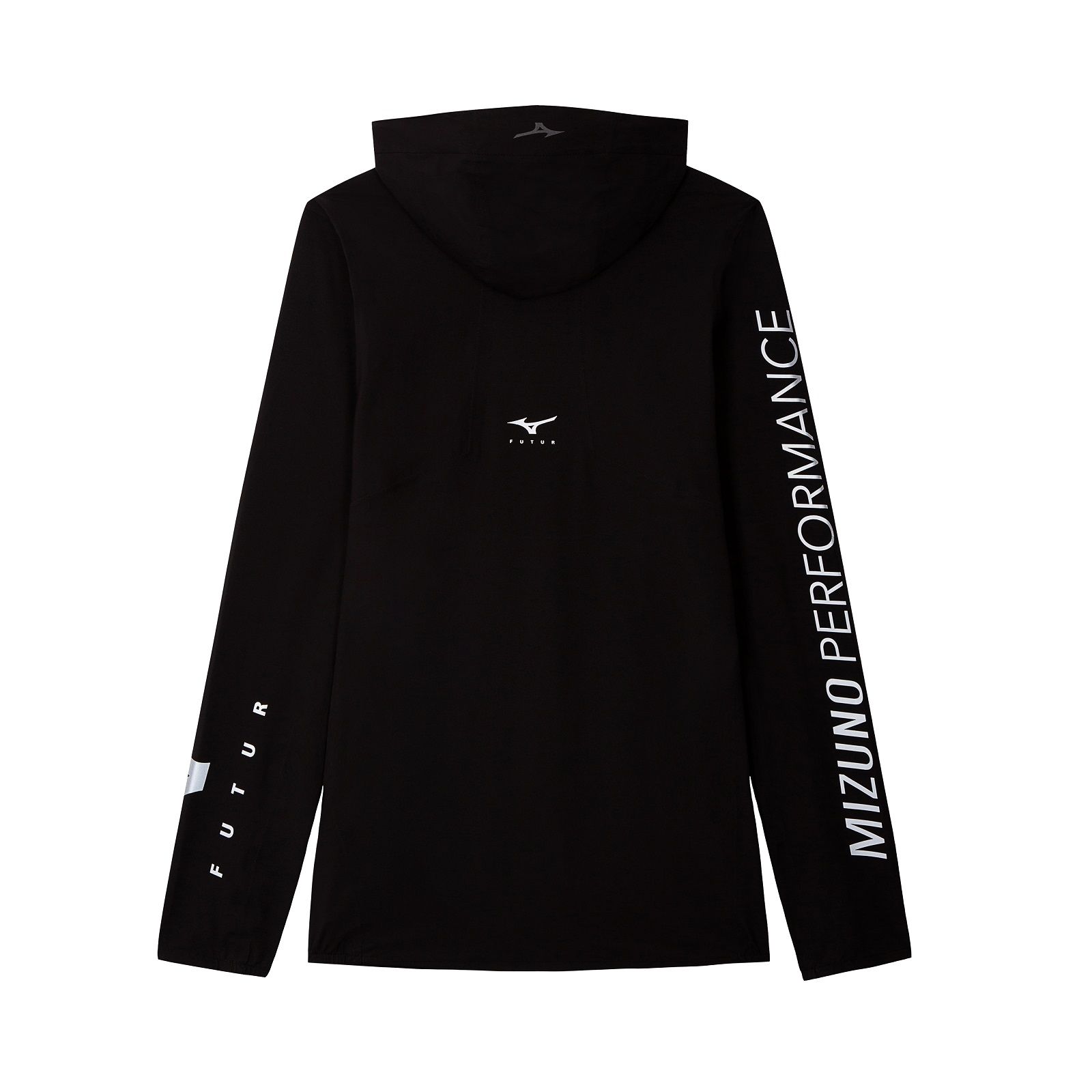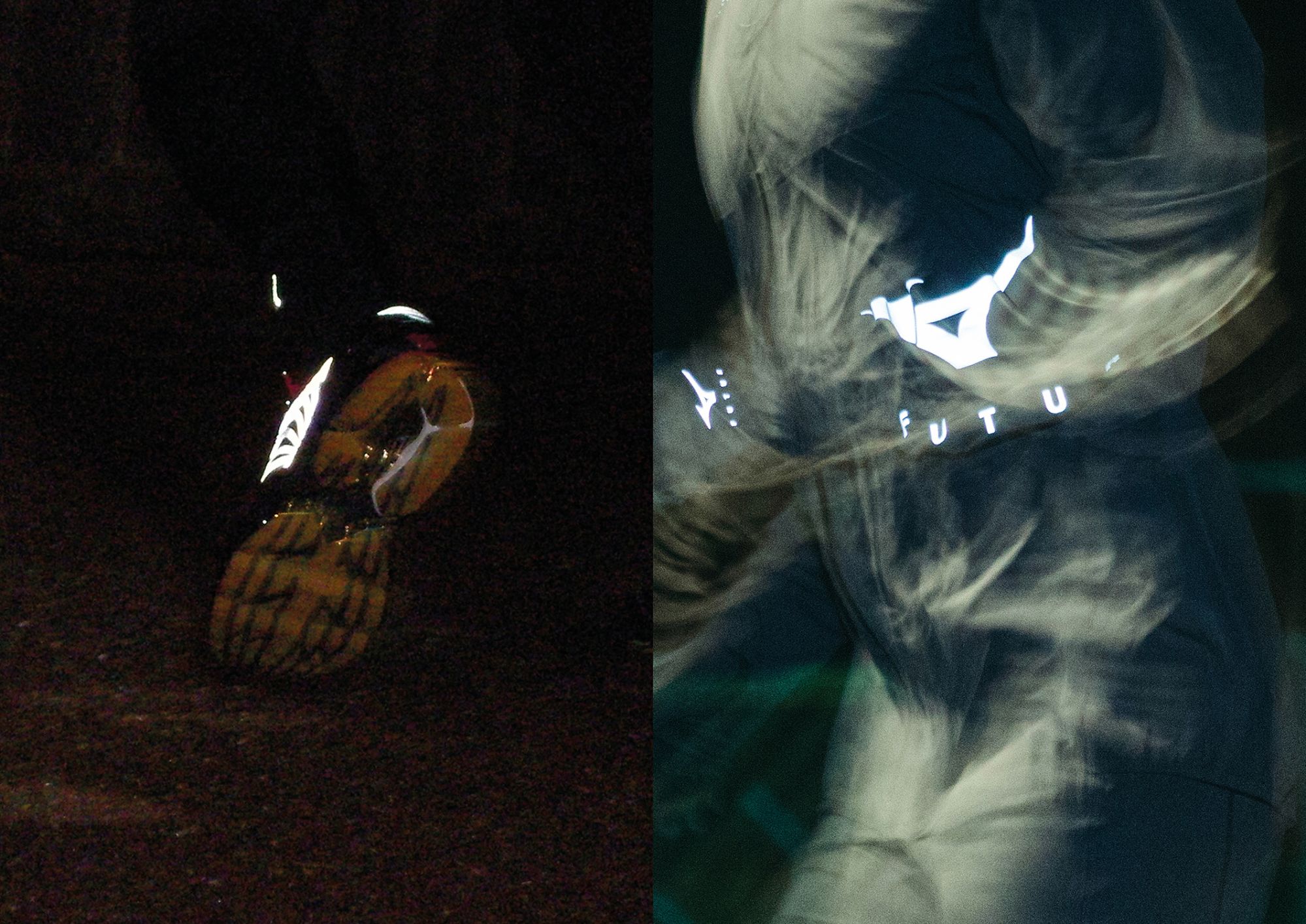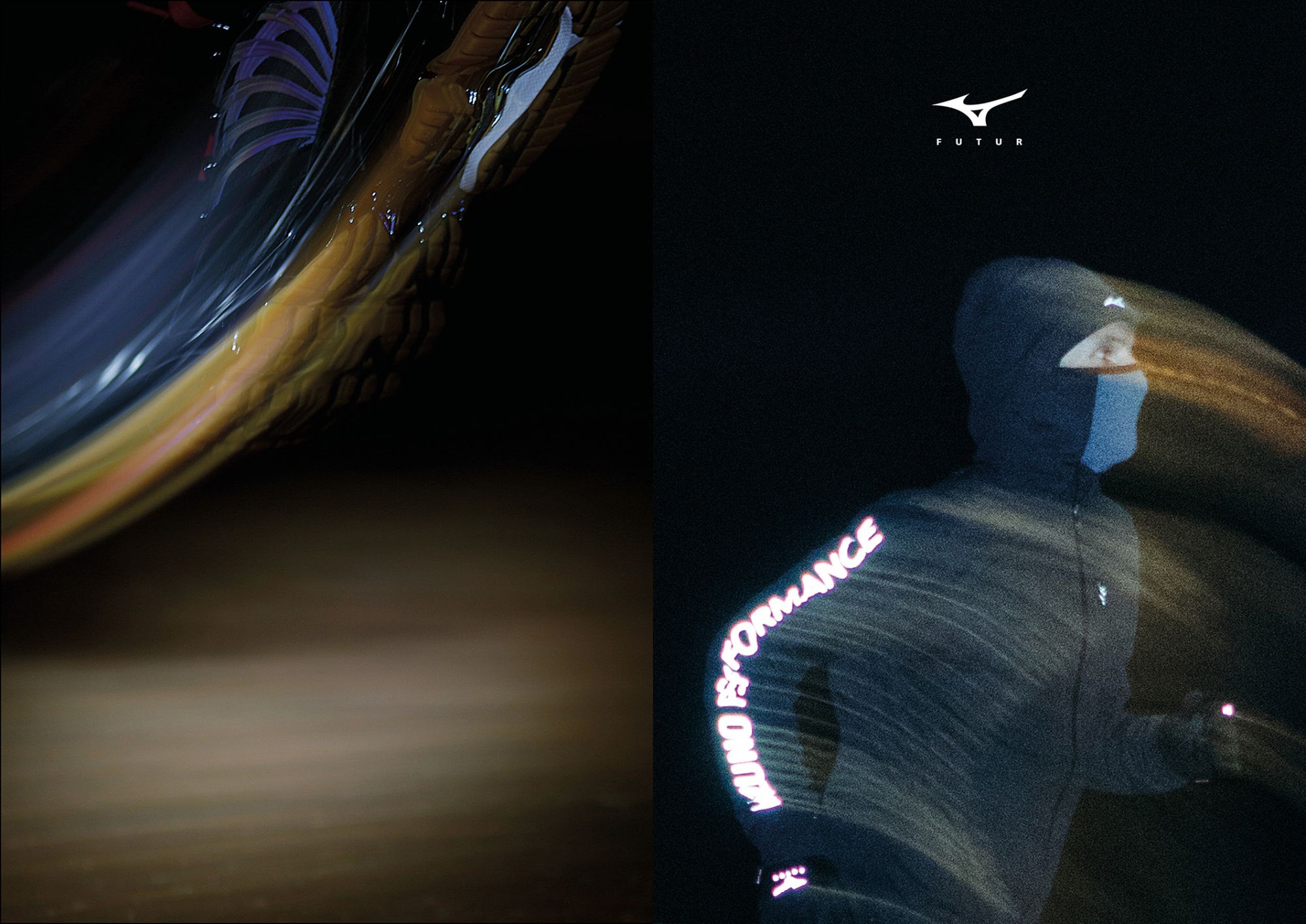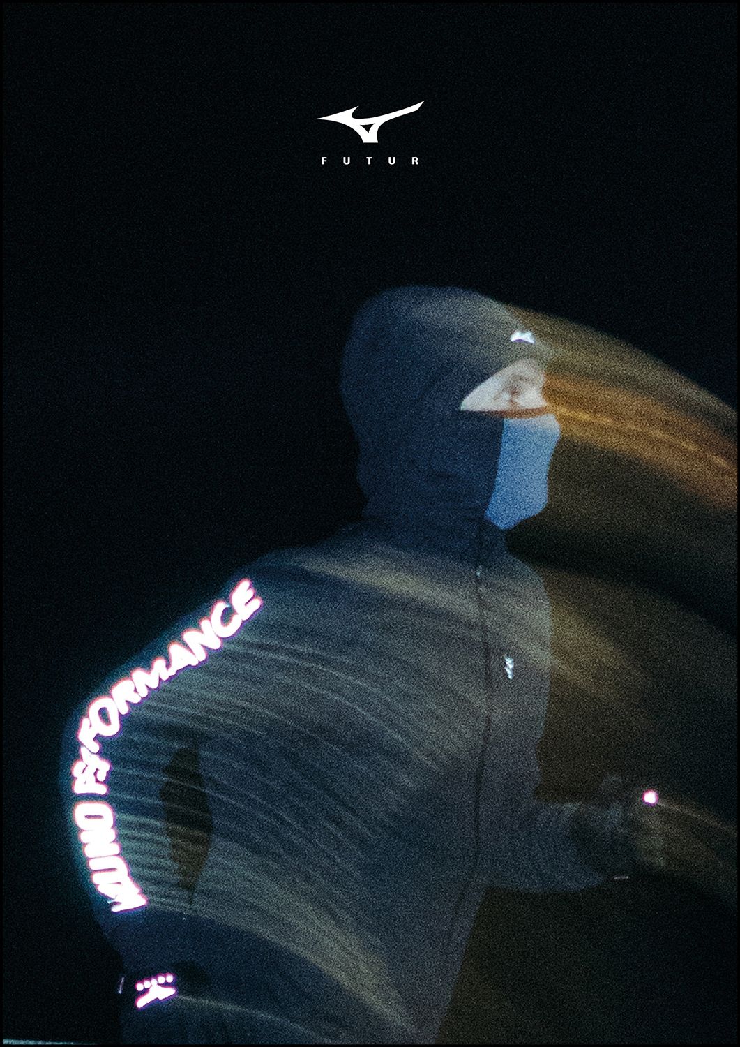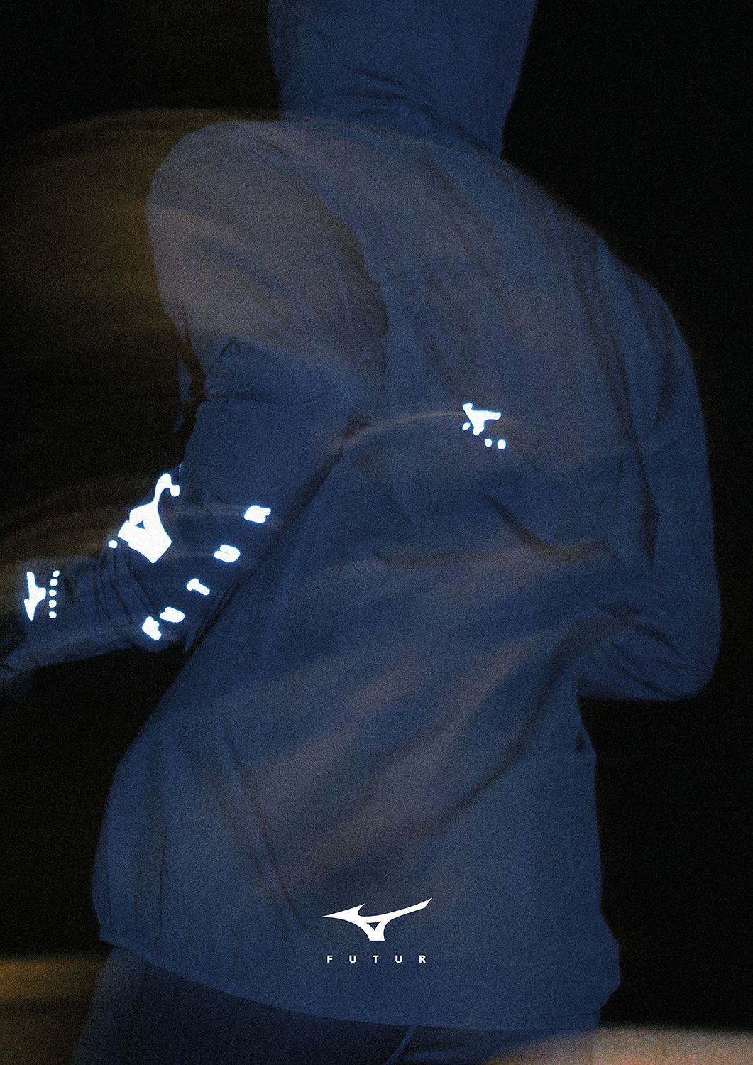The clothing capsule consists of four hats with the double branding of FUTUR and Mizuno, thermal gloves and balaclavas and two black weatherproof running jackets, for men and women, made in the Mizuno technical fabric, impermeable and breathable, with reflective graphics on the back and both sleeves. All the items of the capsule were immortalized in a photoshoot made by Thibaut Grevet.