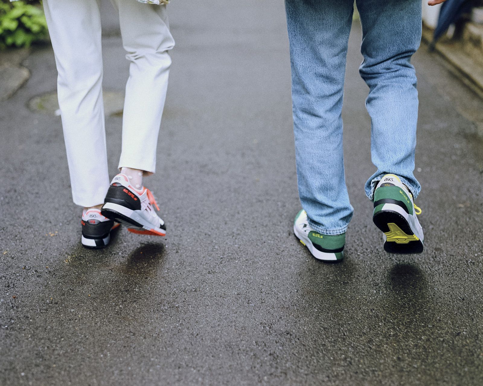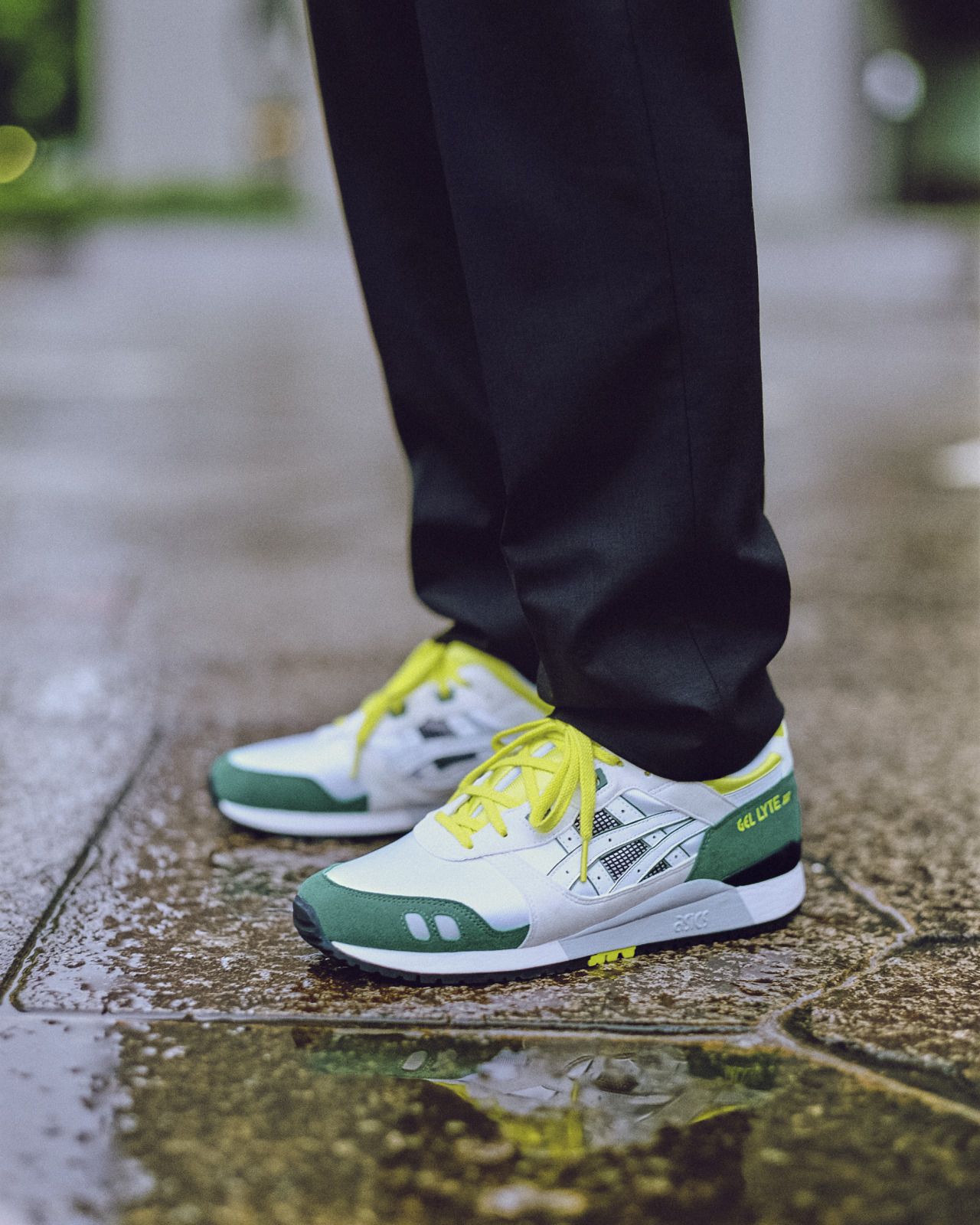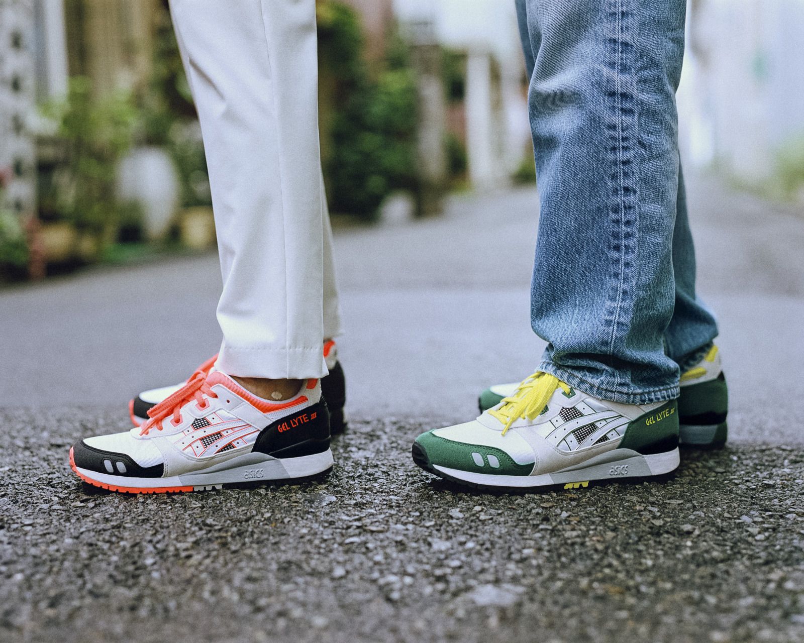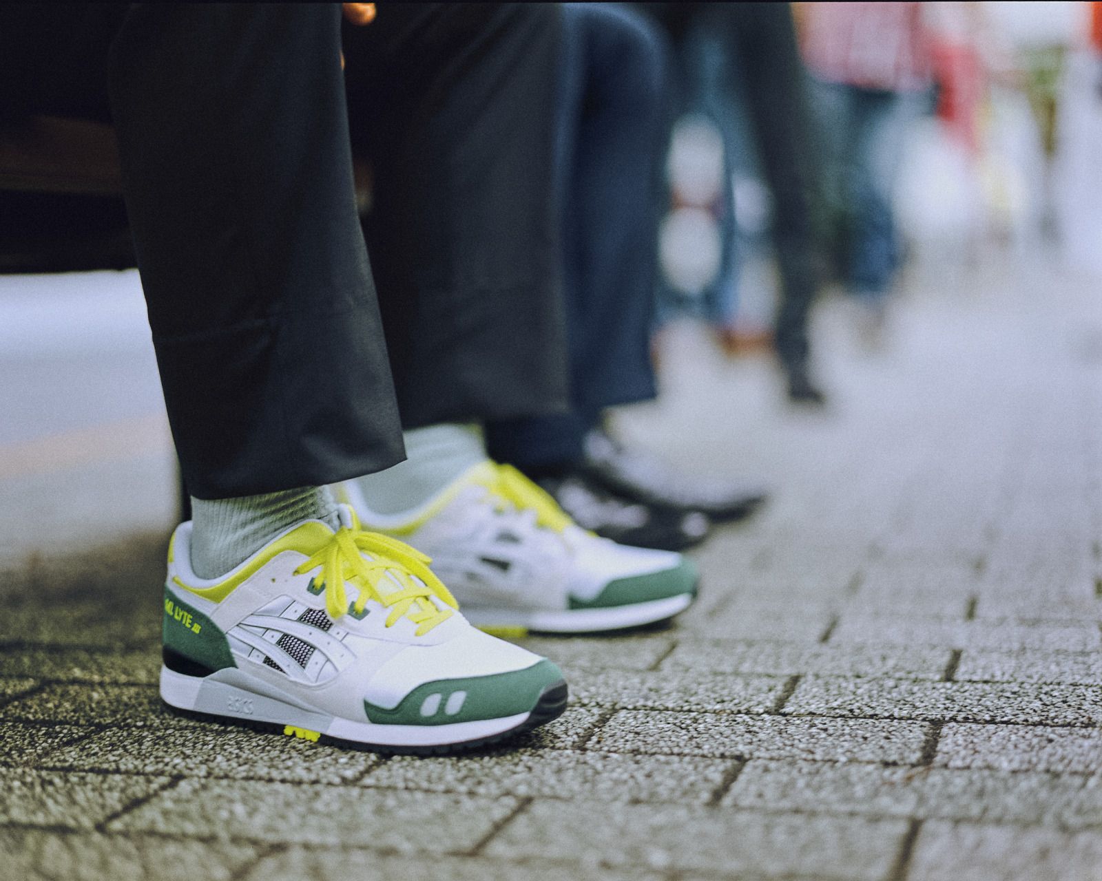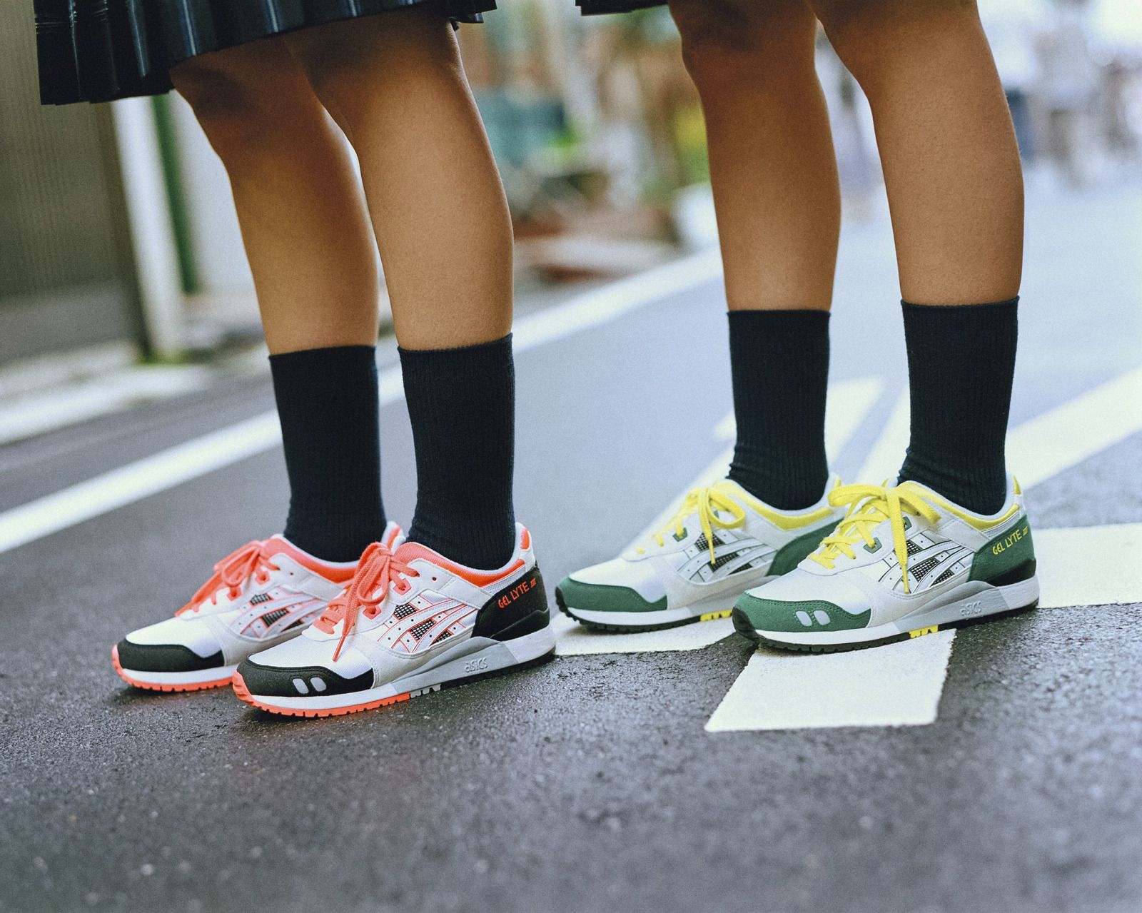 The protagonists of the campaign are the businessmen, students and elderly people of Tokyo. The contrast between their formal and traditional clothes with the colorful silhouettes of the new line of GEL-LYTE III represents the rebellious and unconventional nature of the iconic sneaker. The white, green and yellow colorway featured in the campaign is called "Citrus" and is the shoe's original historical colorway.