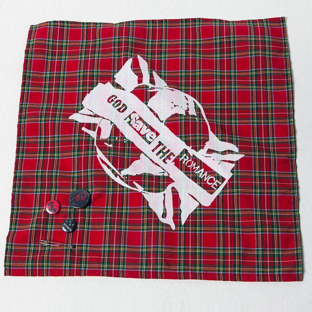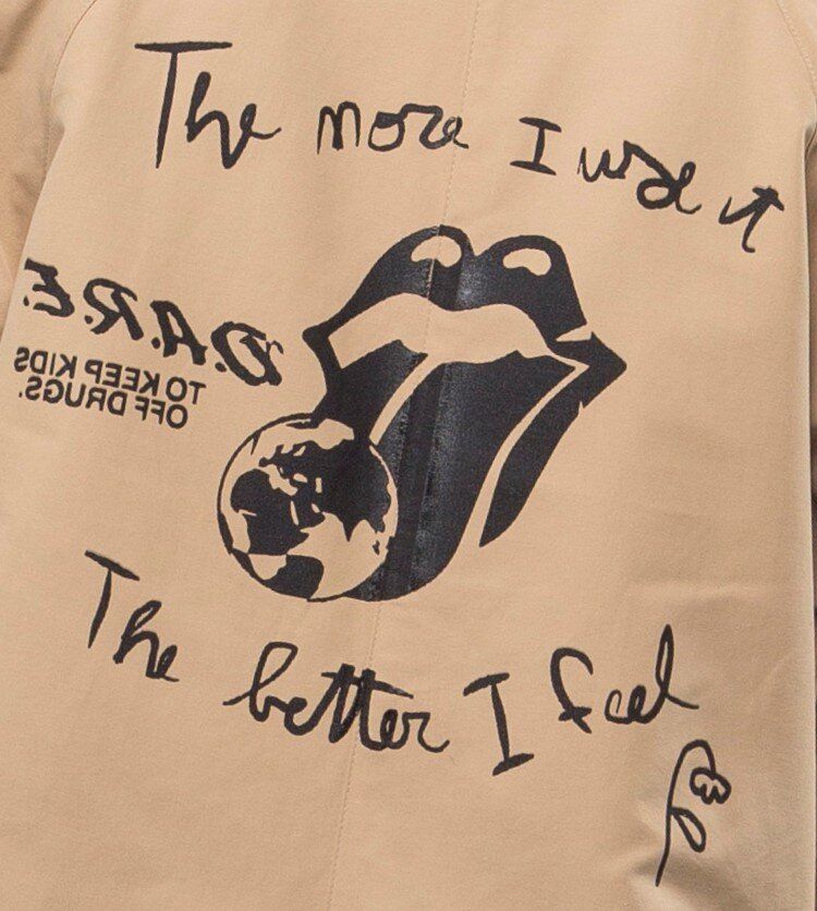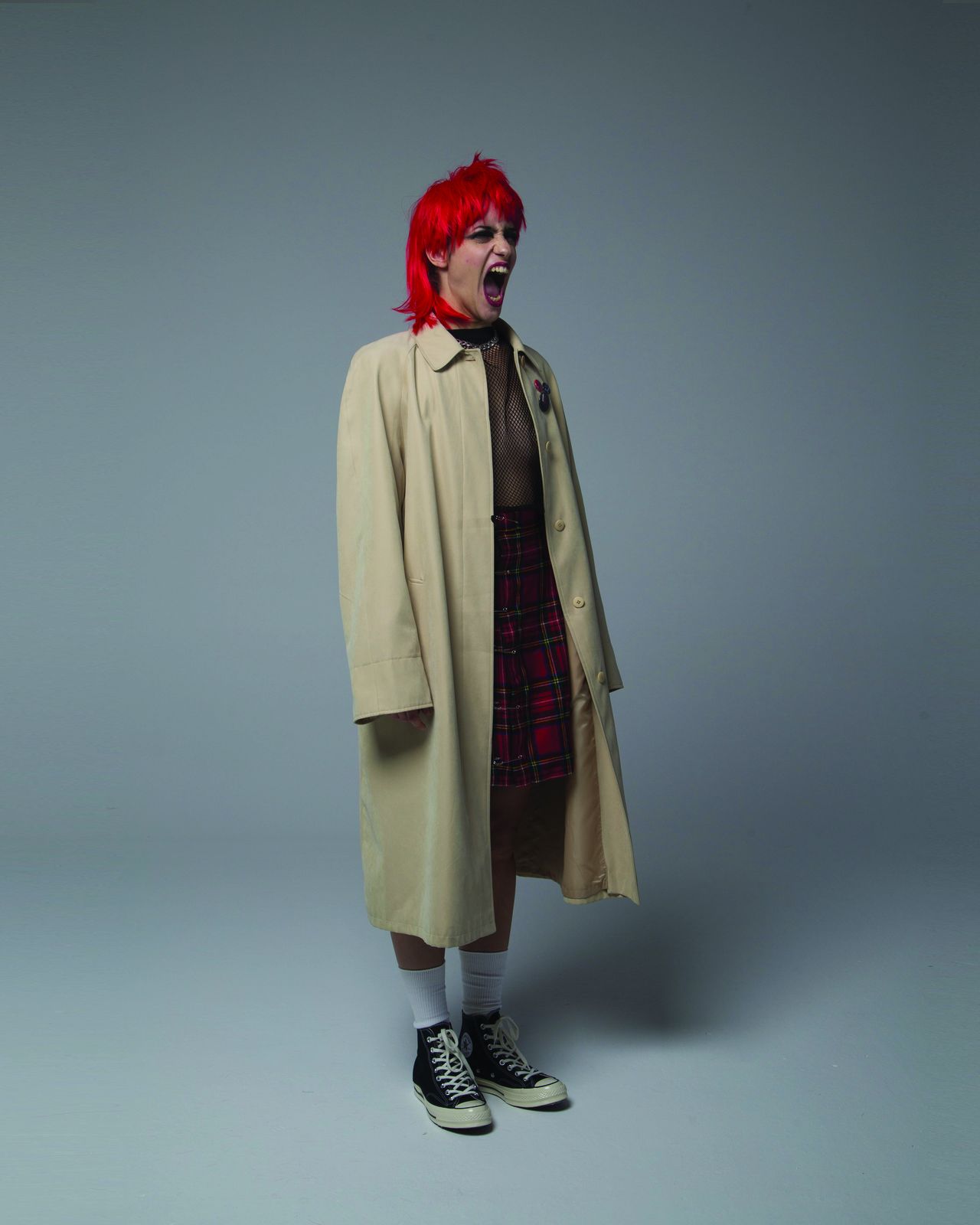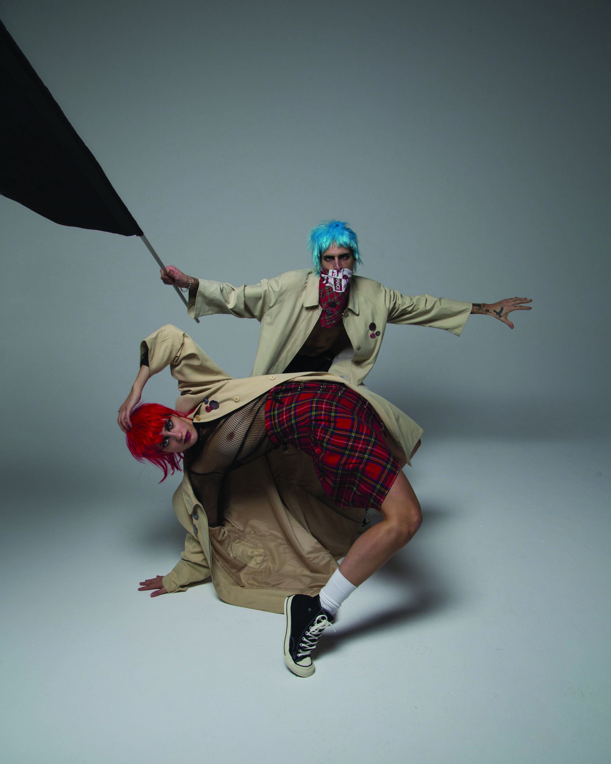 The capsule consists of a hoodie, a trench coat and two bandanas. The Vicious hoodie is decorated with various pins, including an insert of tartan fabric pinned to the fabric via a nanny brooch. The same decoration returns in the Trench D.A.R.E. to which a graphic print in the style of graffiti on the back is added. The two tartan bandanas are also decorated with pins and a white print, always in graffiti style.