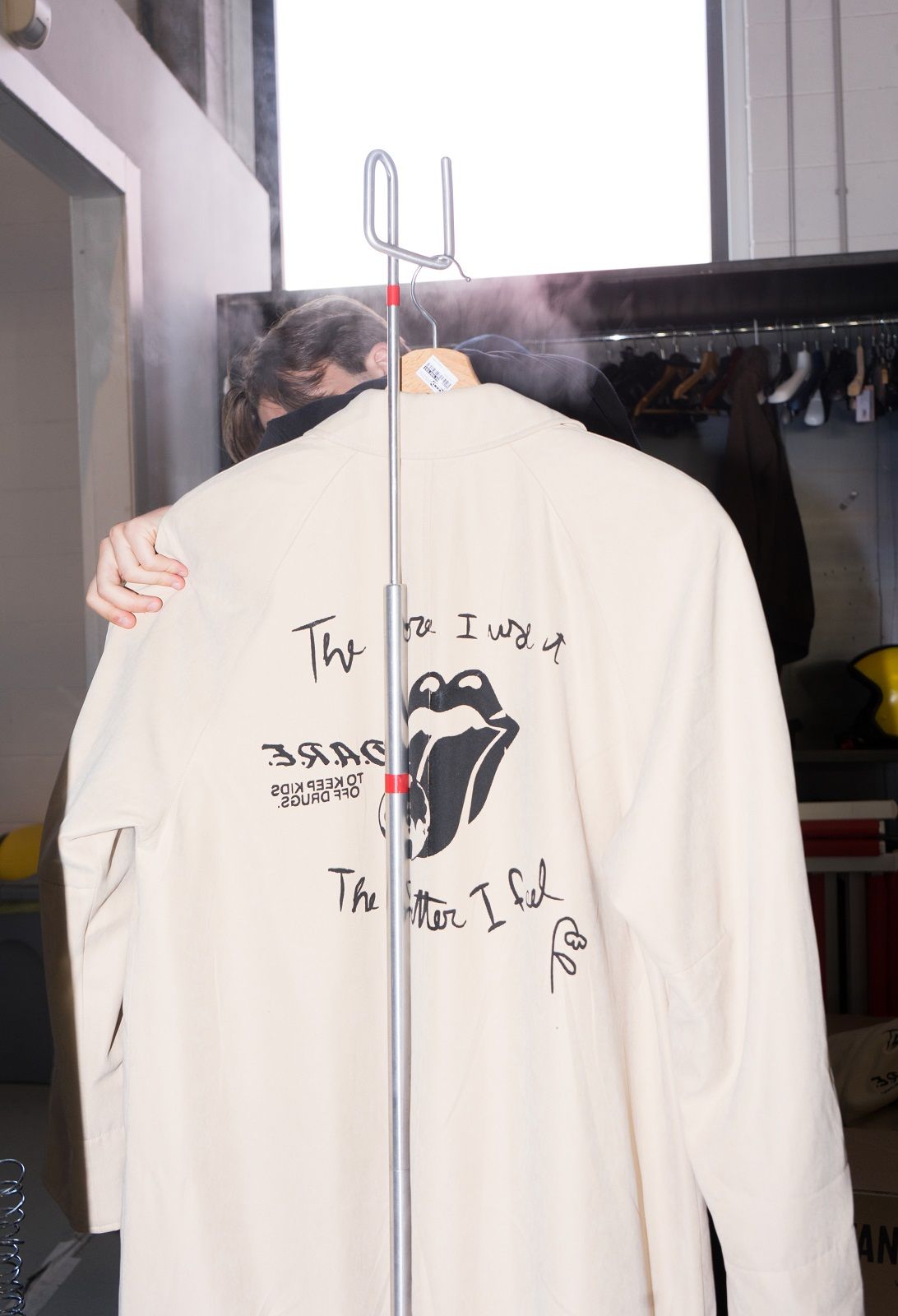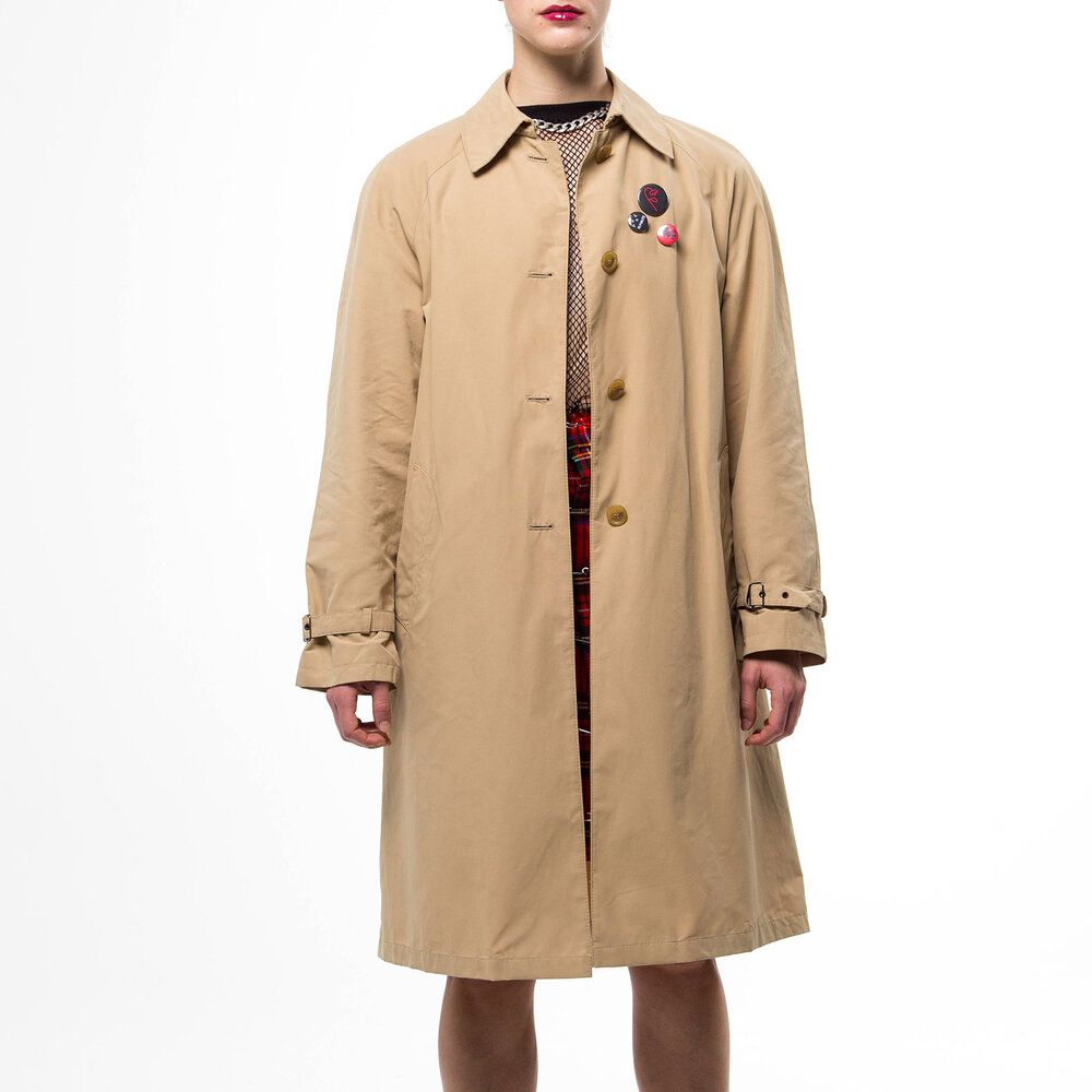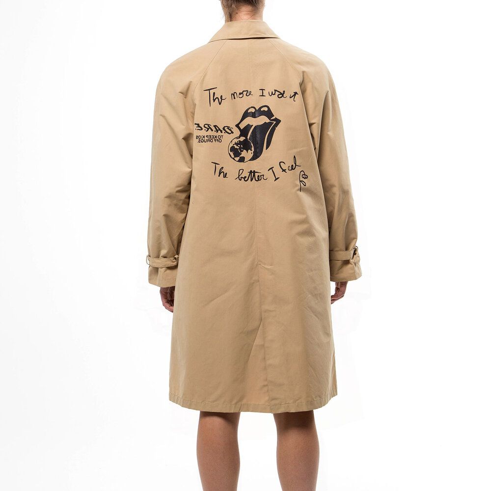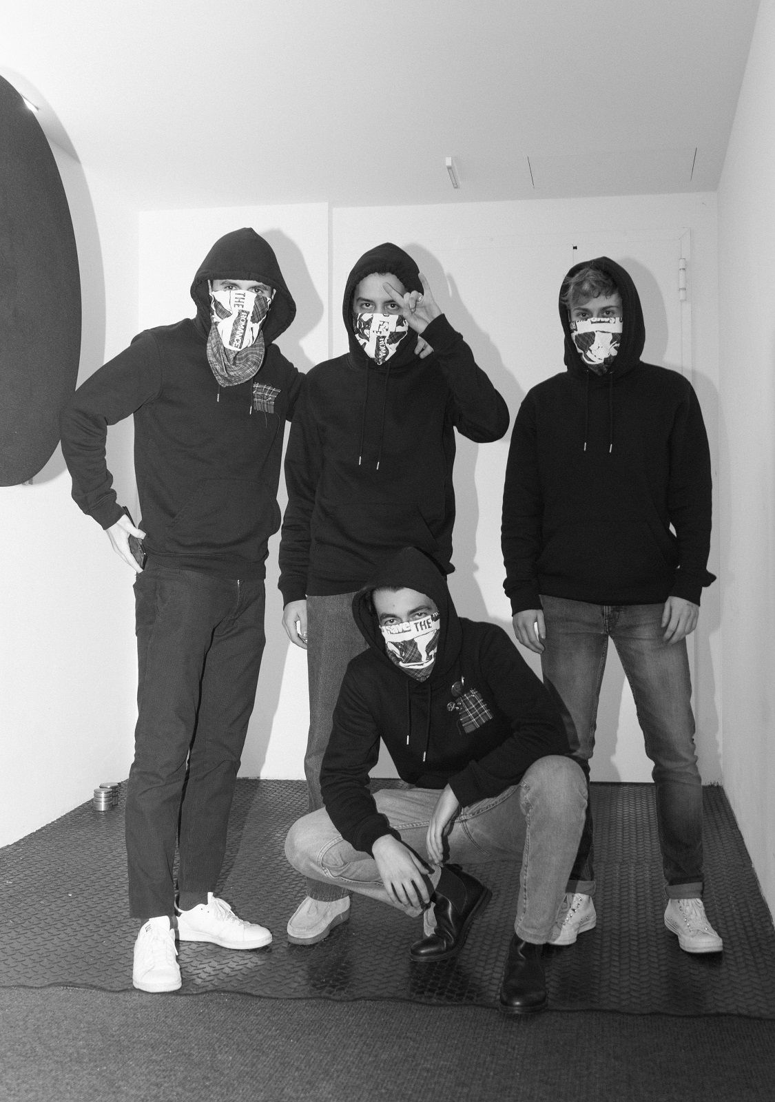 The capsule consists of a hoodie, a trench coat and two bandanas. The Vicious hoodie is decorated with various pins, including an insert of tartan fabric pinned to the fabric via a nanny brooch. The same decoration returns in the Trench D.A.R.E. to which a graphic print in the style of graffiti on the back is added. The two tartan bandanas are also decorated with pins and a white print, always in graffiti style.