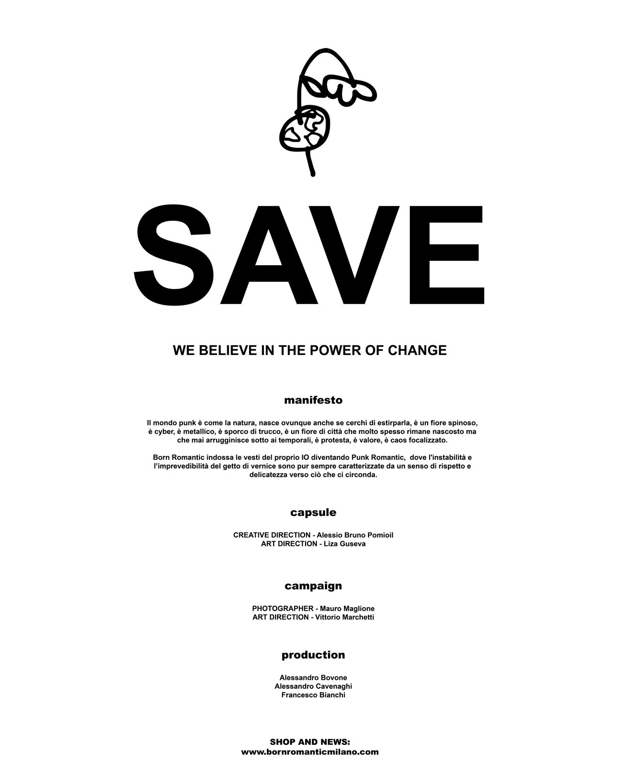 The poster accompanying the capsule reads: "Born Romantic wears the robes of his own self becoming Punk Romantic, where the instability and unpredictability of the paint jet are still characterized by a sense of respect and delicacy towards what surrounds us." Rebellion to society and respect for nature are the founding values of the brand, which in its production uses organic and recycled fabrics precisely because of its "romantic" relationship with the environment.
