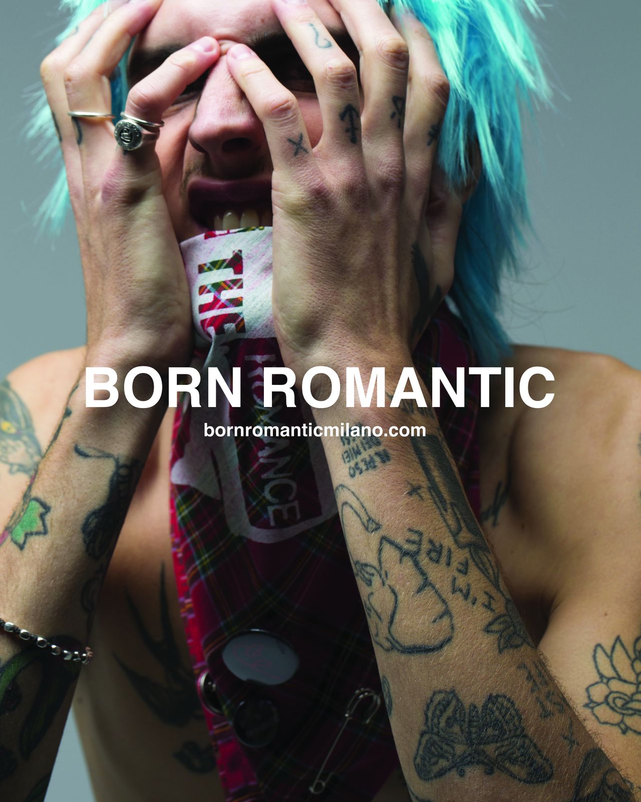 In recent months, graffiti of a withered flower accompanied by the inscription "Born Romantic" began to appear on the walls of all Milan. The graffiti became viral on social media, with over 5000 photos on Instagram under the hashtag #bornromantic. Only in these days, however, with the launch of a performance art event at Tenoha in Milan, the Born Romantic project was presented. It is a streetwear brand born under the creative direction of Alessio Bruno Pomioli that mixes punk, romance and nostalgia for a world that is no longer there and has just released its first capsule collection.