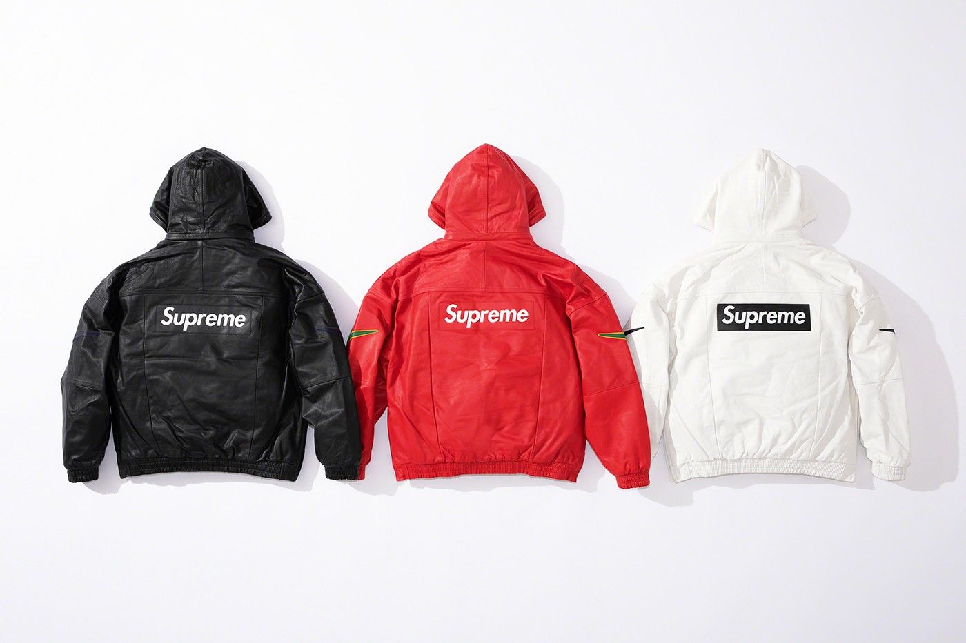 The protagonist of the capsule isthe leather, of which are entirely composed the Leather Anorak with quilted lining and removable hood, the Baseball Jersey, the Warm-Up Pants and the Duffle Bag. The material also returns in the form of an insert on the front branding of the hoodies. Sunglasses, bandanas and rings complete the collection. All items, rings apart, are presented in red, black and white colorways. The only exception are the sunglasses, available in an additional green version.