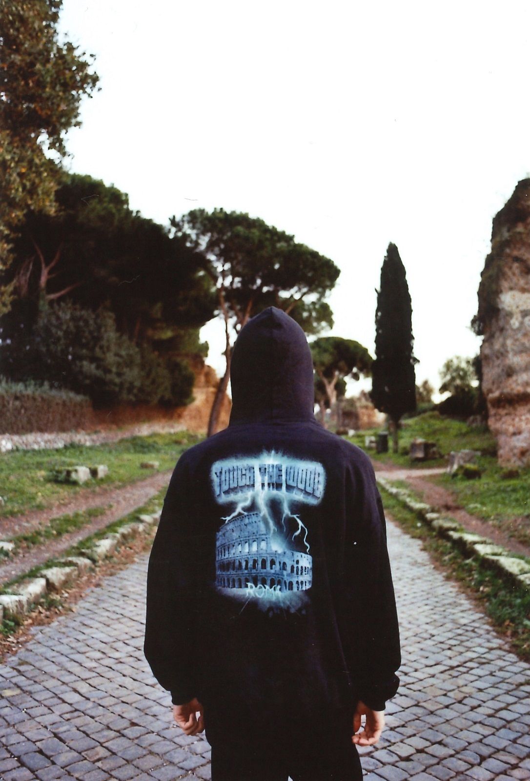 The line is a tribute to the greatest icon of the city of Rome: the Colosseum. The graphics that portray it are present on T-shirts, hoodies and on the stadium scarf. In particular, the hoodie features reflective details designed to shine in the low light of Goa Club where the parties of Touch The Wood, one of the epicentres of the capital's underground scene, take place. In addition to the items with the graphics of the Colosseum, the collection includes other items with logo graphics and also socks and a beanie with the embroidered logo. The four main colourways in the collection are black, white, teal and lilac.