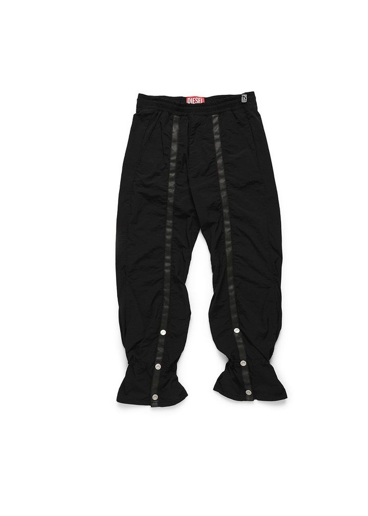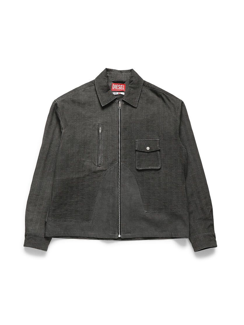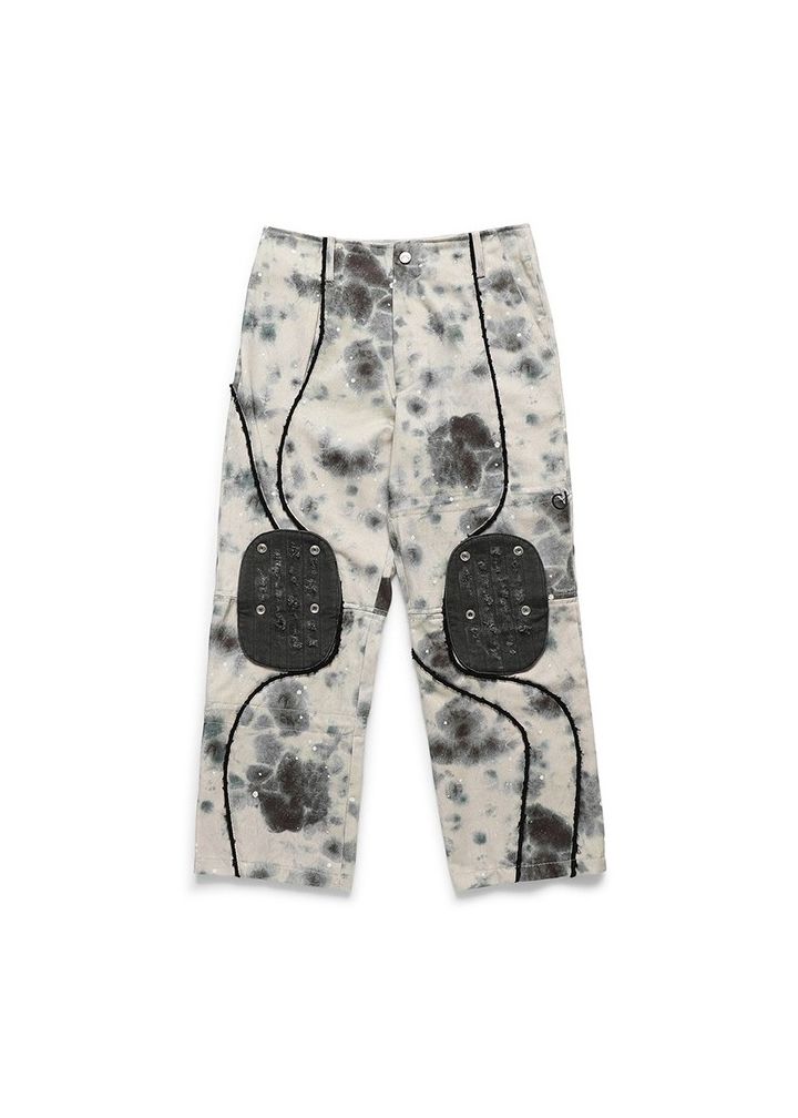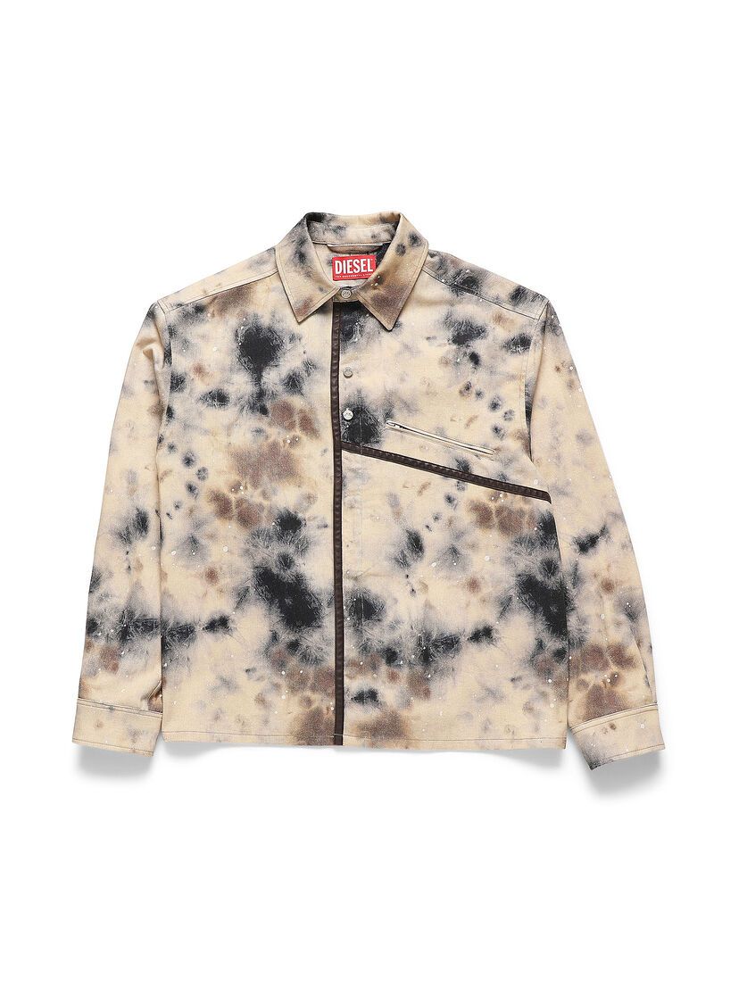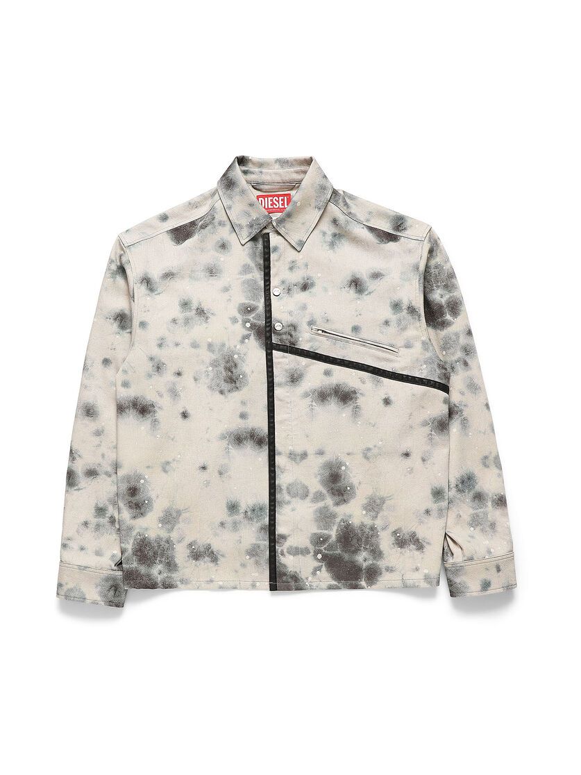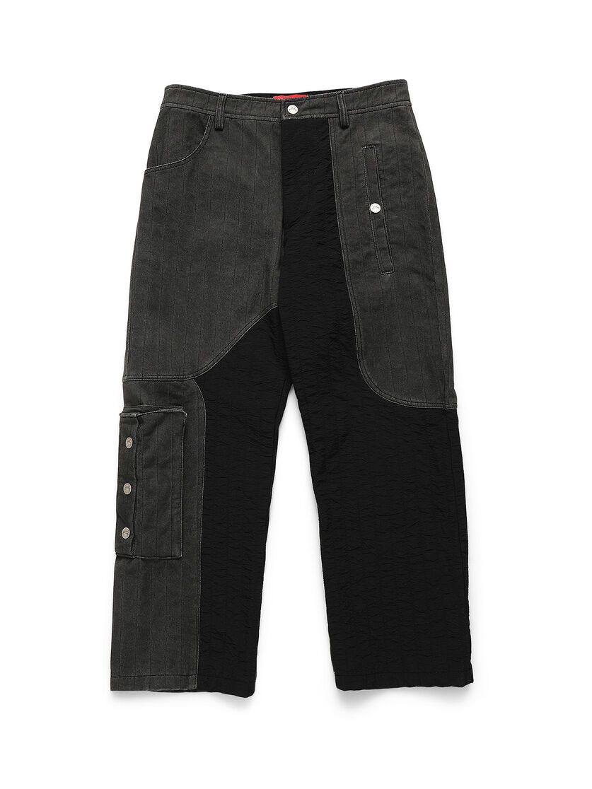 The capsule includes outerwear, t-shirts, hoodie, trousers and accessories. All garments represent a hybrid between Samuel Ross's conceptual and highly geometric design and the historical distressing techniques for which Diesel is well-known. The denim fabric mixes with the memory nylon in deconstructed pieces on which a white tye-dye pattern is the protagonist, along with translucent details and dévoré fabrics. Ross' dynamic design enriches classic workwear garments with patchwork constructions, cargo pockets and oblique or corner zips while the distressing technique is used to decorate insert hems and accessories.