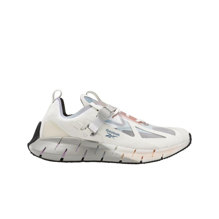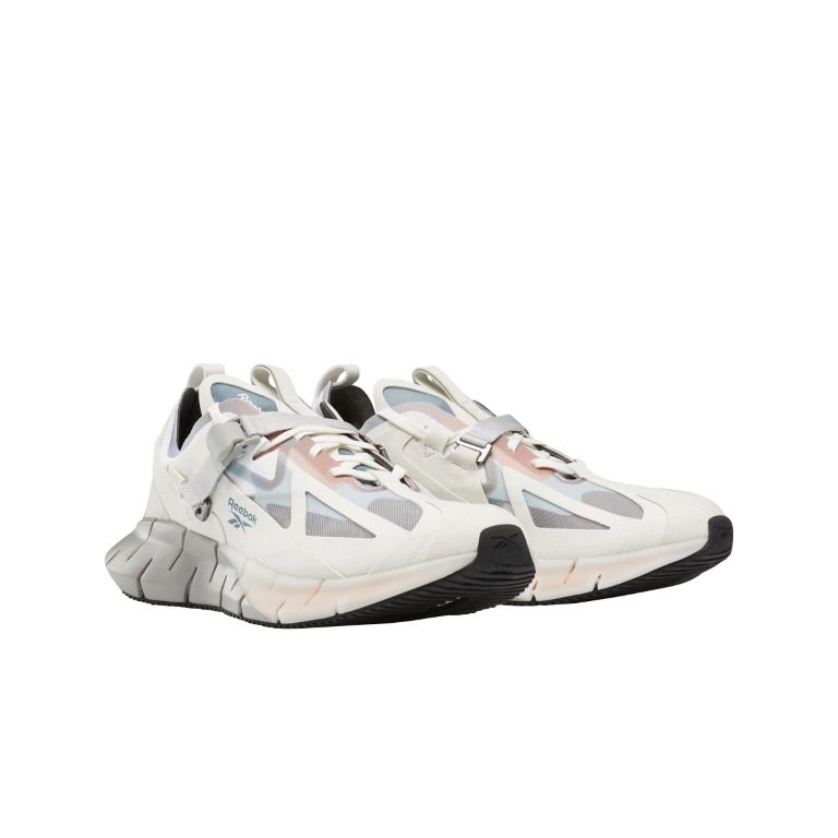 The shoe comes in two colorways. The upper consists of a mesh base with overlays ranging from the toe to the heel. Its particularity is given by the apparent lack of seams, which gives the shoe a vaguely futuristic look, accentuated also by the adjustable black mini-strap that closes right above the tongue. The sole is equipped with Reebok's classic Zig technology, a sole with a zigzag structure that absorbs shocks and scatters them through its structure to push the wearer forward. The sole of the Zig Kinetica consists of three parts: a system of bearings to absorb the impact of the heel on the ground, an Energy Shell that provides stability and durability, and the Energy Web, an elastic structure that promotes forward thrust and improves athletic performance.