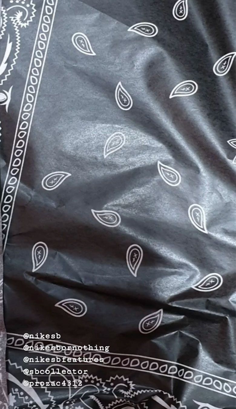 In the images recently appeared on Instagram, you can first see the multicolored oblique striped packaging of the sneaker and the protection paper in which they are wrapped decorated with bandana motifs. The bandana motifs are the dominant feature of the shoe, present in the suede elements of the upper and on the heel. The side panels have a tartan decoration in the colors of blue, white and brown. The front panel and the entire tab are made of beige leather and on the tongue there is the labeling "Cactus Jack". The laces, on the other hand, are flat but reminiscent of white woven cords and add volume to the classic Dunk Low silhouette.