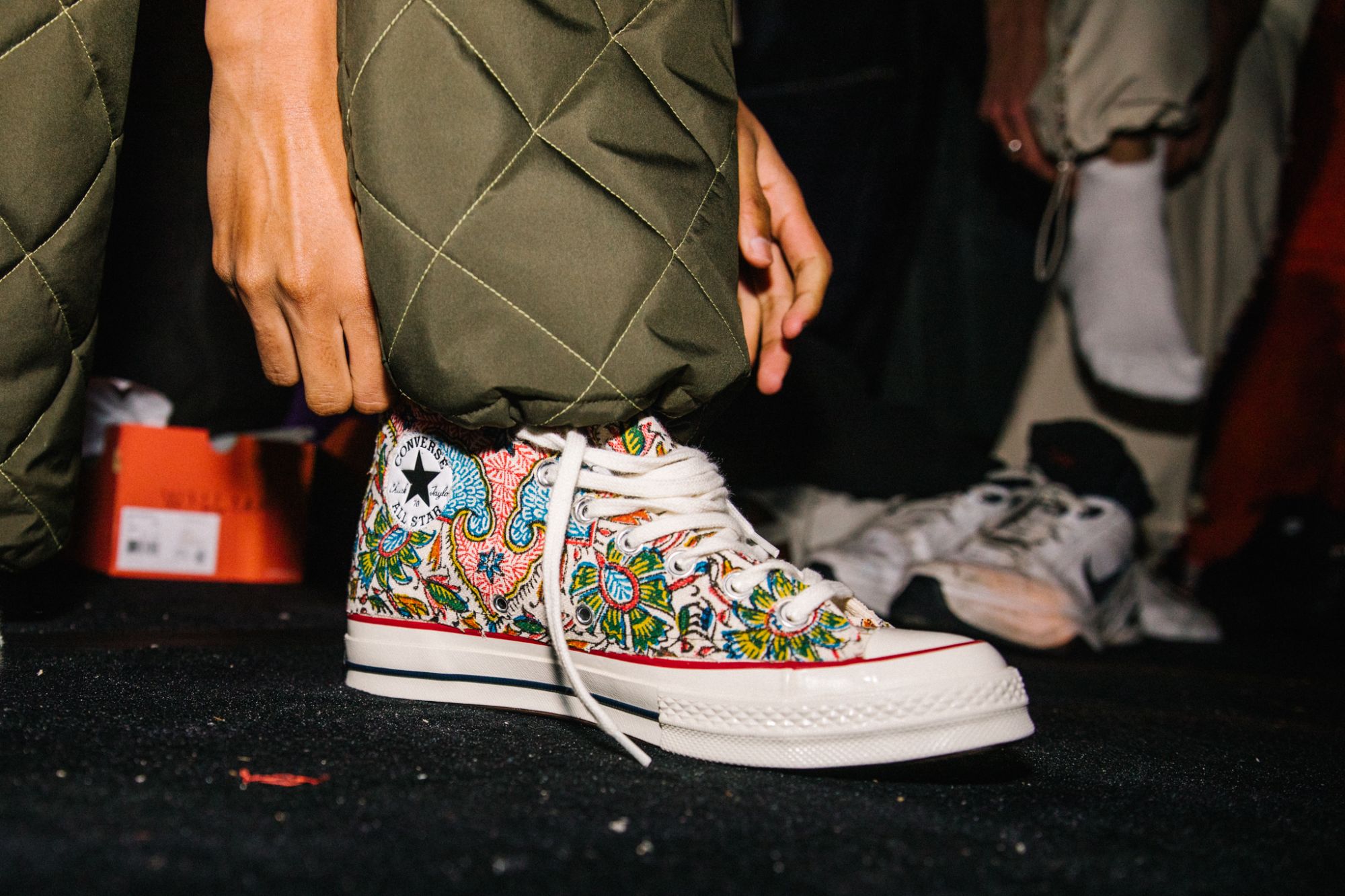 References to Iran are not limited to graphics and silhouettes, but are related to the techniques of creating garments. As is typical of the younger generation of designers, Farzaneh is also concerned about sustainability: her prints are xylographed and handmade in Isfahan, the dyes are made with saffron and turmeric, washed in the river and dried in the sun. The culture that Paria Farzaneh proposes is young, pacifist open to sharing and contemporaneity, as demonstrated by her collaboration with Converse for the Paria x Converse Chuck 70s and the Converse One Star Mid created for the previous collections and the mixing of Gore-Tex and Thermore fabrics with persian fabrics for its techwear items. As she herself said last year, always on her own show