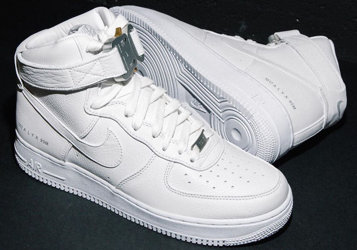 The classic silhouette of the Nike Air Force 1 High remains unchanged, except for the metallic branding of 1017 Alyx 9SM at the heel and the now iconic Rollercoaster buckle that closes at the ankle. The novelty of the design also concerns the tumbled leather that makes up the upper of the shoe. The luxury sneaker capsule includes four colorways, one black, one white, and two in contrast with black Swoosh and sole on a white upper and vice versa.