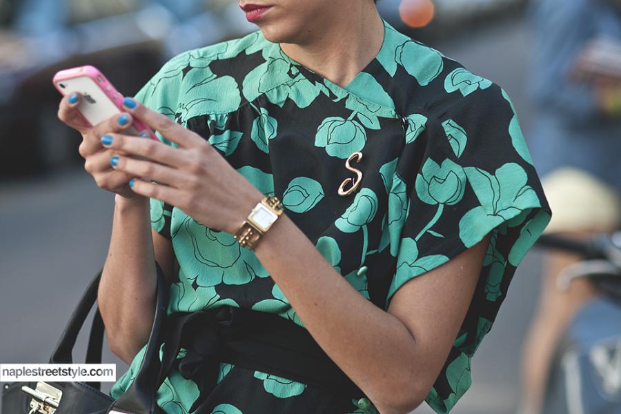E ancora Prada alle ore 18.00. Un abito è fiori è, quasi sempre un abito a fiori, ma non se disegnato da regina Miuccia. Troppo facile usare i fiori per parlare di delicatezza e sensibilità famminili. E allora lei utilizza, dissacrandolo, il simbolo per eccellenza della mascolinità: l'automobile. Colori forti, accostamenti unici che avvolgono tessuti come pizzi macramè, ricami, pelle.