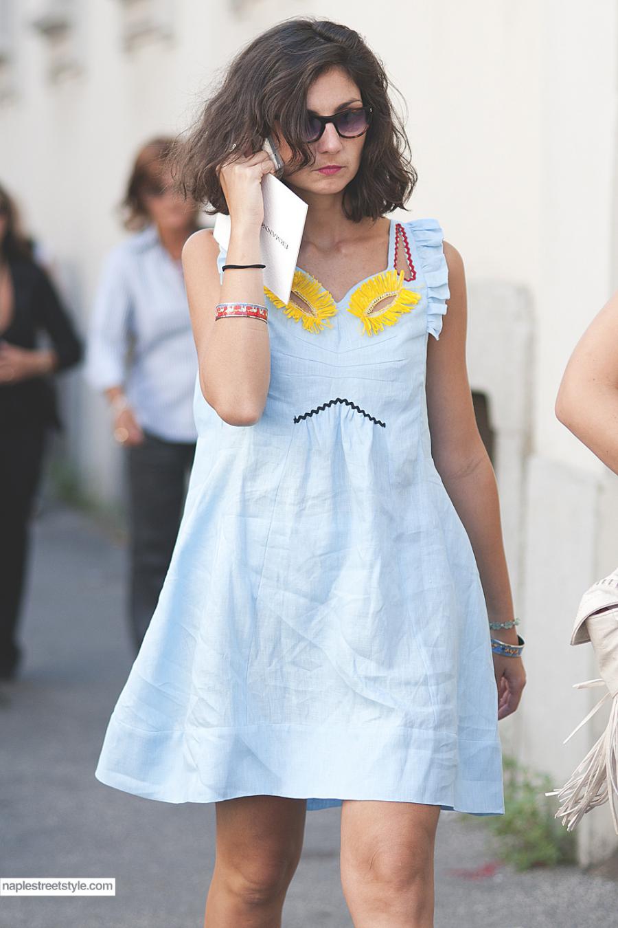 Proseguiamo con Ermanno Scervino alle ore 12.30. Non ci sono confini tra sport e couture nella nuova collezione che osa negli accostamenti tra mondi e materie differenti. Grafismi di rete e di pizzo di cotone con intrecci legati alla paglia di Vienna, per uno stile dove i volumi sono essenziali e straordinariamente costruiti. Una gamma cromatica che va dall'azzurro al bianco, dal verde al kaki.