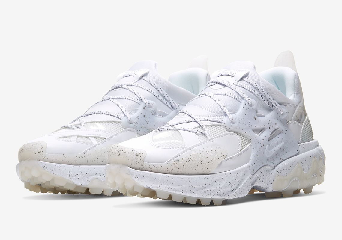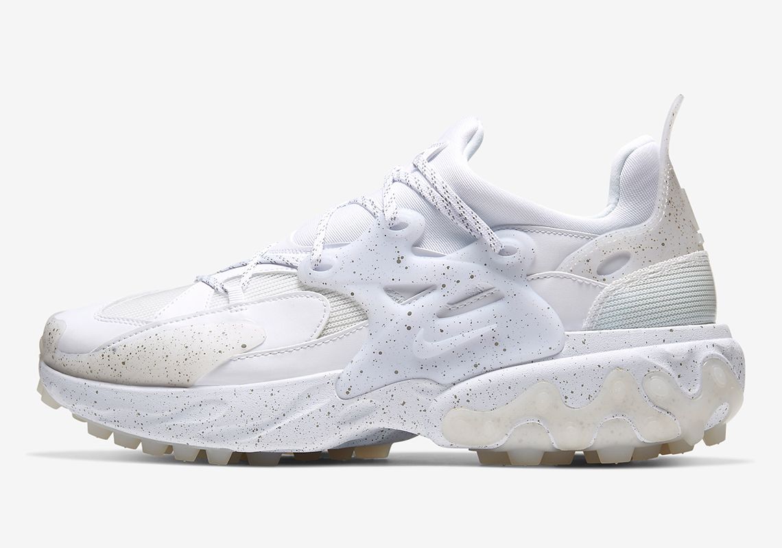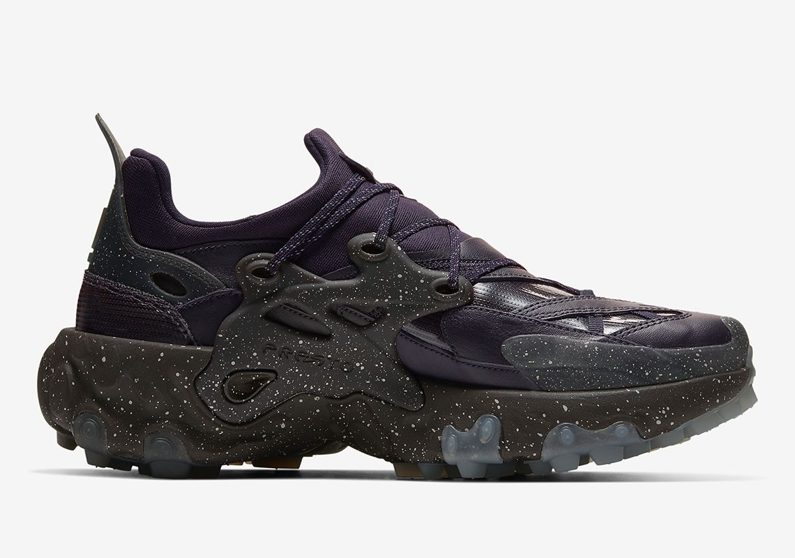 The new Speed React Presto mixes the look of the classic Nike Presto with the aesthetics of previous collaborations between UNDERCOVER and Nike and specifically with the React Boot, from which comes the sole and cross decorations on the upper in mesh and leather inserts. The sole unit and the lacing system also echo the speckled pattern that characterized the previous capsule. Compared to previous React models, however, which did not have too obvious seams, the visual and structural elements are very flashy, especially the laces that extend to the middle of the ankle. The Speed React Presto will be available on three colors: black, white and purple.