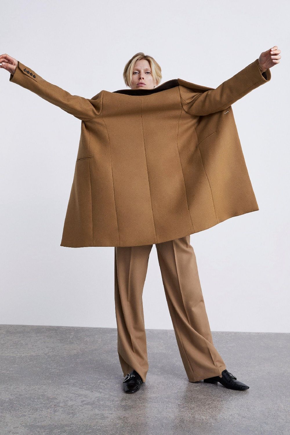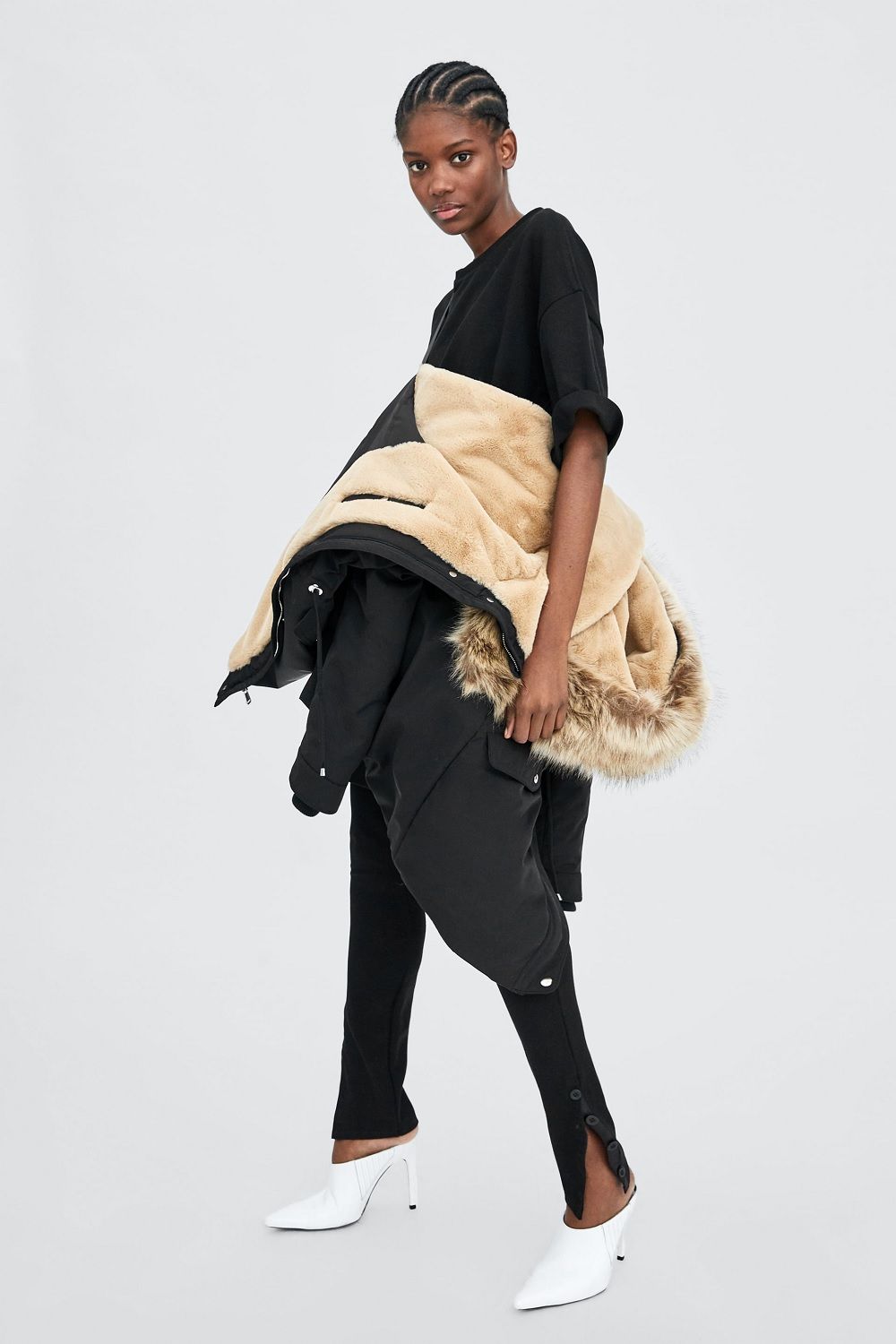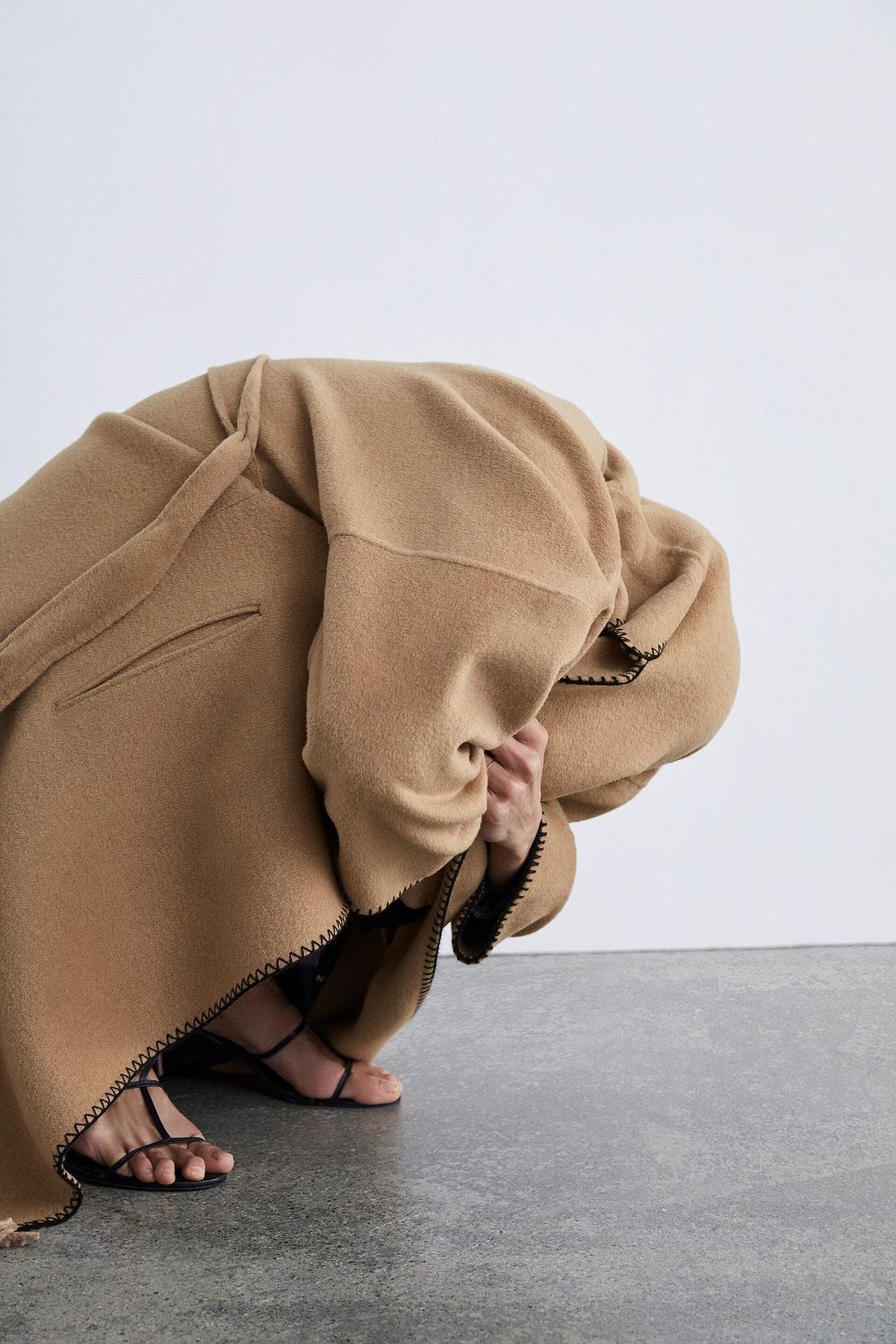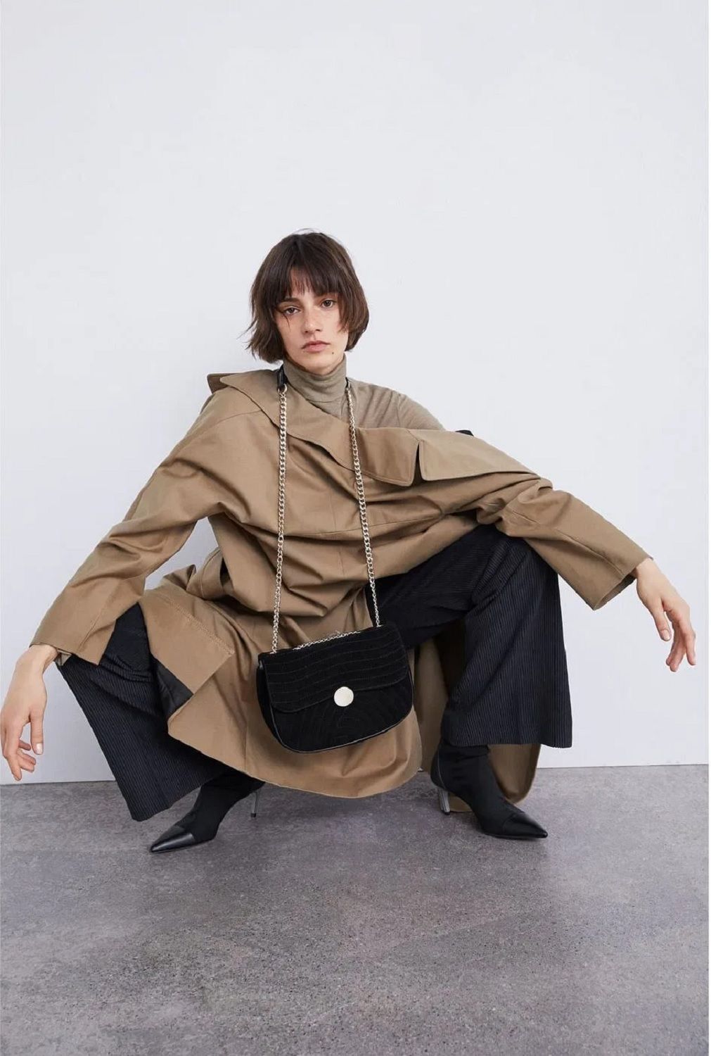 Certainly, for the retailer, weird poses are a real trend. The web is full of images that prove it. There's the brunette crouched down like when you pee between two cars; there's the shy girl hiding inside her sweater; the vamp in black dress suffering from sciatica pain; the model stretching and the one wearing the down jacket like a backpack. Zara definitely has extremely versatile stuff...