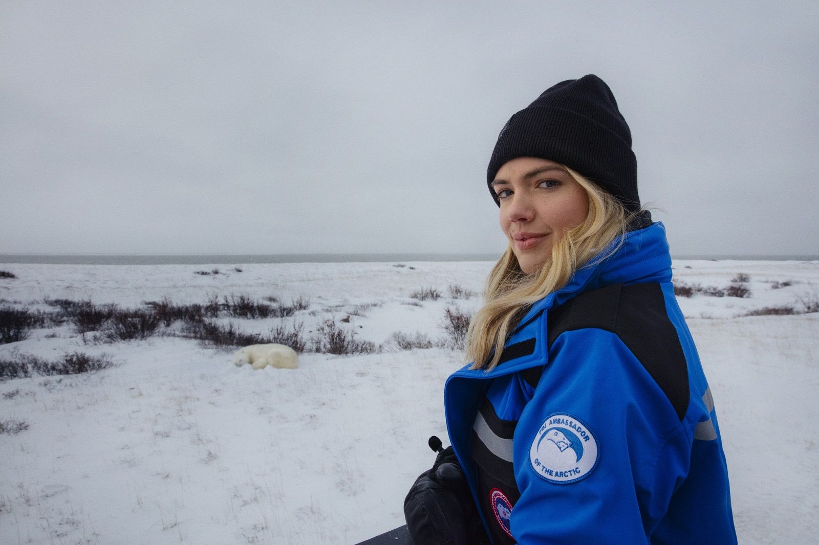 Kate Upton travelled to the city of Manitoba, known as the World Capital of the Polar Bear, to witness the work of the non-profit organization in support of wild polar bears. The model also visited PBI House, an educational centre located in the town of Churchill that serves as a research space for scientists and educational space for the public, built with the funds raised by Canada Goose.