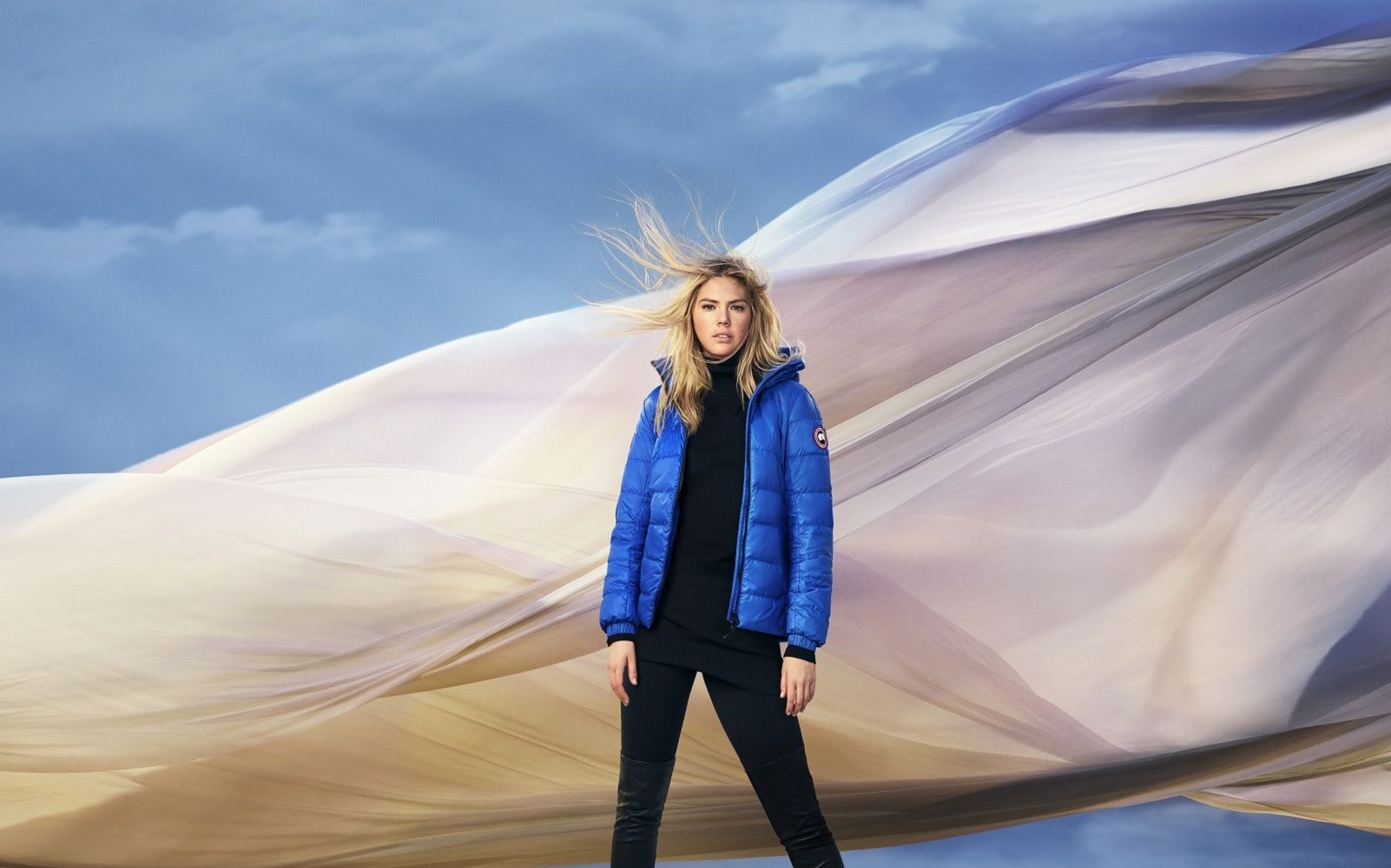 Canada Goose and Kate Upton support the conservation of polar bears and their natural habitat with Canada Goose PBI, a special selection of clothing characterized by the colour PBI Blue, a bright shade reminiscent of sea ice.