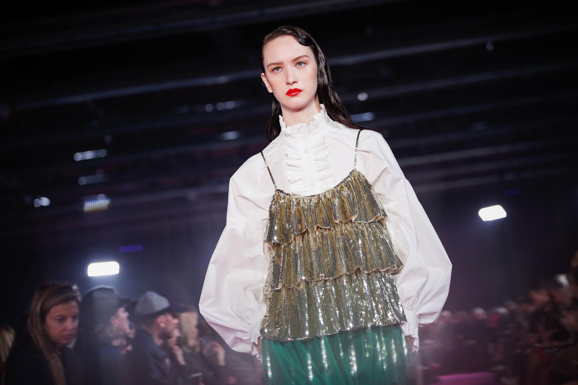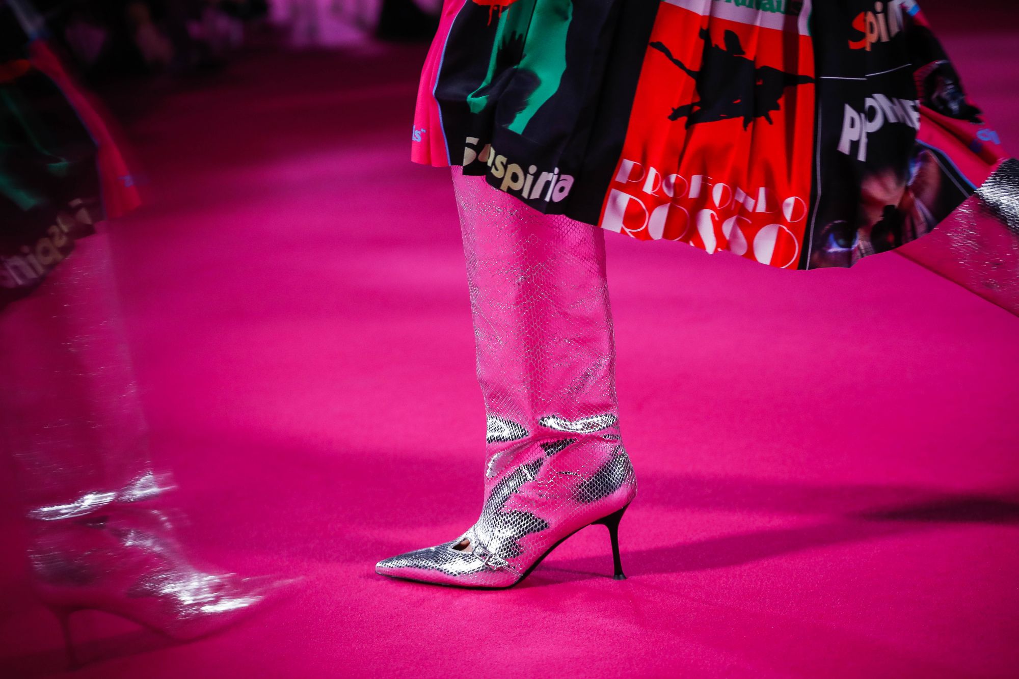 Nowadays Dario Argento's aesthetic is more alive than ever. It's not the first time that his heritage has inspired our present: two years ago, Luca Guadagnino directed a remake of Suspiria with Tilda Swinton, Dakota Johnson e Mia Goth (the film premiered at Venice Film Festival). However, Argento denied every kind of collaboration with the Italian director (in an interview with Rolling Stone he even said that "Suspiria didn't reflected the style of my film, it's very different: it's not scary, and the music is almost nonexistent"). On the contrary, for this show and the collaboration with Giorgetti he was sitting front-row. He even reposted the pictures on his Official Instagram page.