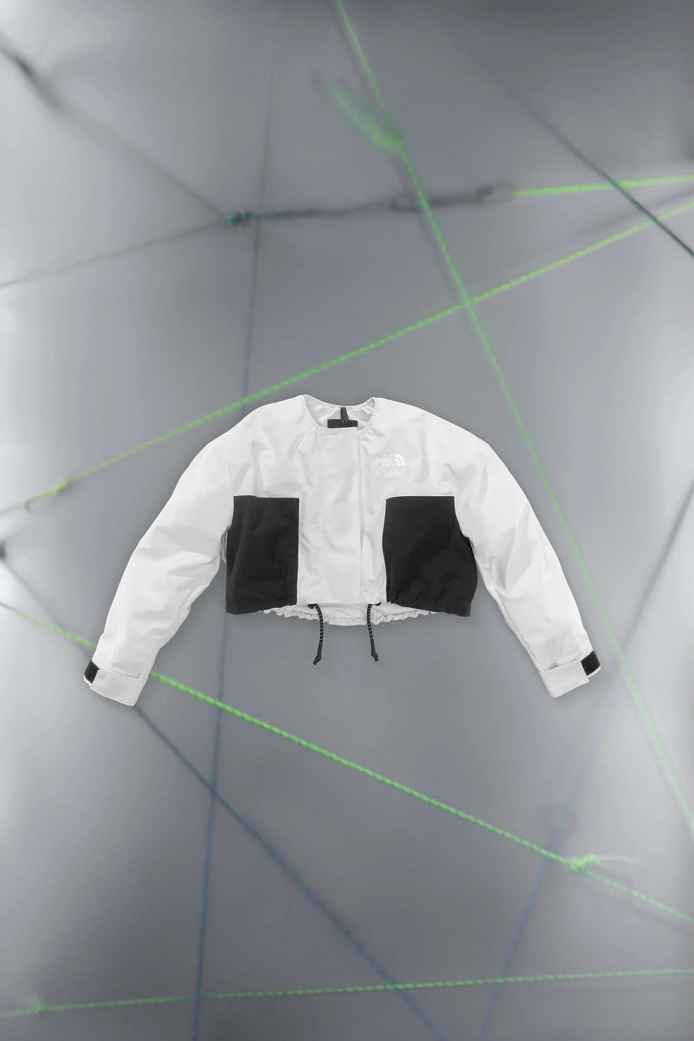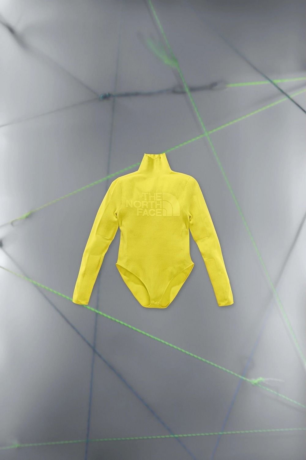 The result is a series of premium men's and women's clothes that combine sophisticated design with cutting-edge materials and technology such as the new, breathable and waterproof FUTURELIGHT. Must-have items include a blue and black cape jacket, a cropped jacket and a yellow neoprene bodysuit.