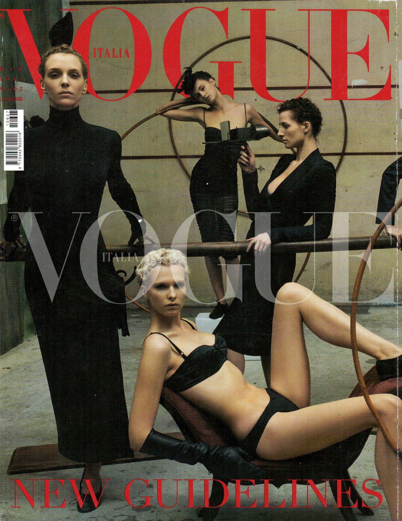 More than just a magazine, Vogue is the mainstay of fashion publishing as we know it today. Its cover is a status symbol for editors, photographers, stylists and models and dealing with it is considered one of the most privileged. The covers of the Italian edition of Vogue, born in 1964 under the name "Novità", have been fairly equal and uniform for twenty years, with the close-up of a model camping on the cover and little else. It was in 1988 that, after the arrival of the legendary Franca Sozzani, the newspaper really began to experiment. Sozzani was the first to leave carte blanche to photographers and creatives, and the covers born under her regency are those that have consolidated vogue's identity and fame. nss magazine has collected from the vogue archive the most beautiful, focusing especially on the first twenty years of activity of Franca Sozzani, including both the more vintage ones, to give a measure of what the original appearance of the magazine was, and the most modern, on the threshold of the 2010s.
